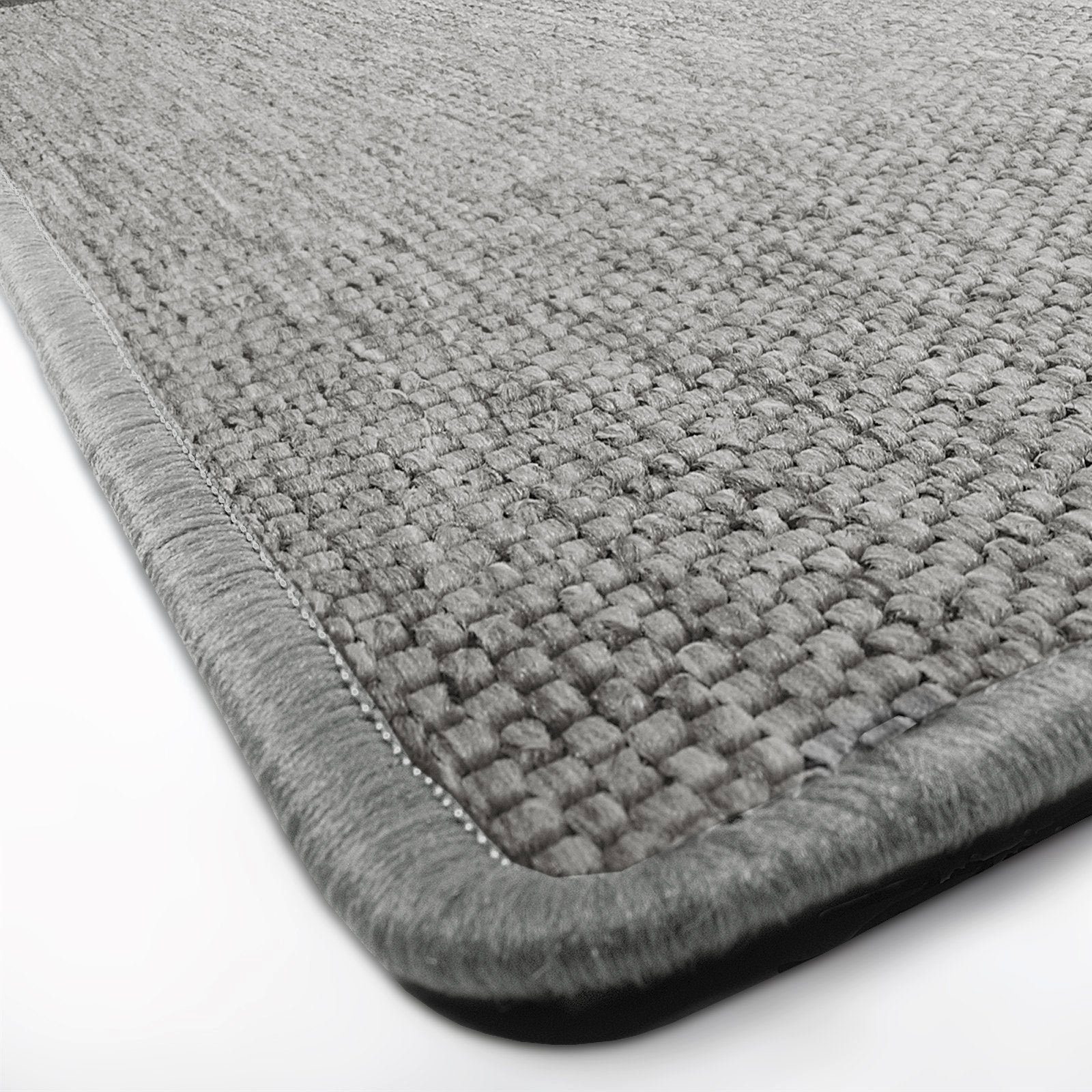 Der in vielen attraktiven Farben erhältliche Wohnteppich besteht aus einem hochwertigen Materialmix. Das verspricht höchste Strapazierfähigkeit und in der Folge eine lange Nutzungsdauer bei Ihnen zuhause. Damit der Teppichläufer in Sisaloptik in Ihren Räumlichkeiten nicht nur eine gute, sondern eine ganz und gar blendende Figur abgibt, ist er in vielen verschiedenen Größen erhältlich. Für einen optisch harmonischen Abschluss und Schutz der Kanten sorgt die farblich abgestimmte Umkettelung. Diese unterstreicht die Wertigkeit des Läufers und bewahrt ihn vor allem vor einem allzu raschen Ausfransen der Ränder.