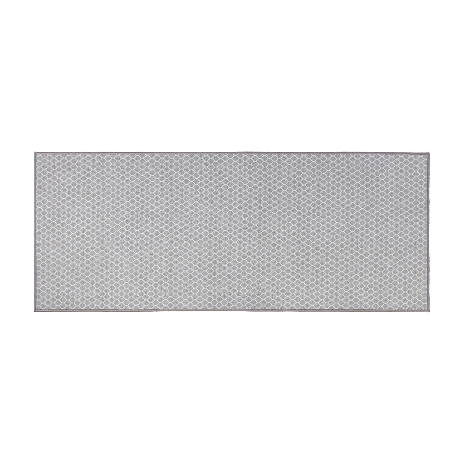 Der hochwertige Läufer wirkt nicht nur optisch attraktiv, er überzeugt auch in funktionaler Hinsicht. So dämpft er den Geräuschpegel im Haus, bietet den Füßen einen angenehm warmen Untergrund und er schützt darüber hinaus unter ihm liegende Teppich- oder Hartböden. Hochwertige Fliesen oder edles Parkett werden vor Beschädigungen durch herabfallende Gegenstände ebenso bewahrt wie Teppichböden vor auslaufenden Flüssigkeiten. Gefertigt aus belastbarem Polyamid und ausgestattet mit einem gekettelten Rand, widersteht der maßgefertigte Feinschlingen-Teppich auch starker Beanspruchung und ist vor einem Ausfransen der Ränder geschützt. Beste Voraussetzungen also, Ihnen viele Jahre lang Freude zu bereiten.