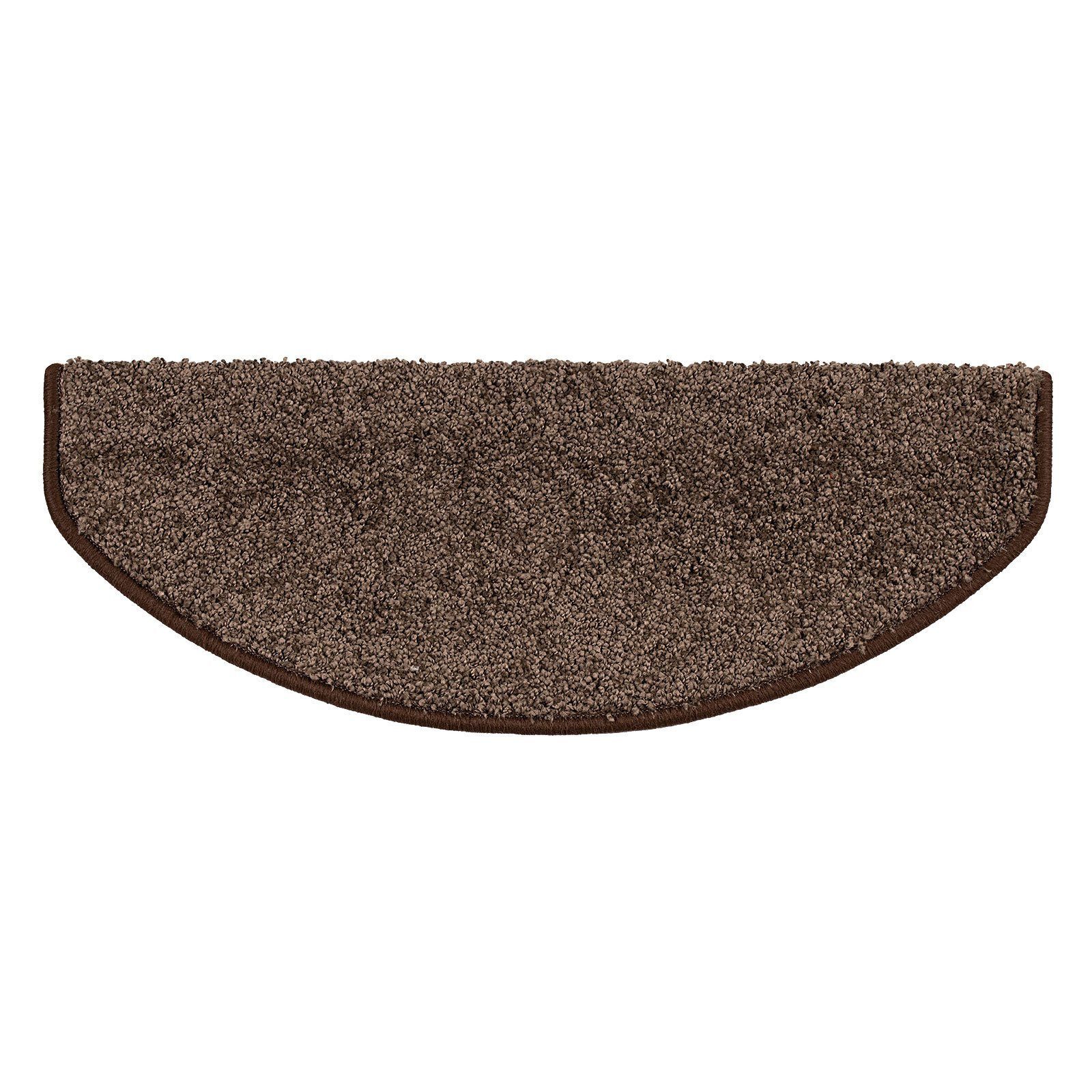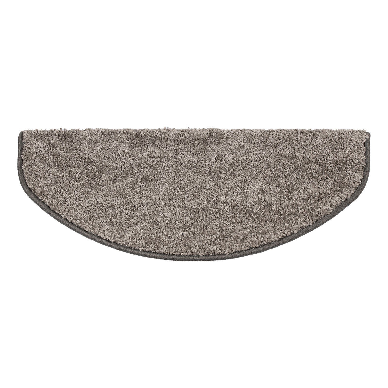 Gefertigt in Deutschland und von erstklassiger Verarbeitungsqualität, zeigt sich die Hochflor-Stufenmatte unempfindlich und ist somit ein idealer Stufenschutz in Wohnbereichen. Stabilität und höchstmöglichen Halt – auch auf abgerundeten Holzstufen – stellt der stabile Winkel in Verbindung mit dem 40 mm breiten Klebestreifen auf der Unterseite der Hochflor-Stufenmatten sicher. Für einen ordentlichen Abschluss und Schutz der Kanten ist hingegen die farblich passende Umkettelung an den Rändern der Shaggy-Stufenmatten verantwortlich. Und damit große genauso wie kleine Stufen mit perfekt passenden Treppenschonern versehen werden können, sind die Stufenmatten mit dem Hochflor-Belag sowohl in halbrunder als auch in rechteckiger Ausfertigung erhältlich.