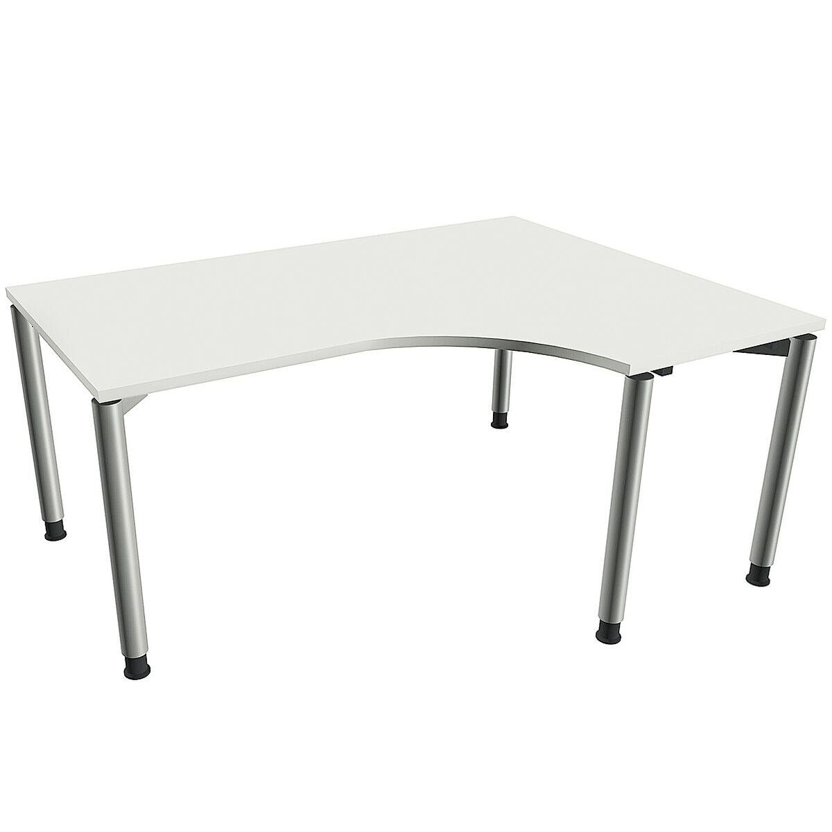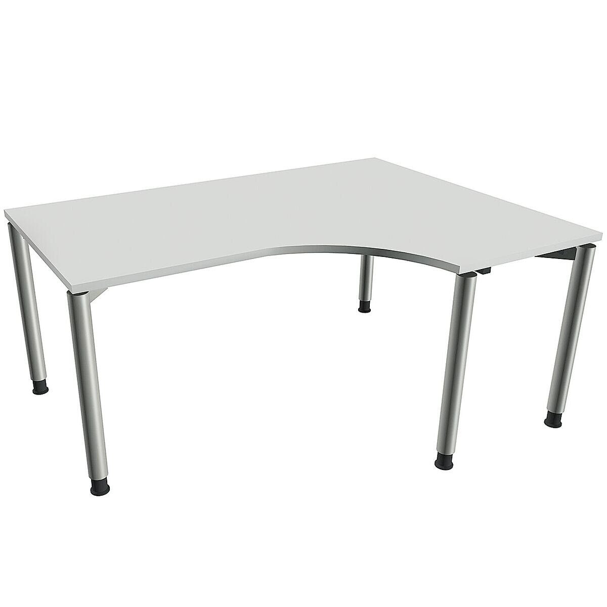 Winkelschreibtisch rechts »Oldenburg« 160 cm breit 68-82 cm hoch, Ausführung: 90°-Winkel rechts, lang, 4-Fuß Rundrohr Gestell, melaminharzbeschichtet, PP-Laserkanten, Plattenstärke: 25 mm, manuell höhenverstellbar von 68 bis 82 cm, Gestell: pulverbeschichteter Stahlfuß in silberaluminium