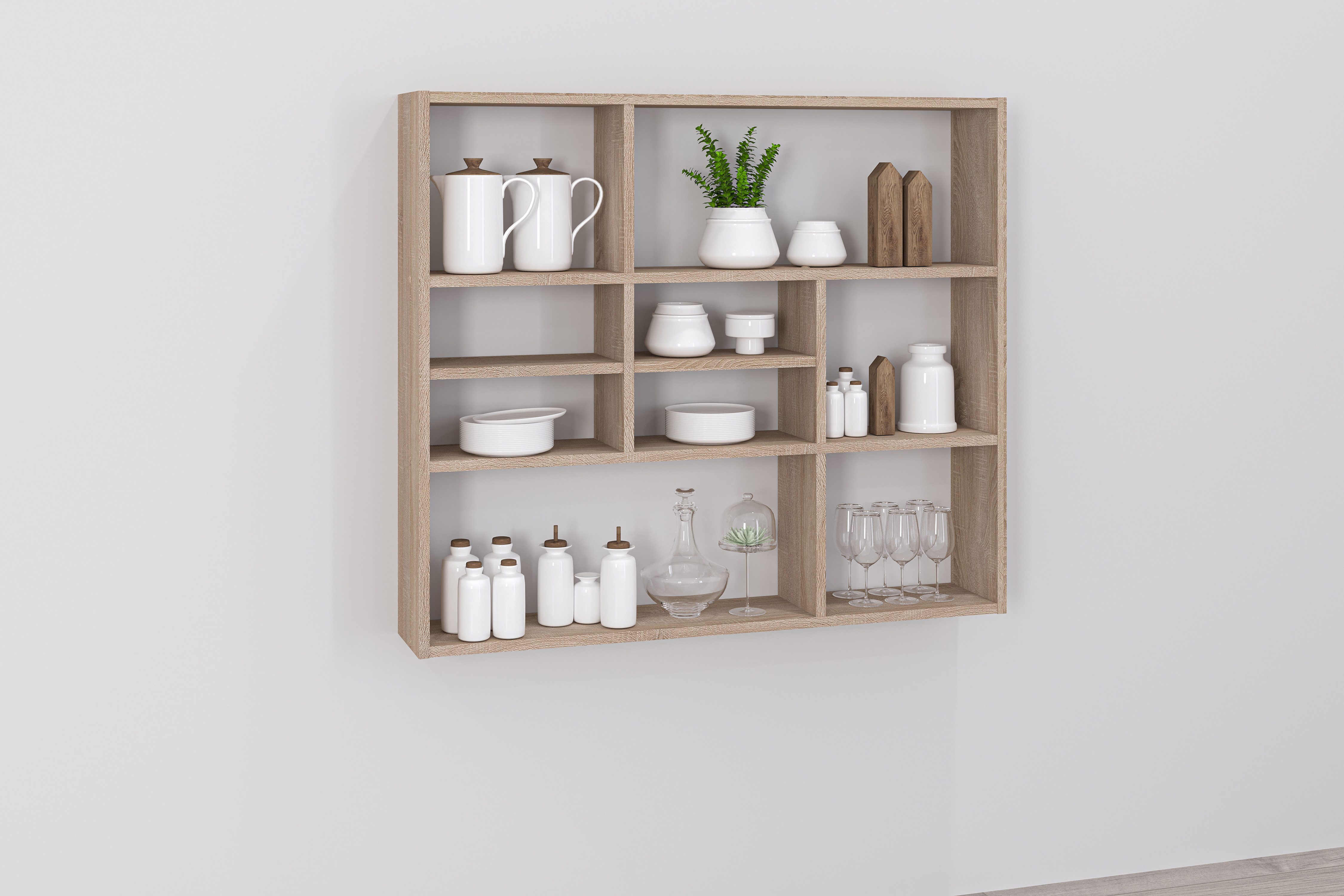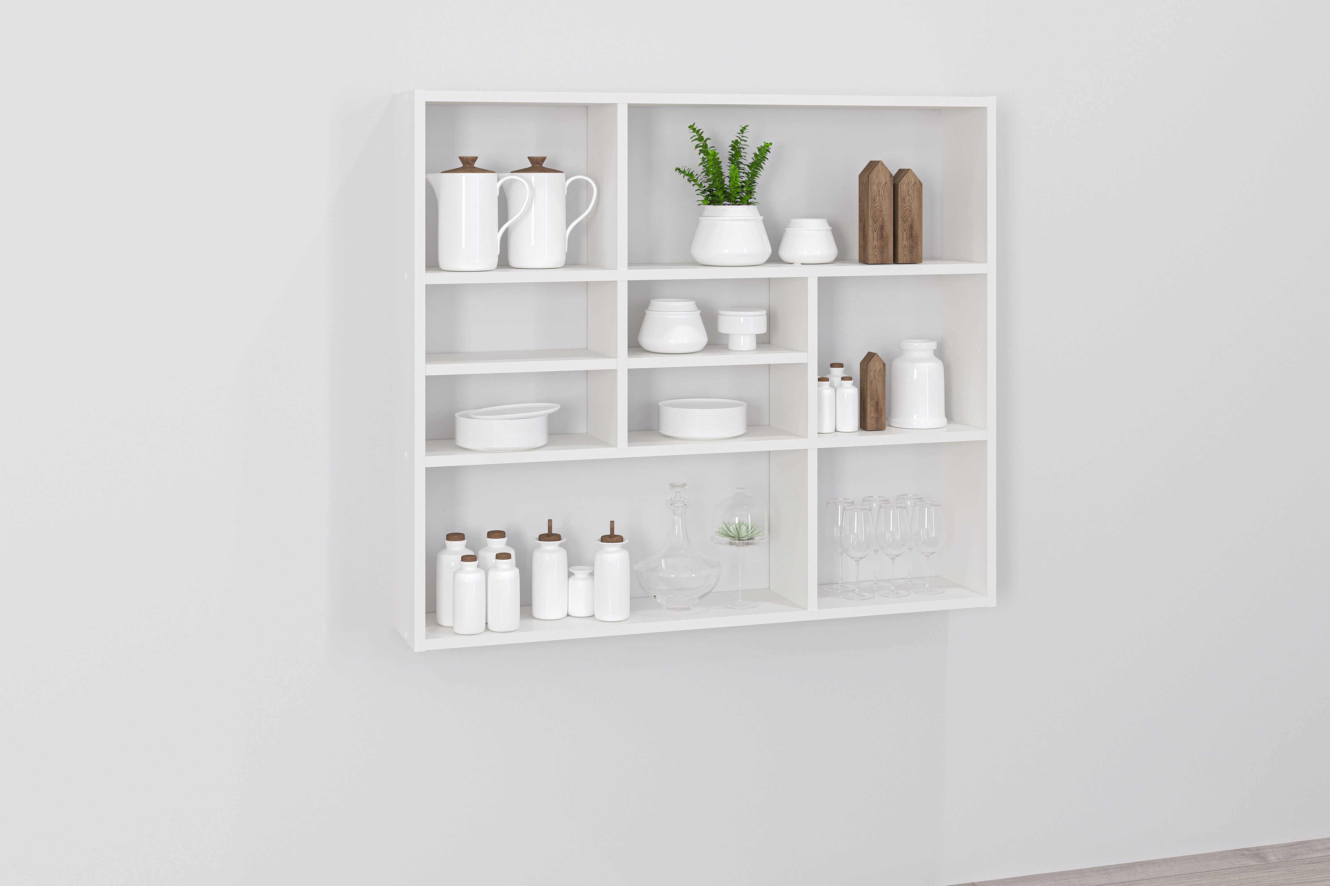 Wissenswertes | Das Wandregal »Mika« sorgt mit neun Ablagefächern für Stauraum. Dieses Produkt zeichnet sich durch hohe Qualitätsstandards aus. Die Lieferung erfolgt zerlegt und kartonverpackt. Die Aufbauanleitung befindet sich auf dem Karton und führt Sie Schritt für Schritt zu Ihrem Schmuckstück. Das gezeigte Dekorationsmaterial ist im Lieferumpfang nicht enthalten. In folgenden Farben erhältlich: