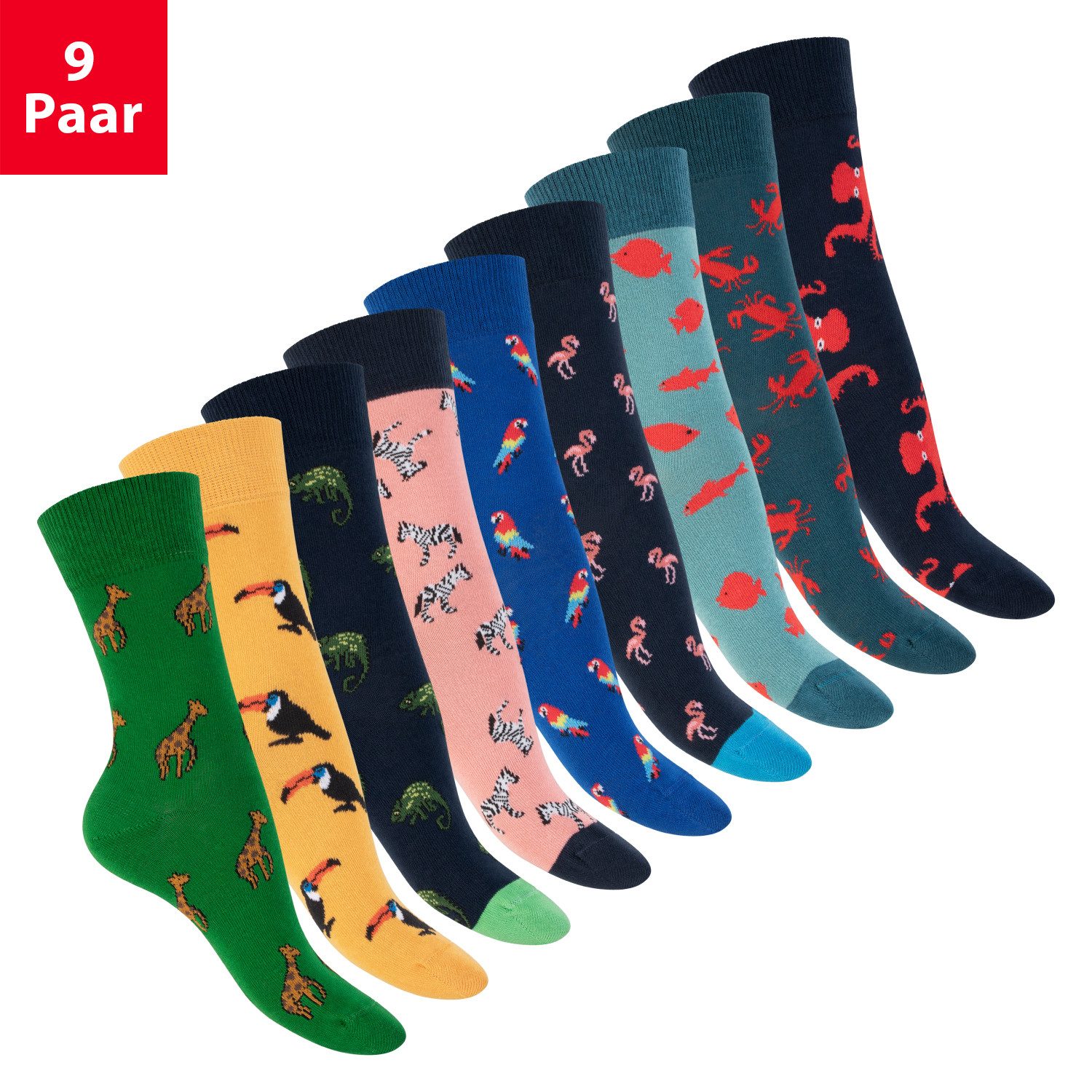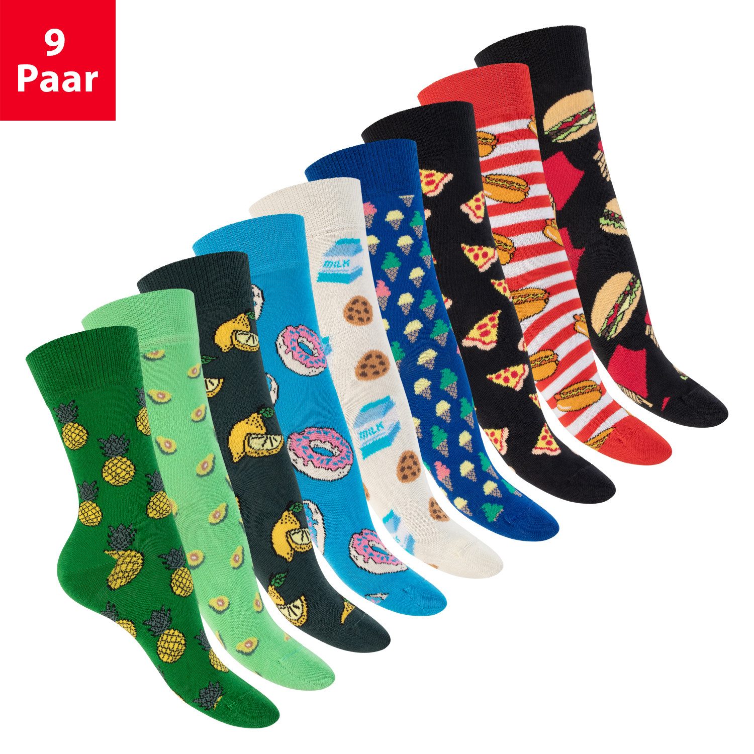 - Fun Socken im 3er, 6er oder 9er Pack: Bunte Motiv Socken für Damen & Herren