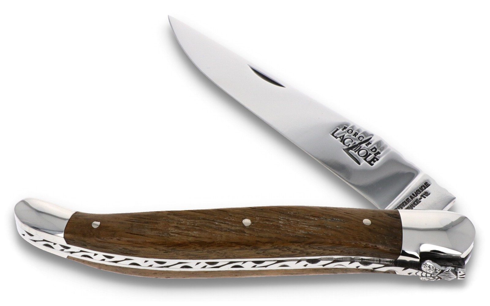 An der Klingenwurzel ist entweder der Schriftzug "LAGUIOLE ORIGINE GARANTIE LOG" oder seit Ende 2019 der Schriftzug "FABRIQUE A LAGUIOLE FRANCE" zusammen mit der Stahlsorte eingeprägt.