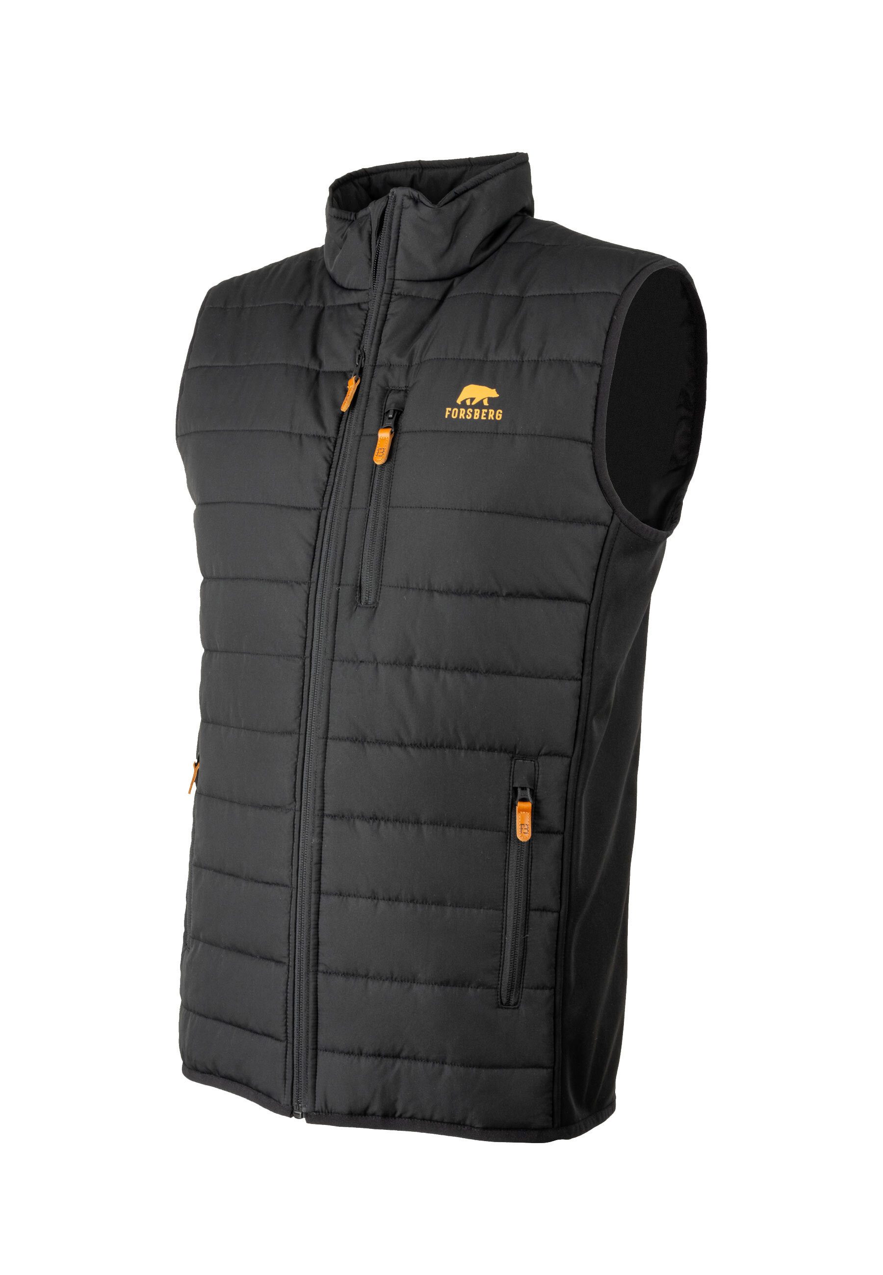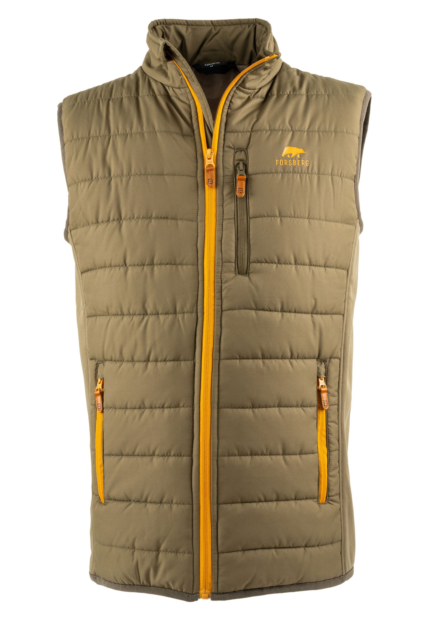 FORSBERG Skrovva III Eine gefütterte und funktionelle Weste für das ganze Jahr. Sie ist winddicht und atmungsaktiv und besitzt ein sehr kleines Packmaß. Mit ihren 270gr ist sie ein echtes Leichtgewicht, das aber durch das aufgeplüschte Futter trotzdem perfekt isoliert. Der perfekte Begleiter fürs ganze Jahr Die Funktionsweste besitzt einen durchgehenden Reissverschluss in Kontrastfarbe, dieser verläuft bis in den hohen Kragen und wird durch einen Kinnschutz abgeschlossen. Sie hat eine Brusttasche und zwei Fronttaschen, die per Reissverschluss geschlossen werden können. Die seitliche Taille besitzt ein elastisches Powerstretch Gewebe, um eine maximale Bewegungsfreiheit zu garantieren. Armausschnitt und Bund sind durch ein Elastikband versiegelt und halten die Weste SKROVVA III in Form. Все Nähte sind Flachnähte und ermöglichen ein druckfreies Tragen.