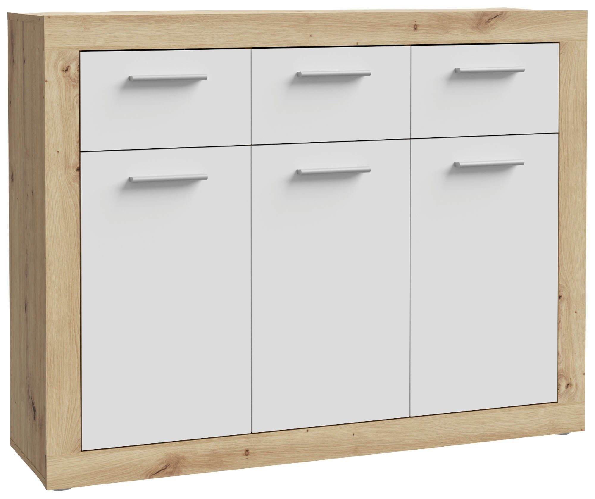 Modern designt, lässt sich das Sideboard mit vielen Einrichtungsstilen harmonisch kombinieren. Als Inspiration: Indem du die Einrichtung-Accessoires in dezenten Farben wie Weiß oder Grau hältst, unterstreichst du den minimalistischen, cleanen Stil. Es gehört zur Baccio Serie, die weitere Artikel in diesem Stil enthält. So kannst du ein harmonisches Gesamtbild zaubern.