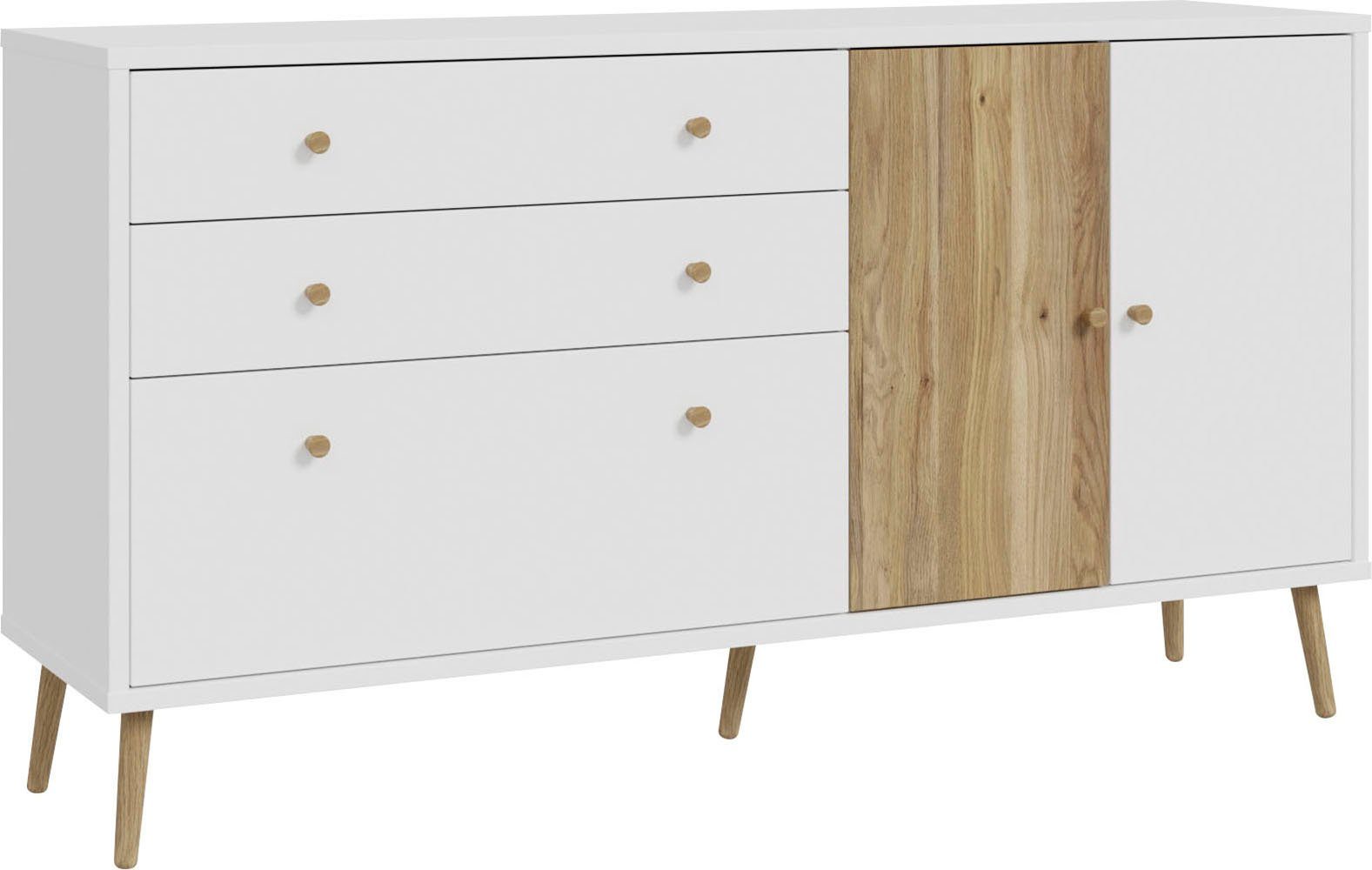 Aus Holzwerkstoff hergestellt, erhält das Sideboard eine besonders stabile Struktur. Die Griffe sind langlebig und unterstreichen den Stil. Hergestellt wurde das Produkt in Polen.