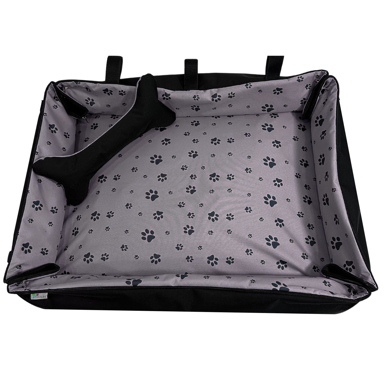 Mit seinen großzügigen Maßen (100x70 cm; Seitenbreite 20 cm) und dem strapazierfähigen, wasserabweisenden Stoff bietet das "Oksana" Hundebett den idealen Rückzugsort für Hunde, die es genießen, sich vollständig auszustrecken. Das lebhafte Pfotenmuster in kräftigen Farben bringt eine spielerische Atmosphäre in jeden Raum und fördert positive Emotionen bei Hund und Halter.