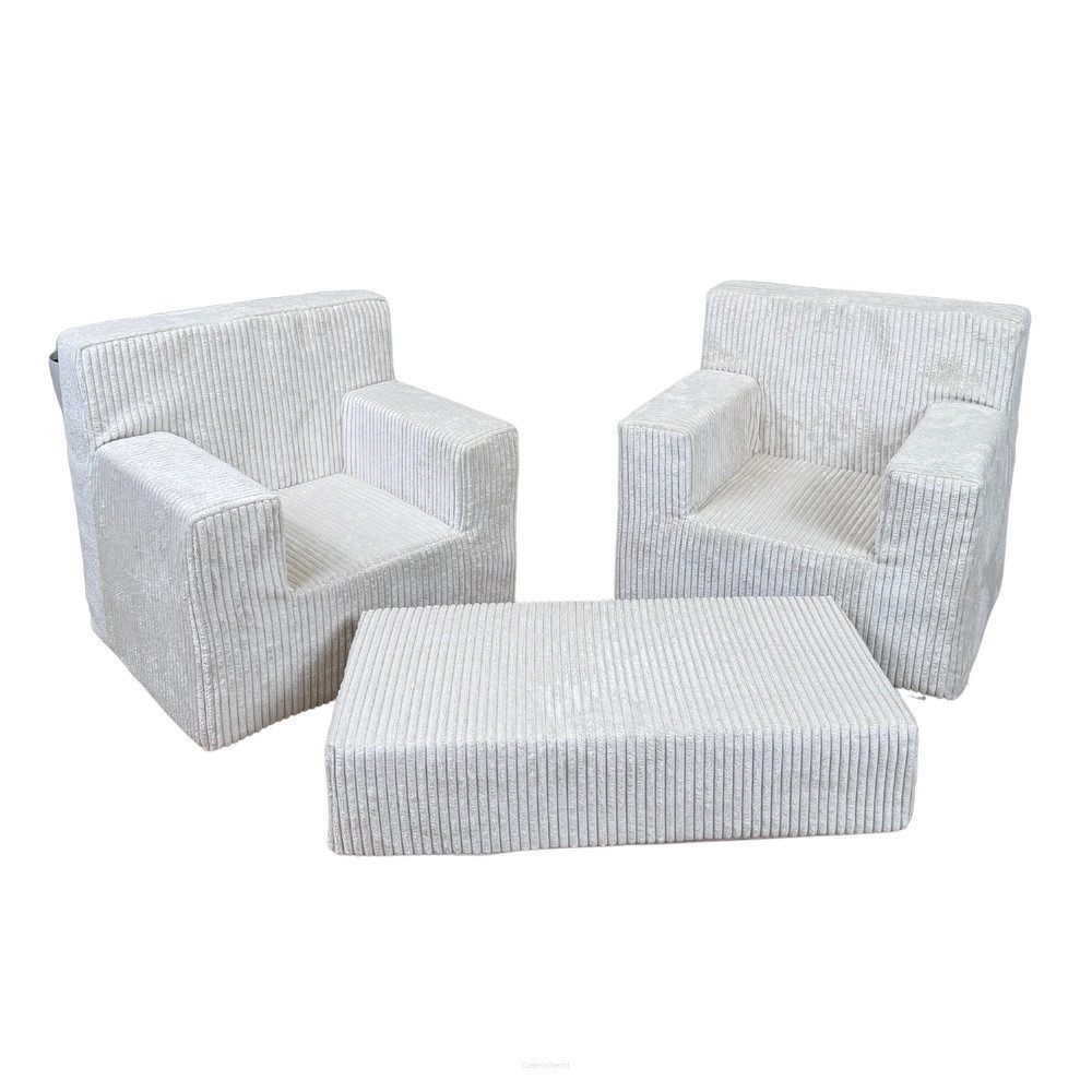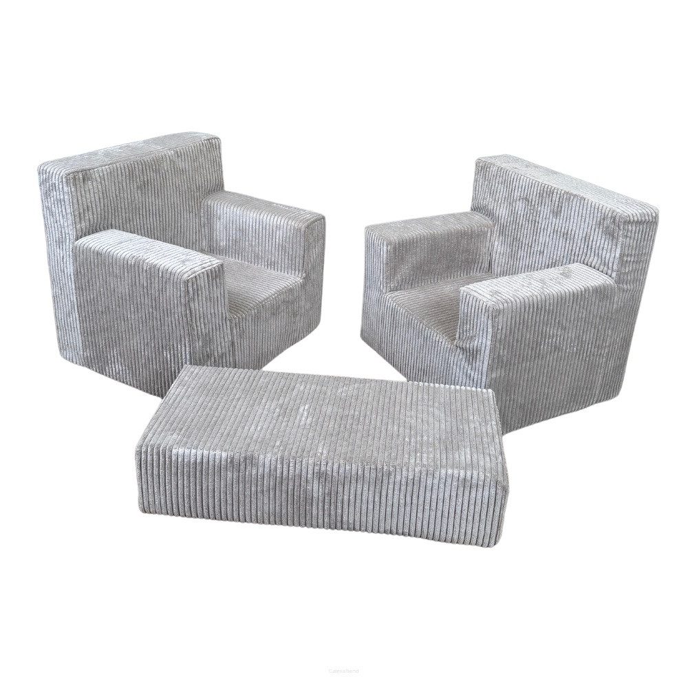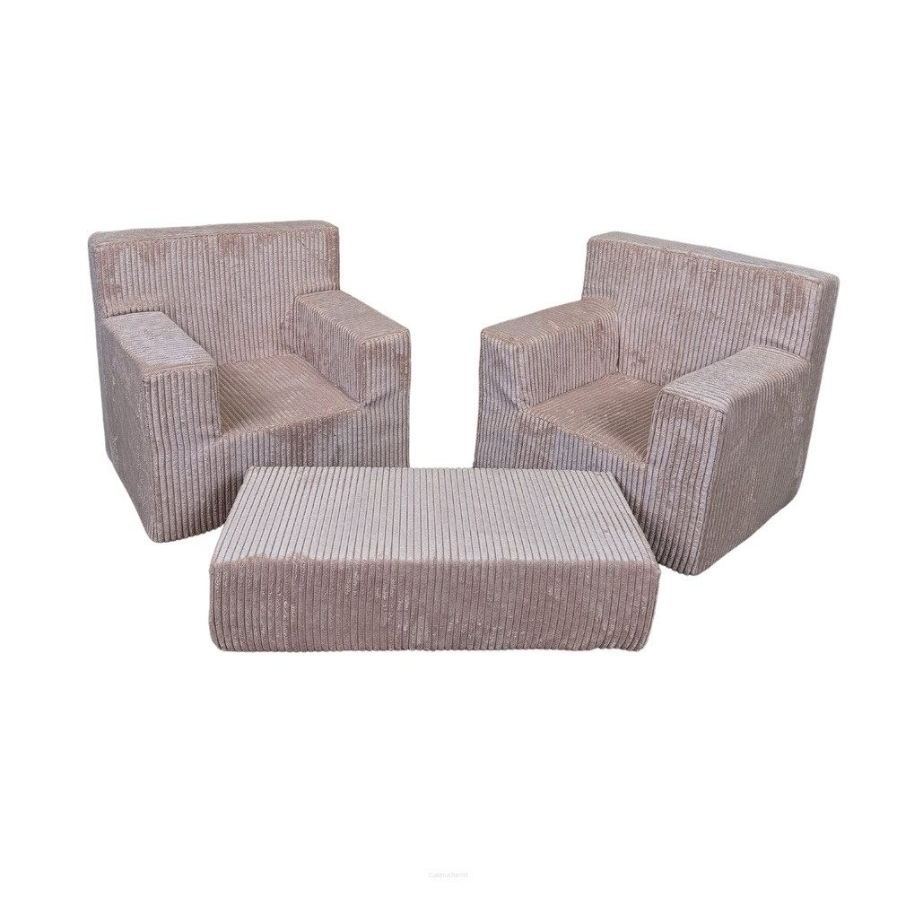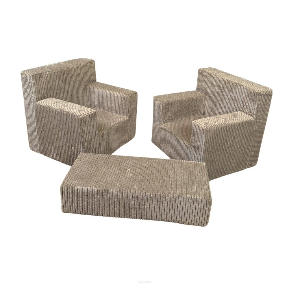 Das Set besteht aus weichem, angenehmem Cordstoff, der nicht nur edel aussieht, sondern auch maximalen Komfort bietet. Die ergonomische Form der Sessel und die durchdachte Konstruktion des Tisches laden Kinder zum Verweilen und Spielen ein.