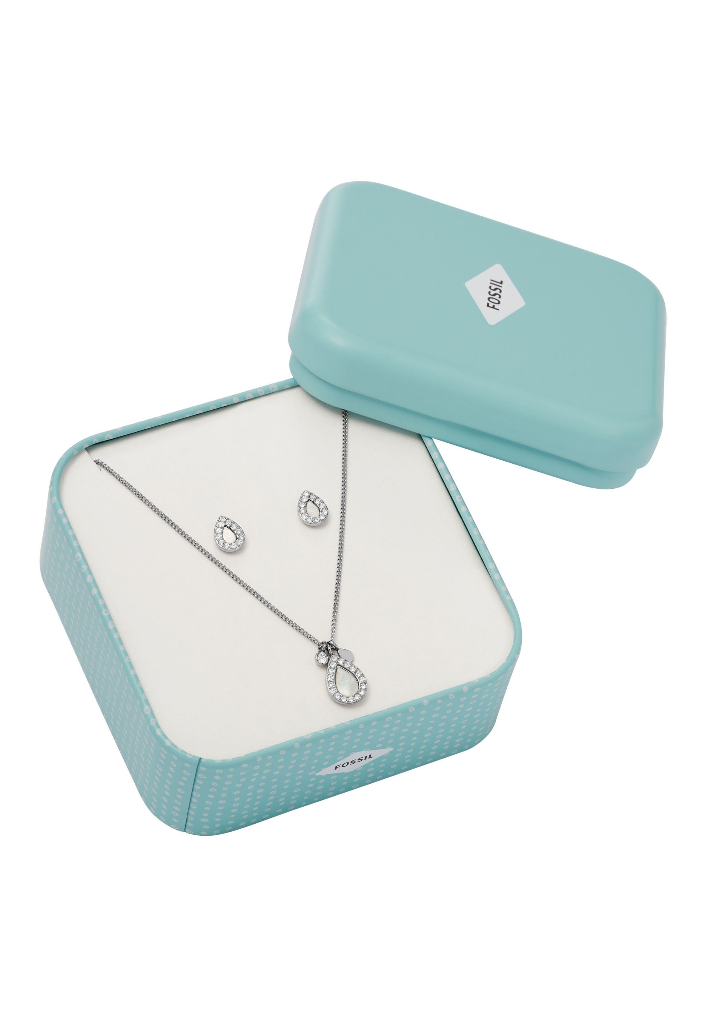 Fossil Ohrring und Ketten Set Schmuck Geschenk Edelstahl Tropfen (Set, 3-tlg), mit Perlmutt und Glassteinen