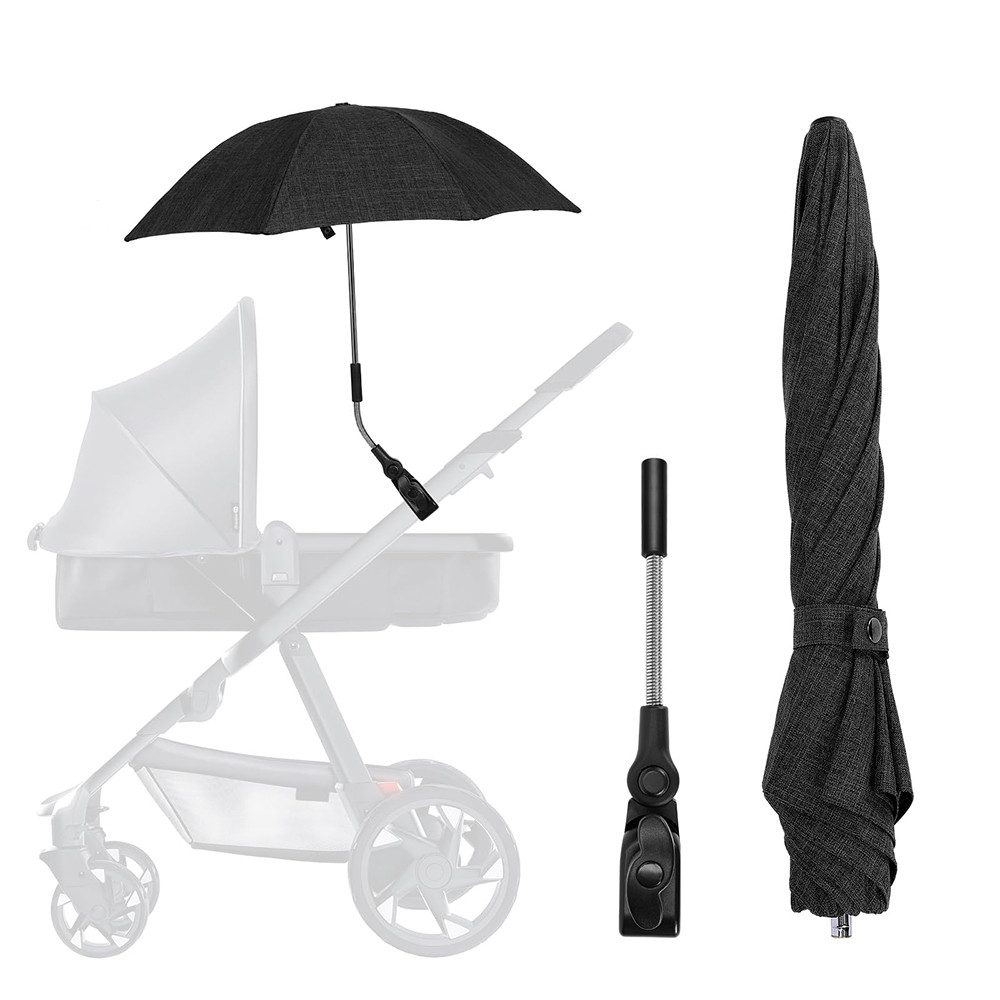 Unser Sonnenschirm wird mit einer abnehmbaren Klemme geliefert, die sich auf einen maximalen Durchmesser von 3,5 cm einstellen lässt. Der Clip lässt sich einfach an den meisten Kinderwagen, Buggys oder Kinderwagensystemen befestigen und sorgt für eine sichere und stabile Befestigung.