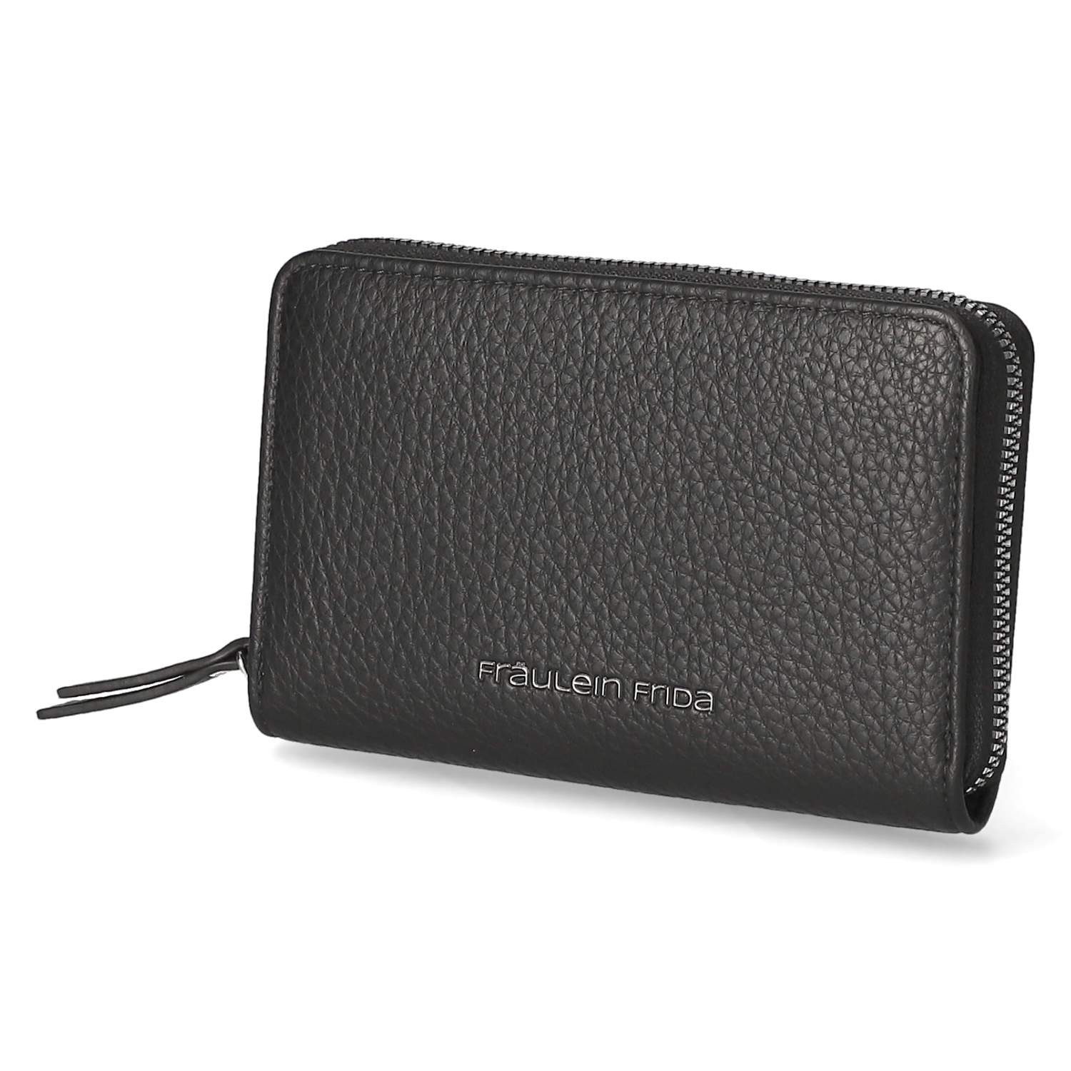 Die Fräulein Frida Damen Geldbörse in Schwarz überzeugt mit einem klassischen Design und durchdachter Aufteilung. Gefertigt aus hochwertigem Synthetikmaterial, setzt das silberfarbene Markenlogo einen eleganten Akzent. Das geräumige Reißverschlusshauptfach bietet sechs Visitenkartenfächer, sechs Steckfächer, ein sicheres Reißverschlussmünzfach und vier Geldscheinfächer – perfekt für eine geordnete Aufbewahrung. Mit Maßen von ca. 10,5 x 16 x 3 cm (HxBxT) passt sie ideal in jede Handtasche und ergänzt jedes Outfit stilvoll. Ob im Alltag oder zu besonderen Anlässen – diese Geldbörse ist ein praktischer und modischer Begleiter.