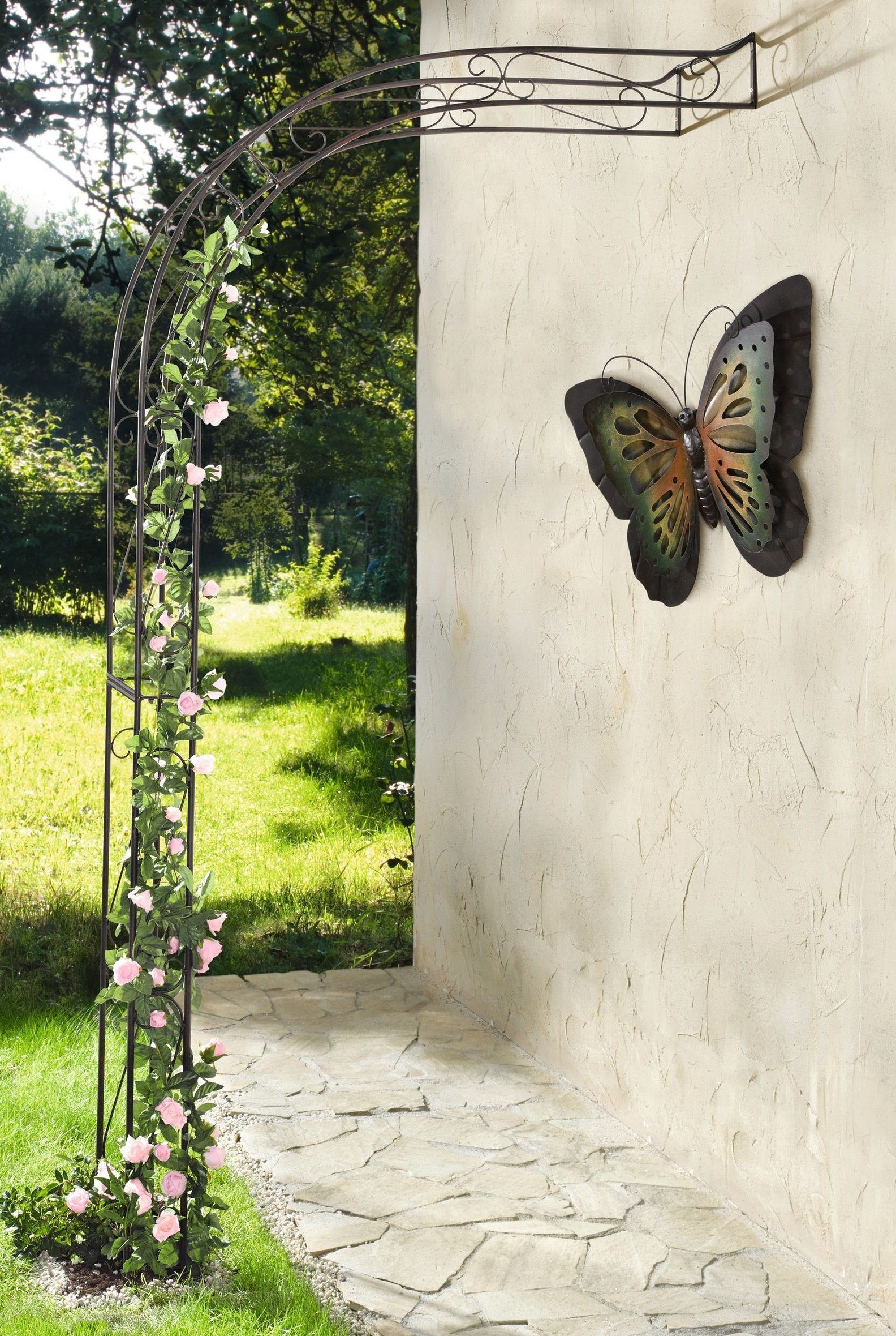 Verleihen Sie Ihrem Garten, Ihrer Terrasse oder Ihrer Blumenanordnung mit unserem soliden "Halbbogen" Rosenbogen eine zeitlose und elegante Note. Dieses ansprechende Gartenelement in Rostoptik vereint solide und aufwändige Handwerkskunst, um Ihrem Außenbereich eine romantische Atmosphäre zu verleihen. Die Rankhilfe setzt sich aus drei sorgfältig gestalteten Teilen zusammen, die einfach miteinander kombiniert werden können, um einen eindrucksvollen Halbbogen zu schaffen. Das Metallmaterial ist mit einer trendigen Rostoptik versehen, die nicht nur für Robustheit und Langlebigkeit steht, sondern auch einen Hauch von nostalgischem Charme in Ihren Garten bringt. Mit großzügigen Maßen von 125 x 35 x 240 cm bietet dieser Rosenbogen ausreichend Platz, um Ihre Lieblingsranken, Blumen oder Kletterpflanzen in voller Pracht erblühen zu lassen. Die einfache Selbstmontage ermöglicht es Ihnen, diesen dekorativen Halbbogen problemlos in Ihrem Garten zu platzieren, und verleiht Ihrem Außenbereich eine romantische Note. Lassen Sie sich von der zeitlosen Schönheit dieses Rosenbogens verzaubern und schaffen Sie einen Blickfang für Ihr grünes Paradies.