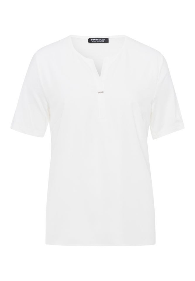 Dieses elegante Blusenshirt von Frank Walder verleiht Ihrem Outfit eine feminine und stilvolle Note. Der geschlitzte Ausschnitt mit dezentem Schmuckdetail sorgt für einen edlen Blickfang, während die leichte, fließende Materialqualität angenehm auf der Haut liegt. Die Kurzarm-Form und der klassische Unifarben-Look machen diese Bluse zu einem vielseitigen Begleiter – ob im Büro, bei festlichen Anlässen oder in der Freizeit.