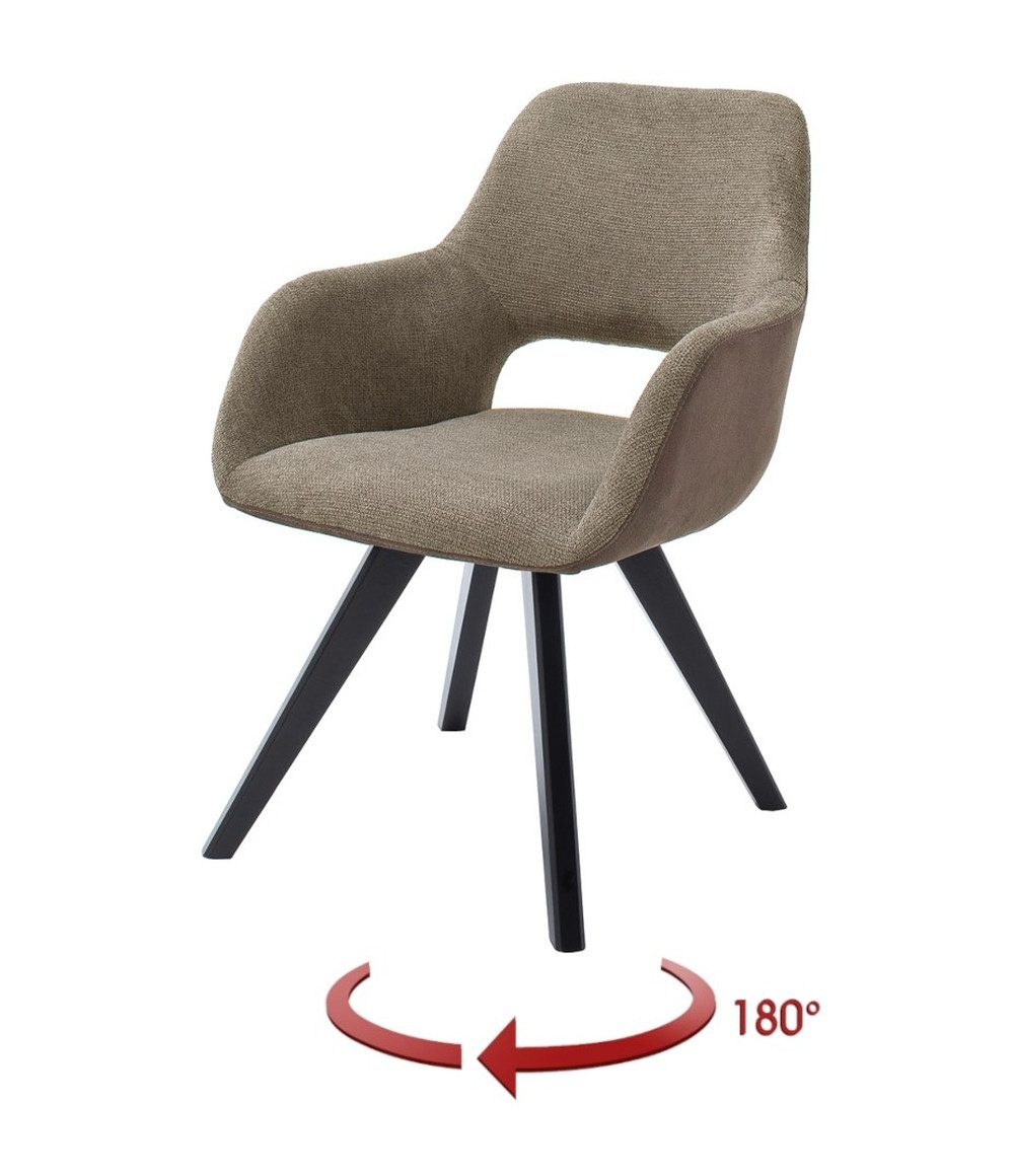 Modernes Design: Cappuccinofarbene Polsterung kombiniert mit schwarz lackiertem Massivholz-Drehgestell und eleganten Spider-Füßen für stilvolle Akzente.