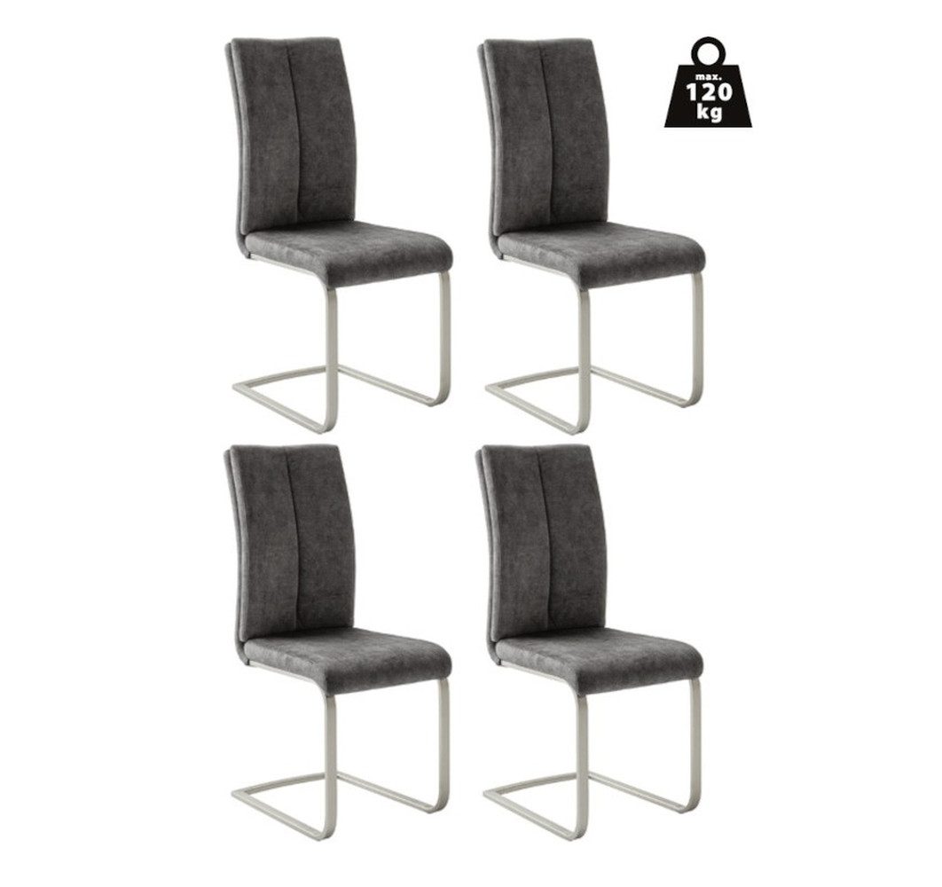 Genießen Sie ultimativen Sitzkomfort mit dem Schwingstuhl-4er Set HUDSON. Diese Stühle bieten eine perfekte Kombination aus Stil, Komfort und Funktionalität. Komfortables Sitzerlebnis: Mit großzügigen Sitzmaßen von ca. B/H/T: 43 x 49 x 46 cm bietet das Set höchsten Sitzkomfort, ideal für lange Stunden. Robuste Konstruktion: Die stabile Konstruktion in Edelstahl gebürstet gewährleistet eine Belastbarkeit von bis zu 120 kg und sorgt für sicheren Halt. Ein besonderes Highlight ist der elegante Edelstahlgriff im Rücken, der nicht nur das Design aufwertet, sondern auch für einfaches Umstellen sorgt. Vielseitig einsetzbar: Die Schwingstühle HUDSON lassen sich mühelos mit verschiedenen Tischen kombinieren und passen perfekt in Esszimmer, Wohnzimmer oder die Küche. Pflegeleichter Bezug: Der pflegeleichte Bezug in stilvoller Vintage-Veloursoptik ist nicht nur ein Hingucker, sondern auch einfach zu reinigen. Krümel lassen sich problemlos absaugen, und Flecken können mit einem nebelfeuchten Tuch entfernt werden. Einfache Montage: Der Aufbau der Stühle ist ohne handwerkliche Vorkenntnisse möglich. Dank der beiliegenden Montageanleitung sind die Stühle schnell und unkompliziert zusammengebaut. Maße: Sitzmaße (B x H x T): ca. 43 x 49 x 46 cm Gesamtmaße (B x H x T): ca. 43 x 105 x 60 cm Das Schwingstuhl-4er Set HUDSON vereint modernen Komfort mit stilvollem Design und ist die ideale Wahl für jeden Raum!