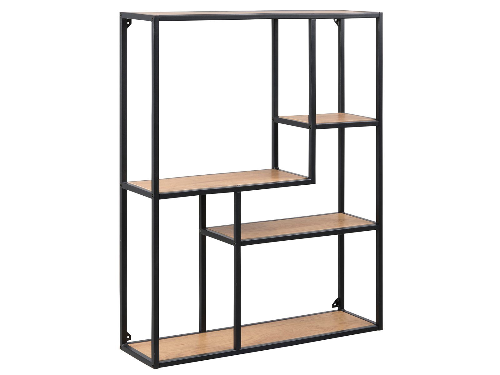 Das Hängeregal "Carney I" ist mit einem schwarz-matten Metallgestell erhältlich, welches stilvoll mit Ablageflächen in charakterstarker Wildeiche Nachbildung kombiniert wird. Beide Farben bilden einen attraktiven Kontrast zueinander, der für eine gefällige Ausstrahlung sorgt. Die Holznachbildung ist qualitativ sehr hochwertig mit täuschend echter Maserung.