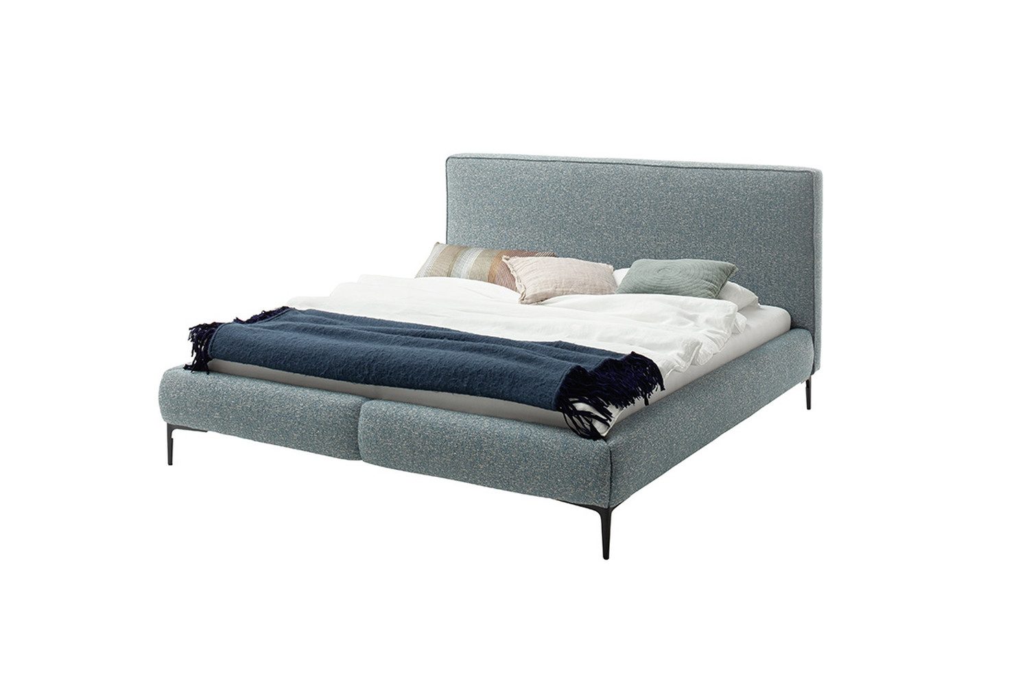 Moderne Loftoptik mit konischen, schwarzen Füßen und einem umlaufenden Keder am Kopfteil – ideal für stilvolle Schlafzimmer mit minimalistischer Ästhetik.