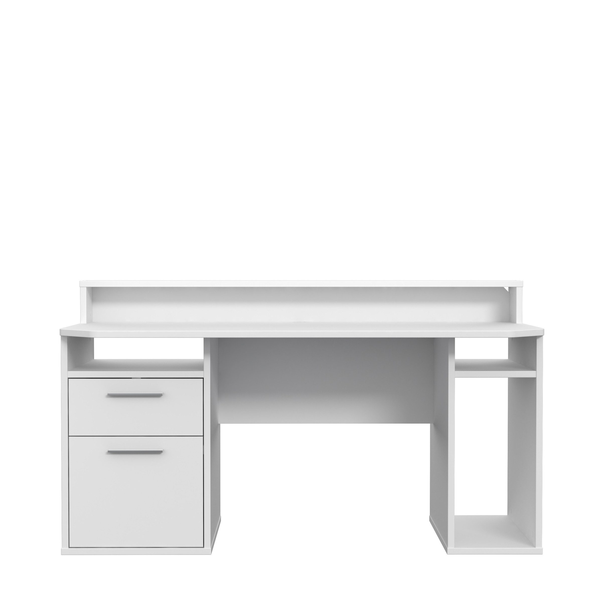Mit 1 Schublade, 1 Tür und 3 offenen Fächern bietet der Schreibtisch praktischen Stauraum für Ihre Arbeitsutensilien und sorgt für Ordnung auf der Arbeitsfläche.