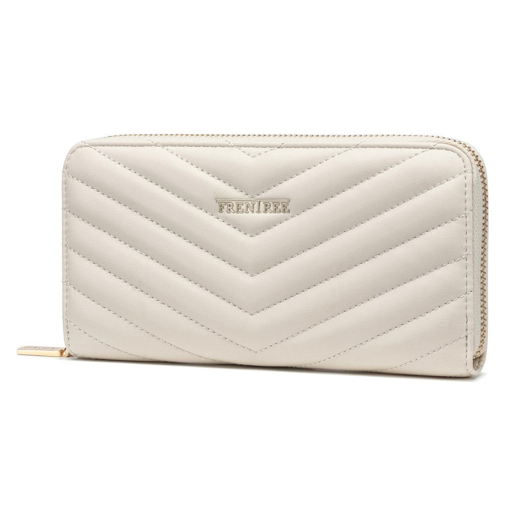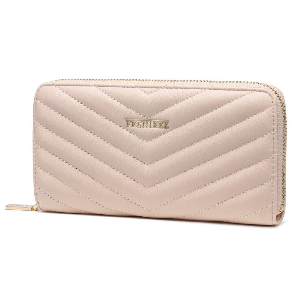 Diese elegante Damen Geldbörse von FRENTREE vereint Stil, Funktion und Sicherheit in einem. Das durchdachte Design mit 12 Kartenfächern, mehreren großen Fächern für Scheine sowie einem Reißverschlussfach für Münzen sorgt für maximale Übersicht. Sogar dein Smartphone findet bequem Platz! Dank integriertem RFID-Schutz bist du vor unerlaubtem Datenzugriff sicher – ideal für den Alltag und auf Reisen. Hochwertige Nähte, ein eleganter Zipper und das edle Chevron-Muster verleihen der Geldbörse einen besonders stilvollen Look. Ob in klassischem Schwarz oder sanften Pastelltönen wie Rosa, Beige, Creme oder Grau – dieses Portemonnaie passt zu jedem Outfit. Geliefert wird sie in einer schönen Geschenkverpackung – perfekt zum Verschenken oder selbst behalten!