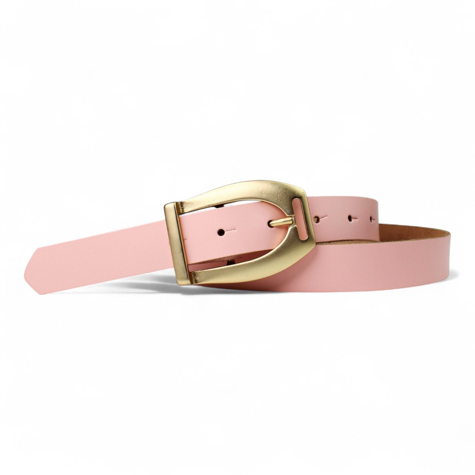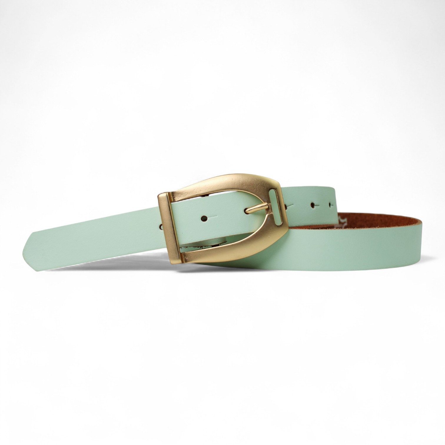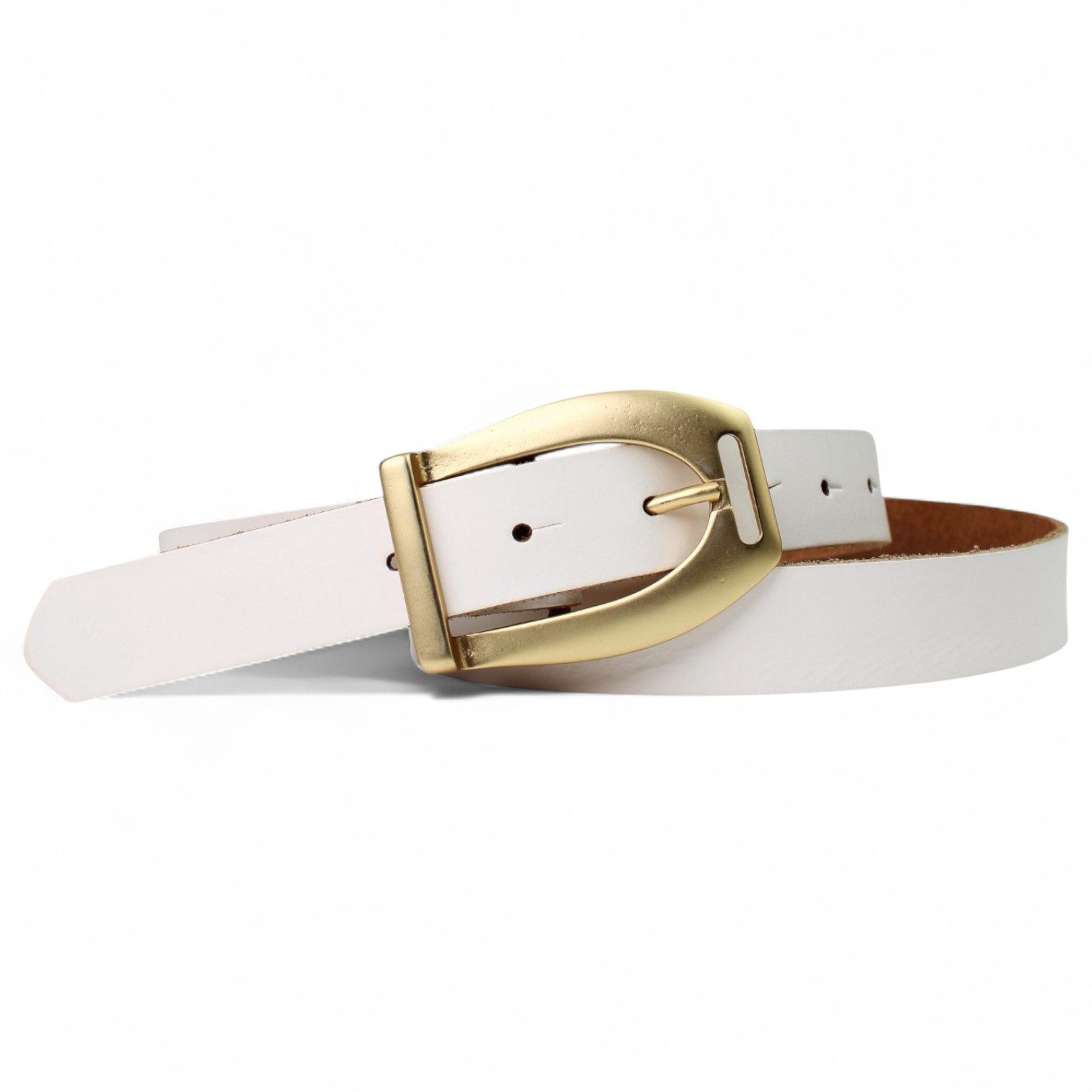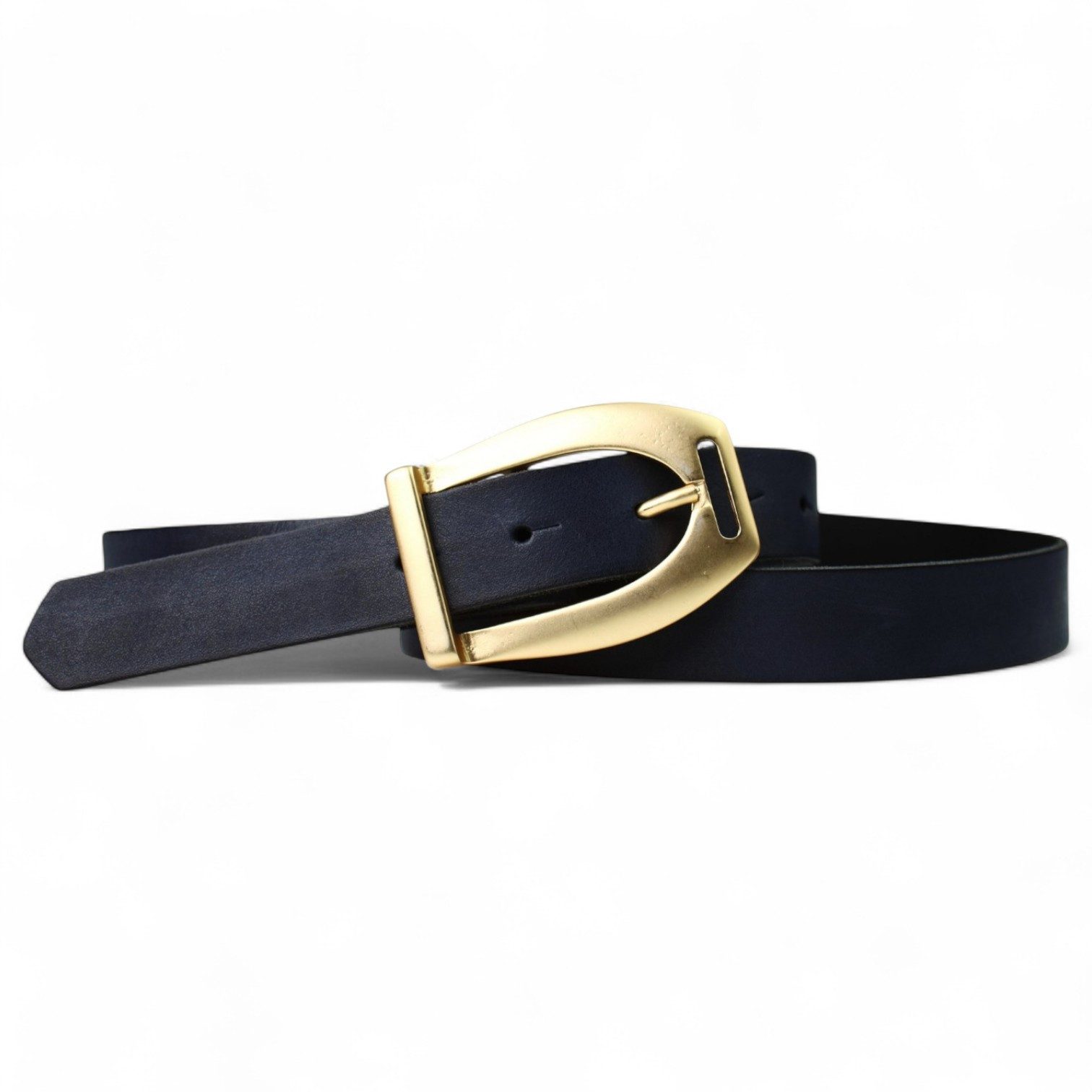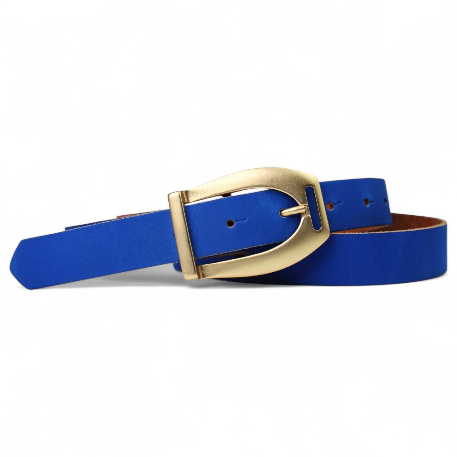 Exklusiver Damengürtel mit einer tollen Steigbügel-Gürtelschnalle in Mattgold. Der Gürtel kann hervorragend zu einer Vielzahl von Outfits kombiniert werden. Das Leder hat eine glatte Oberfläche und ist bewusst sehr dünn geschnitten (2-3mm) damit es flach und leicht ist und nicht aufträgt.