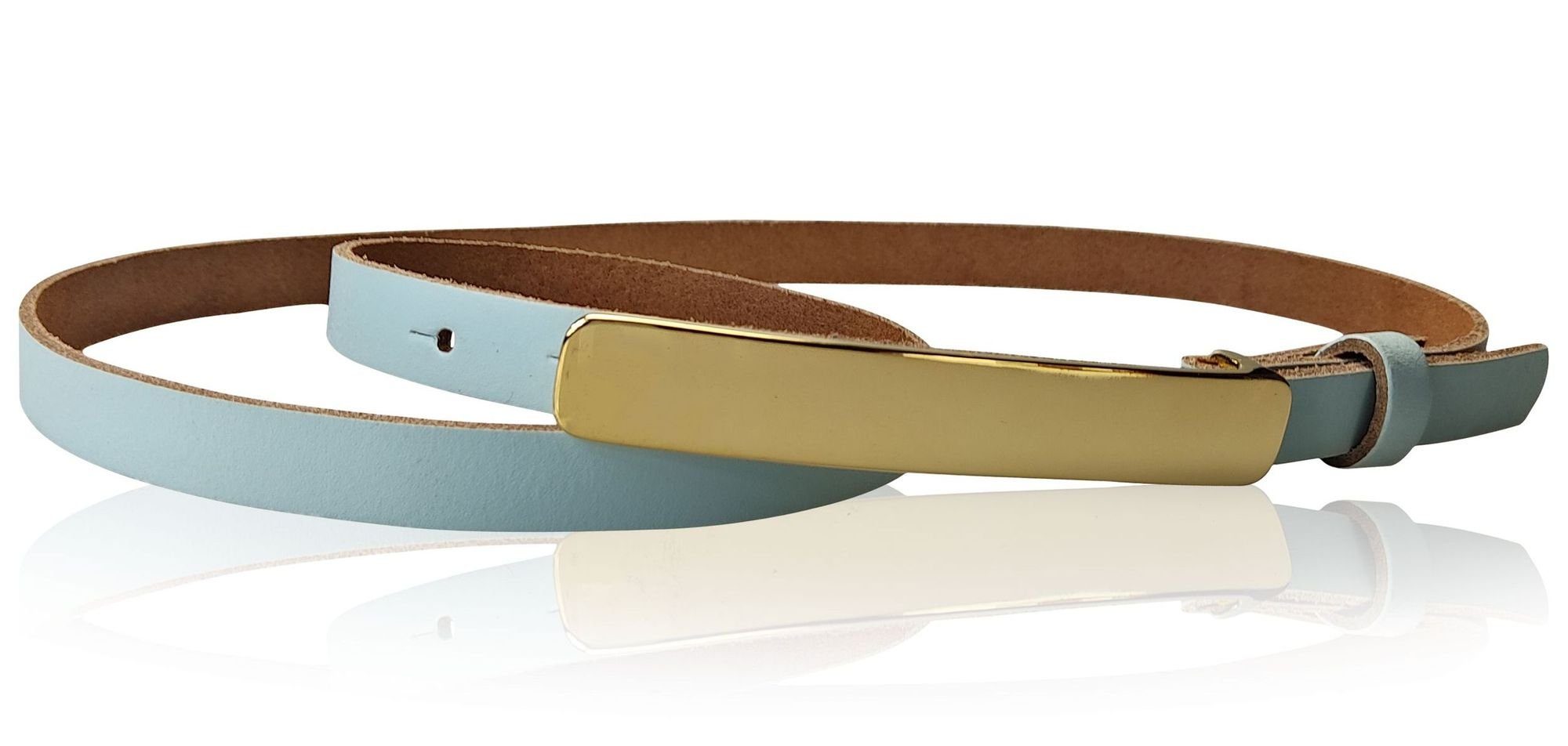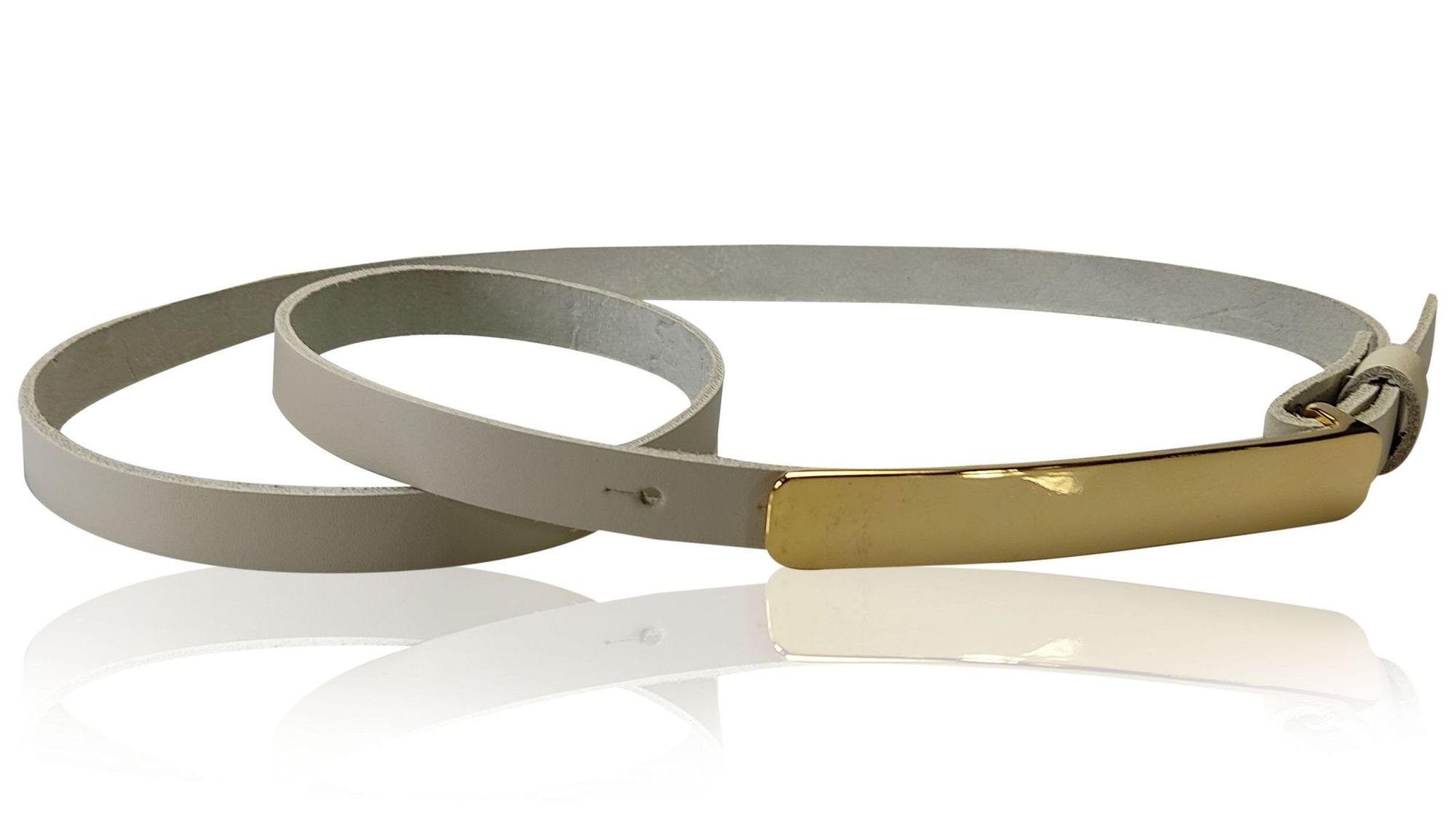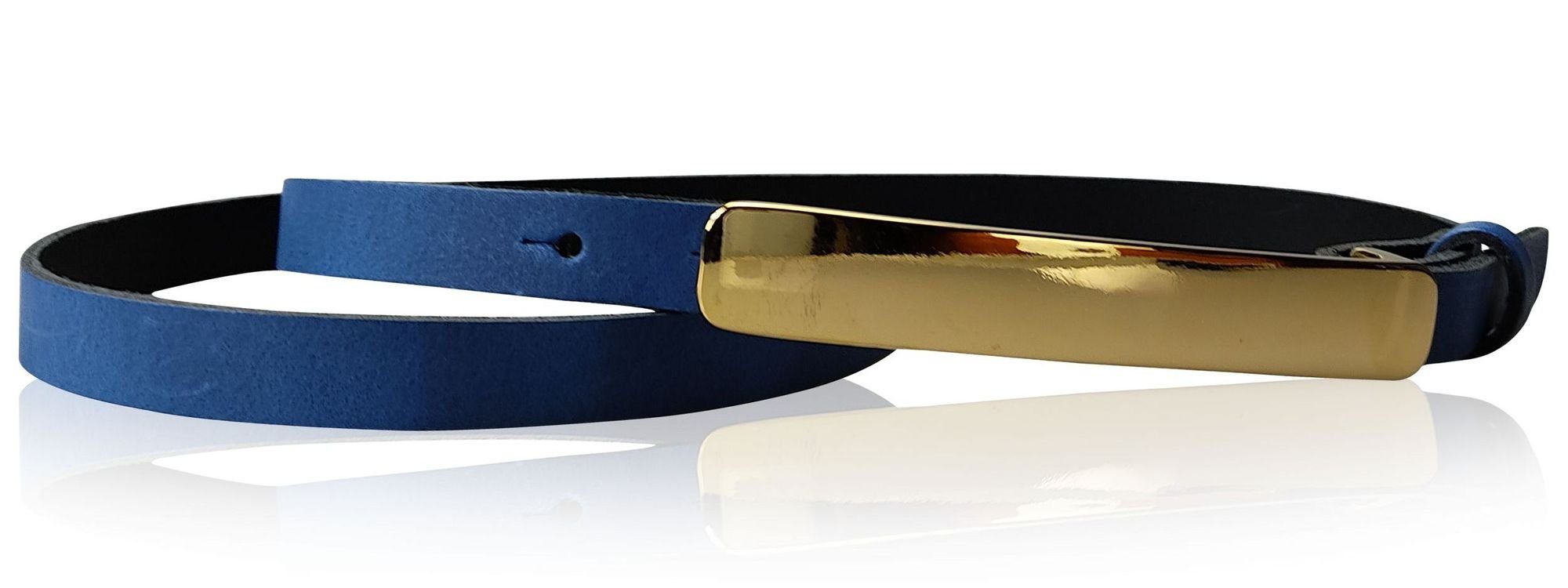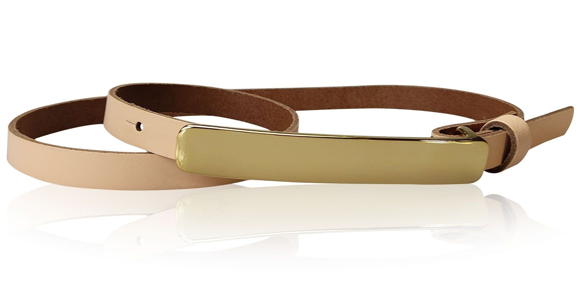 Besondere Merkmale | 1,2 cm schmaler Damengürtel mit langer goldener Gürtelschnalle 18774 |