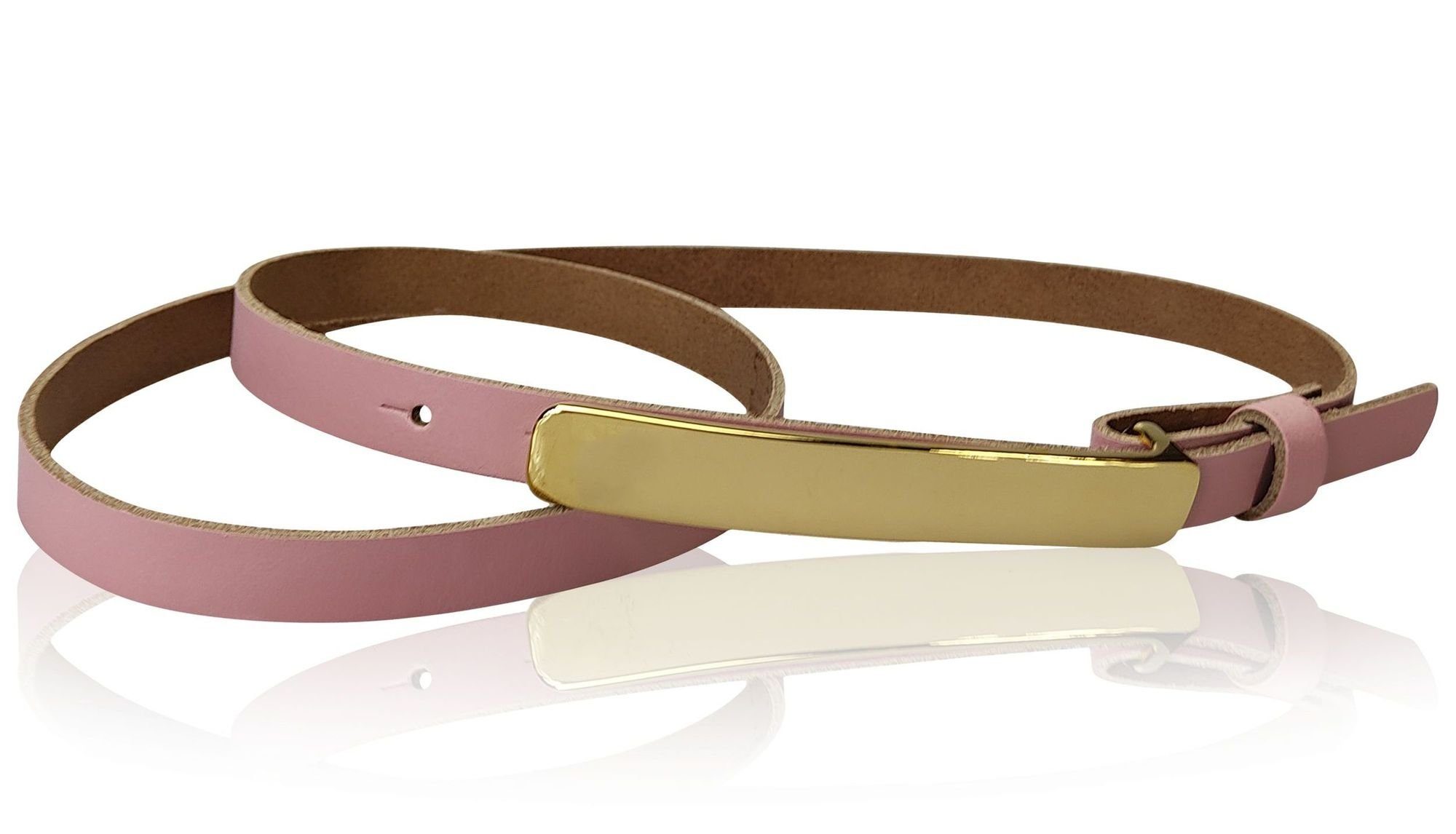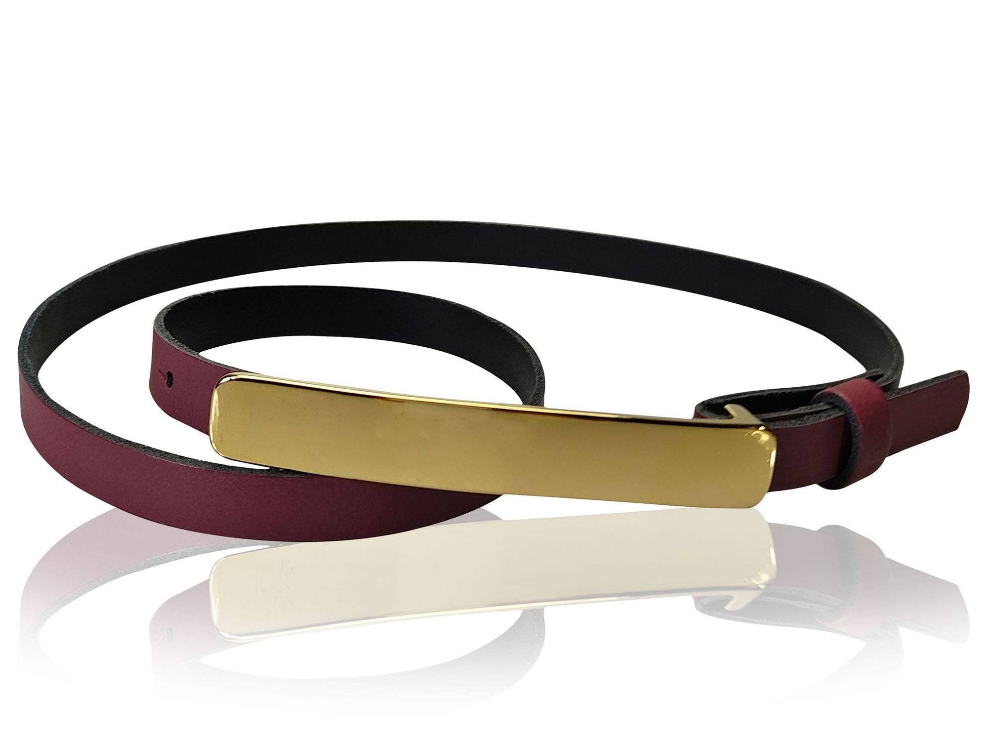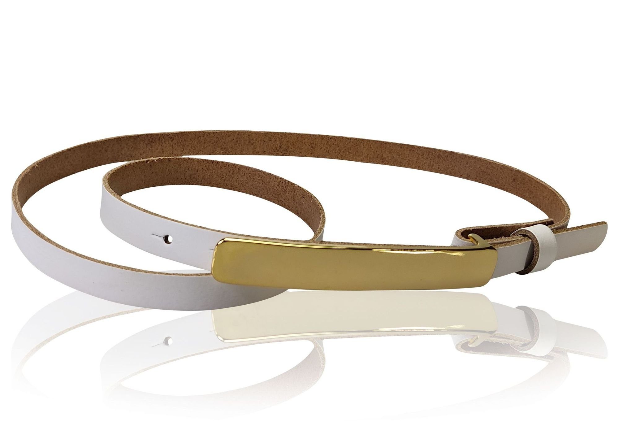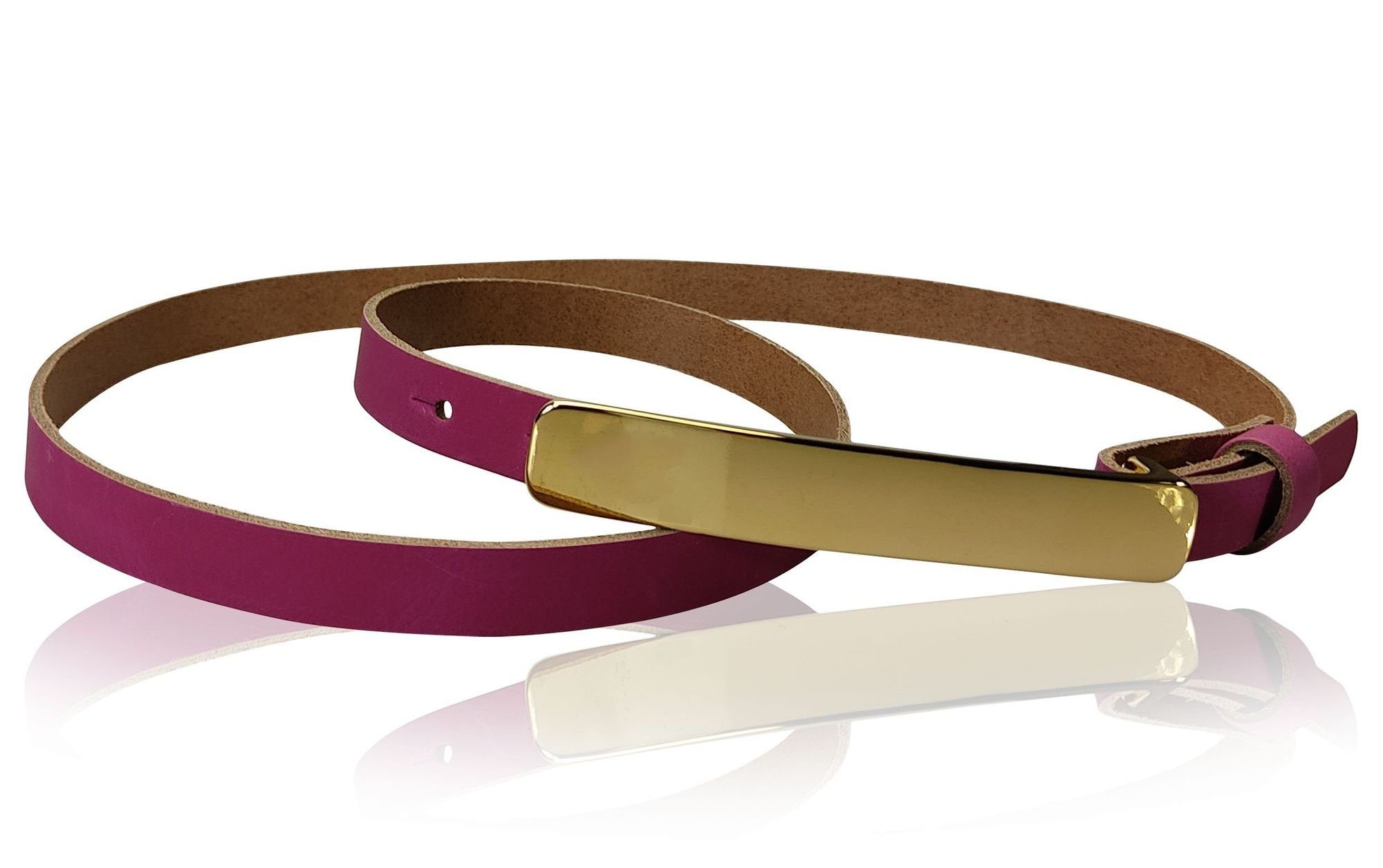 Besondere Merkmale | 1,2 cm schmaler Damengürtel mit langer goldener Gürtelschnalle 18774 |