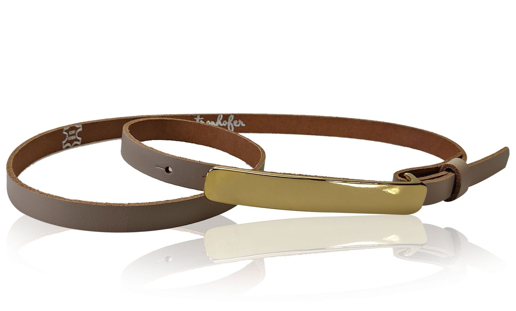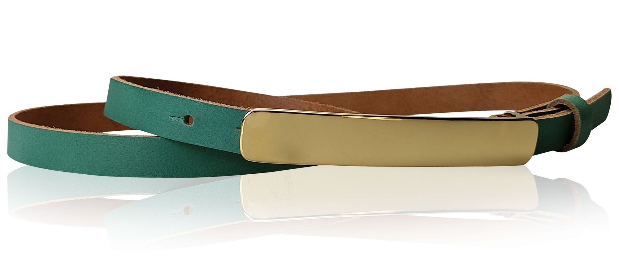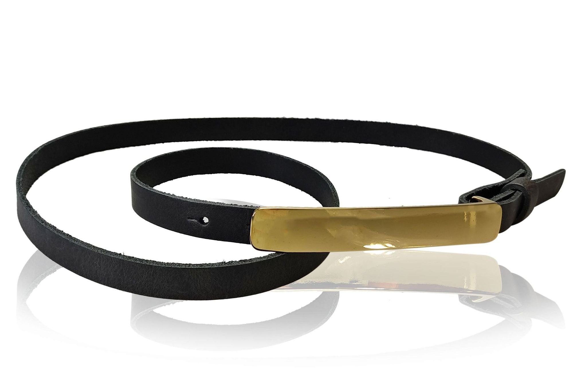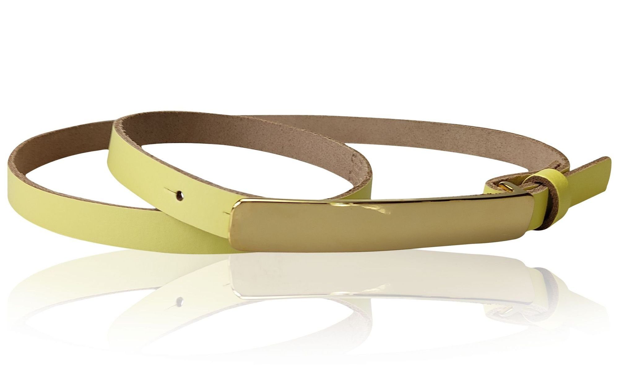 Besondere Merkmale | 1,2 cm schmaler Damengürtel mit langer goldener Gürtelschnalle 18774 |