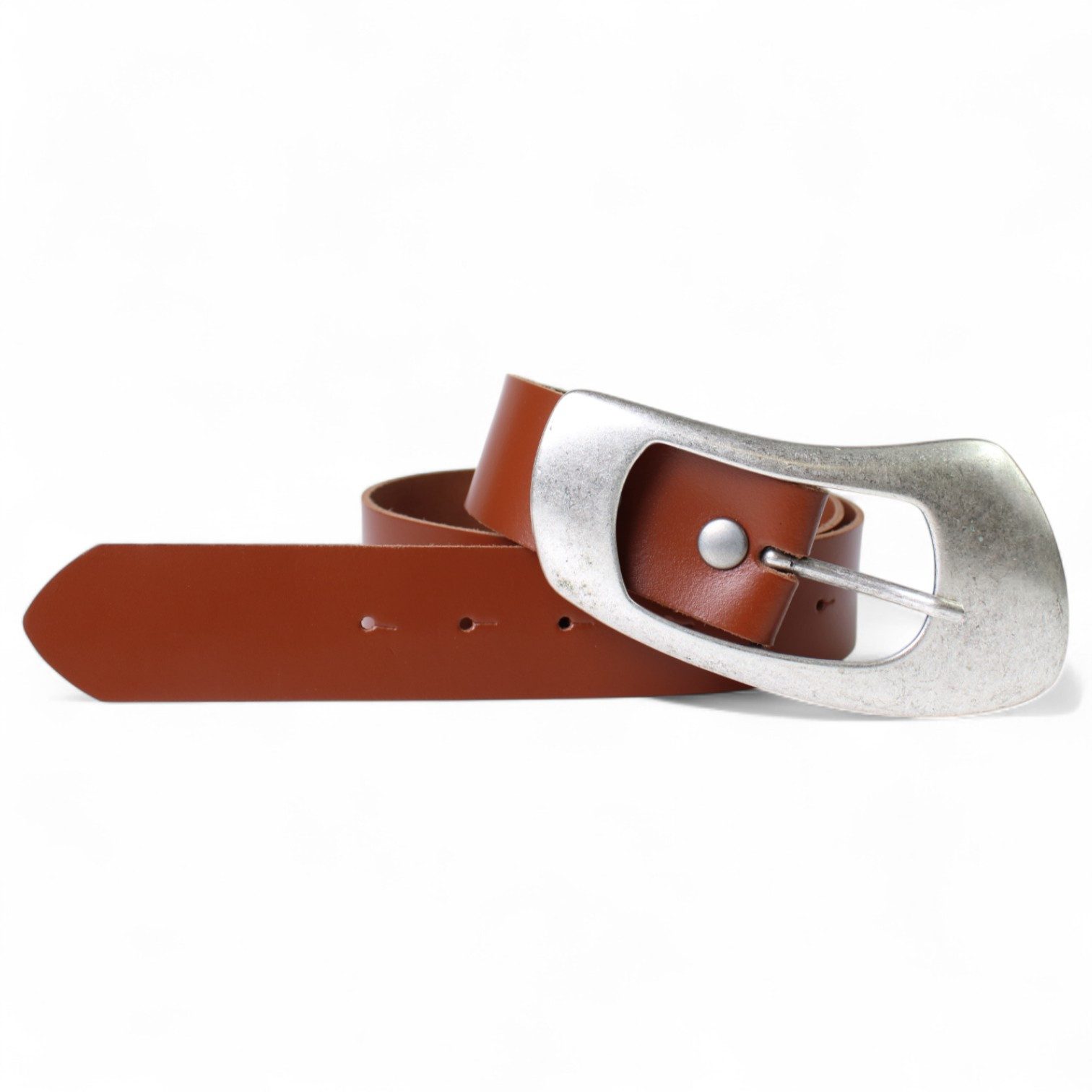 Besondere Merkmale | Damen Ledergürtel, große Dornschnalle, Retro Style, 4 cm, echt Leder |