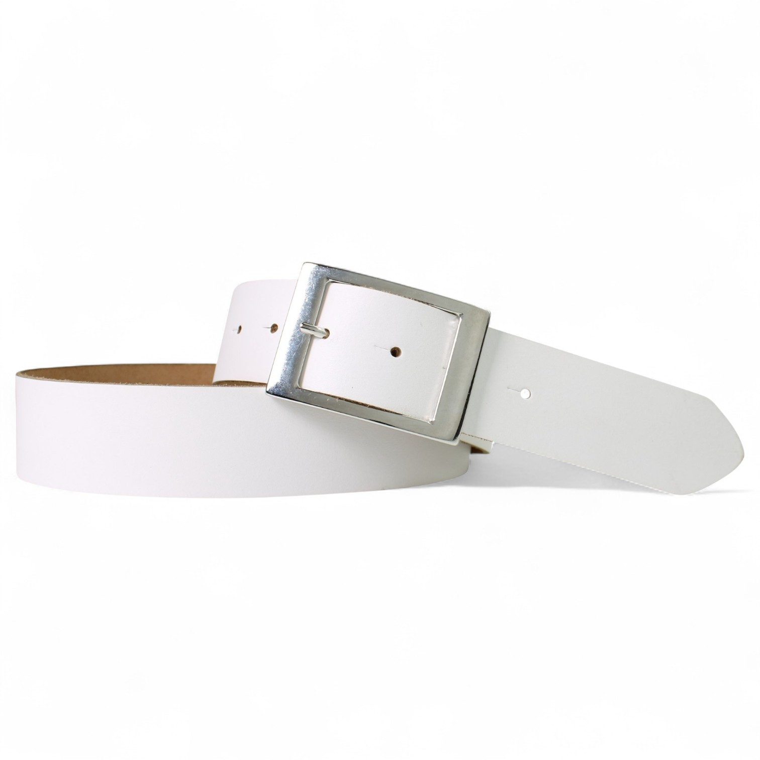 Dieser Gürtel ist ein zeitloser Unisex-Gürtel aus echtem Rindsleder mit einer schlichten silberfarbigen Dornschnalle. Der Gürtel ist ca. 4 cm breit und in vielen tollen Farben erhältlich. Auch in großen Größen bis 125 cm.