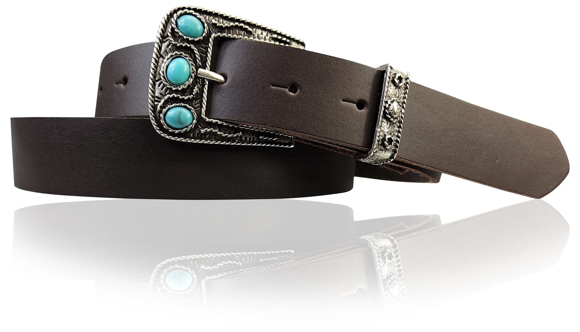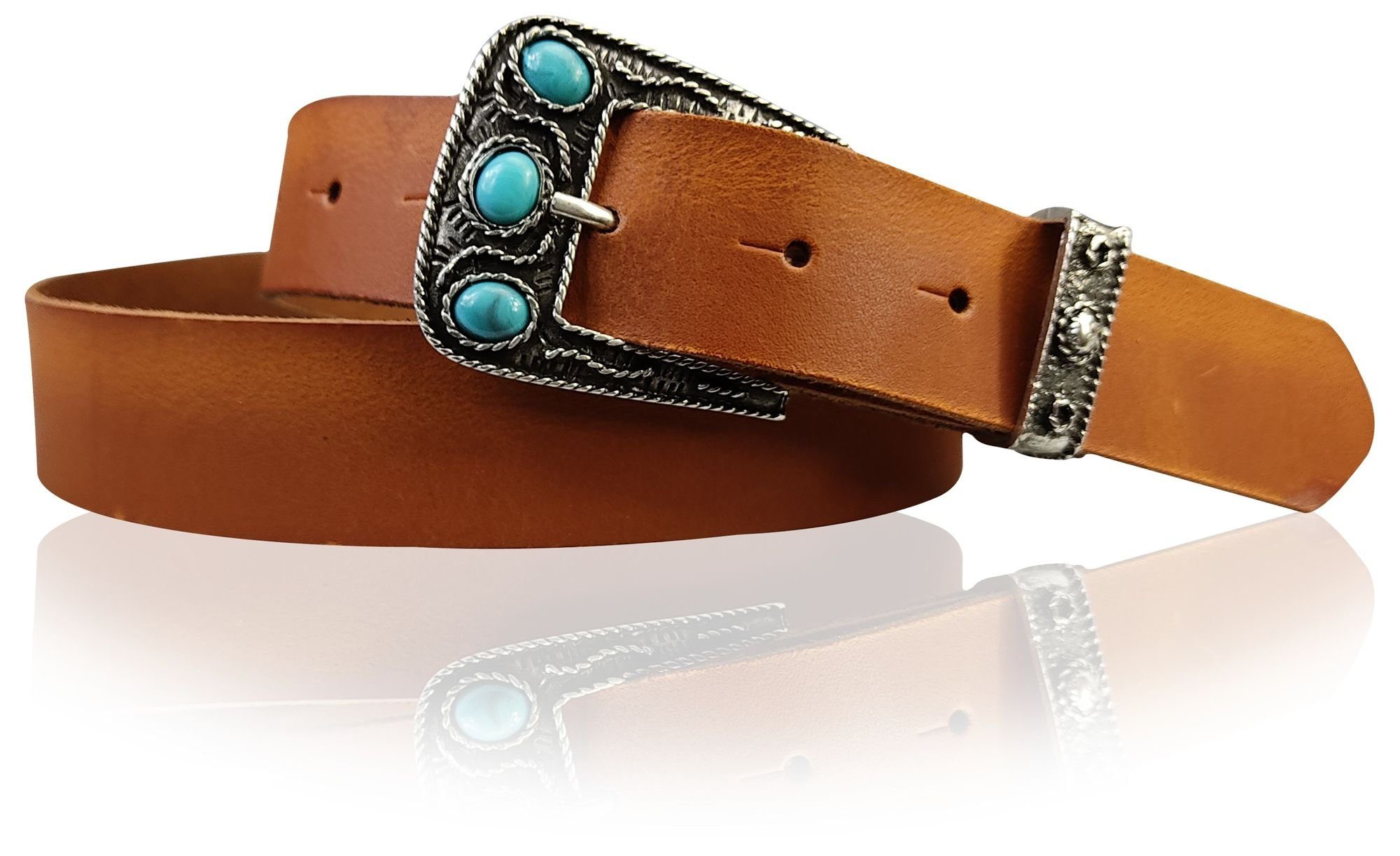 Ausdrucksstarker Ledergürtel mit toller Schmuckschnalle und passender Schlaufe im Ethno-Style. Der Gürtel kann hervorragend zu einer Vielzahl von Outfits kombiniert werden. Das Leder hat eine glatte Oberfläche und ist bewusst sehr dünn geschnitten (2-3mm) damit es flach und leicht ist und nicht aufträgt.