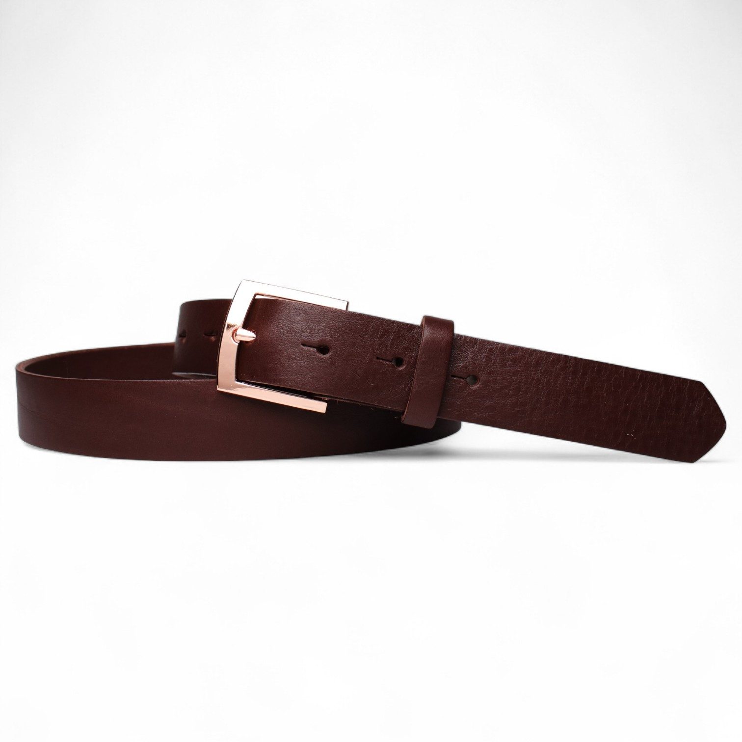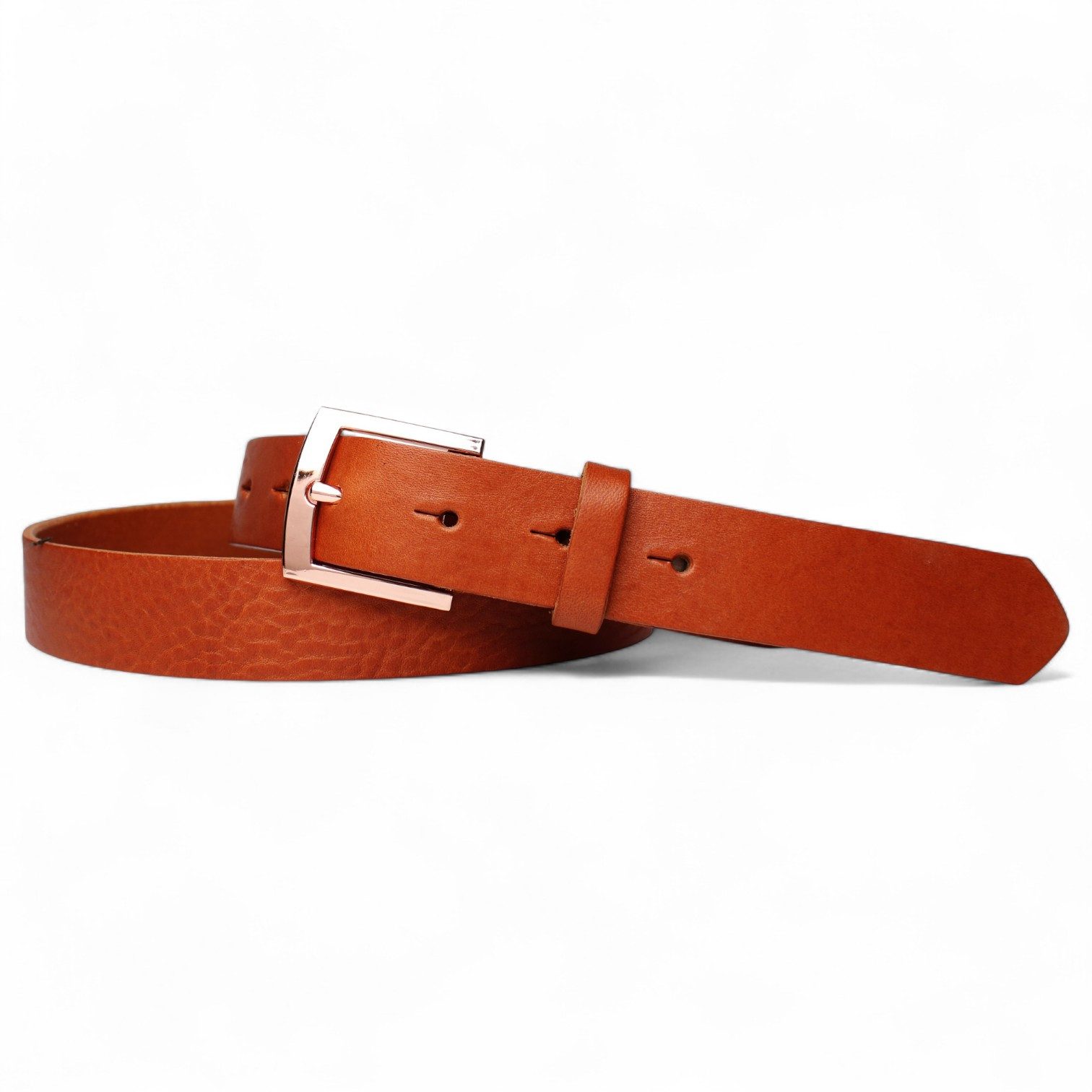 Besondere Merkmale | Damengürtel, 3 cm, Roségoldschnalle, Naturleder |