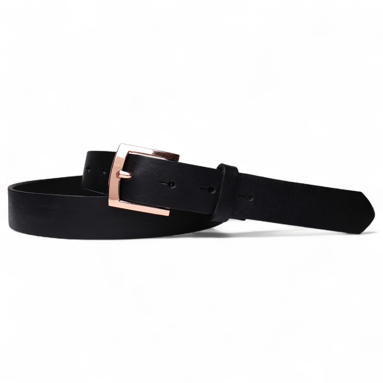 Zeitloser Damengürtel mit einer hochwertigen, roségoldenen Gürtelschnalle. Eine Schnalle, die sowohl casual als auch elegant kombiniert werden kann.