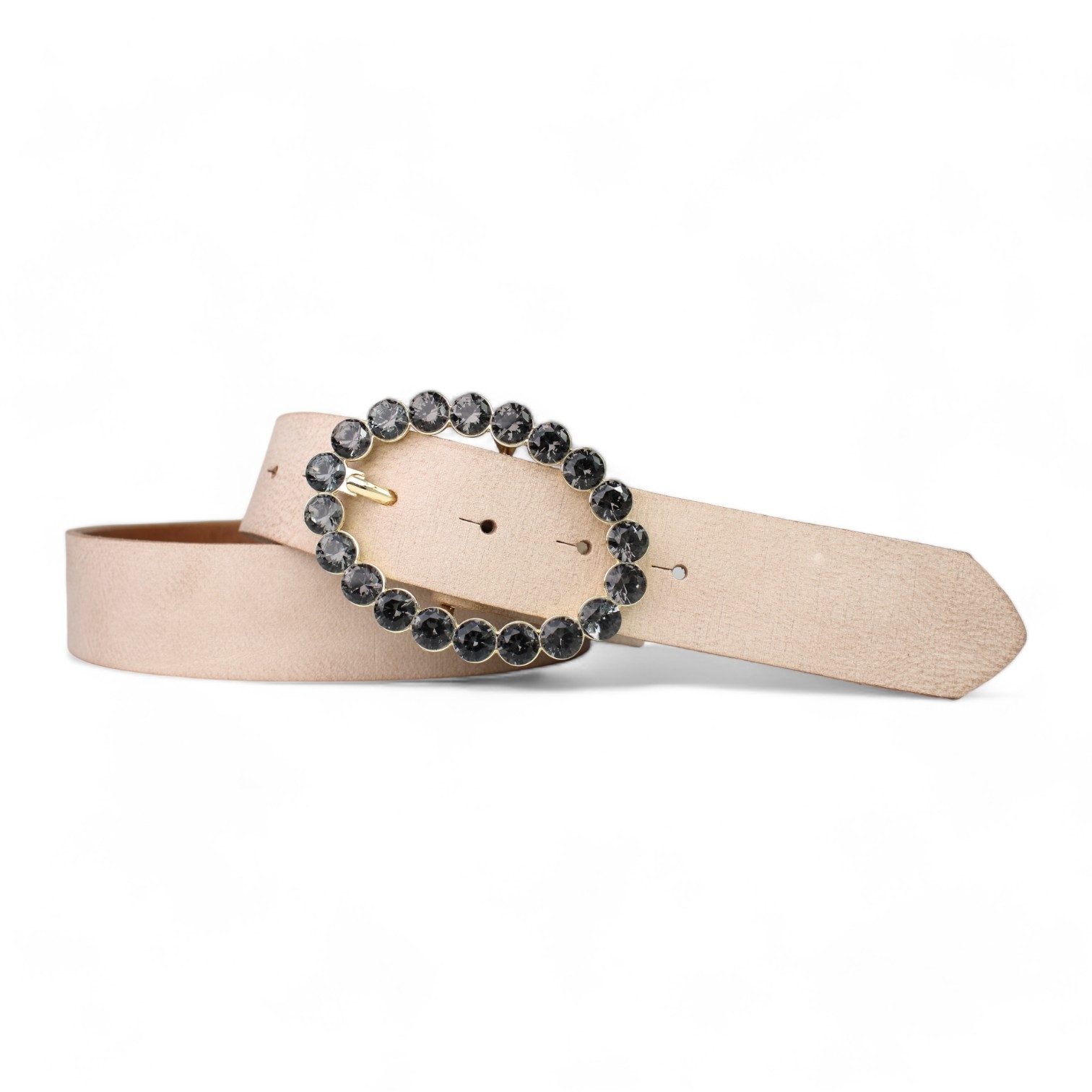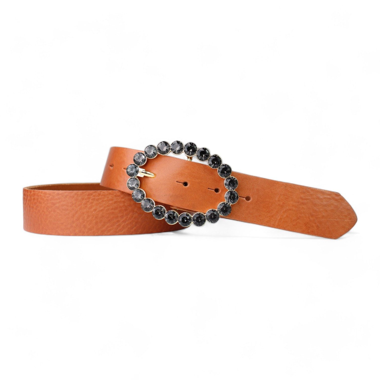 Besondere Merkmale | Damengürtel 4cm, Schnalle mit schwarzen Strass, vegetabiles Naturleder |