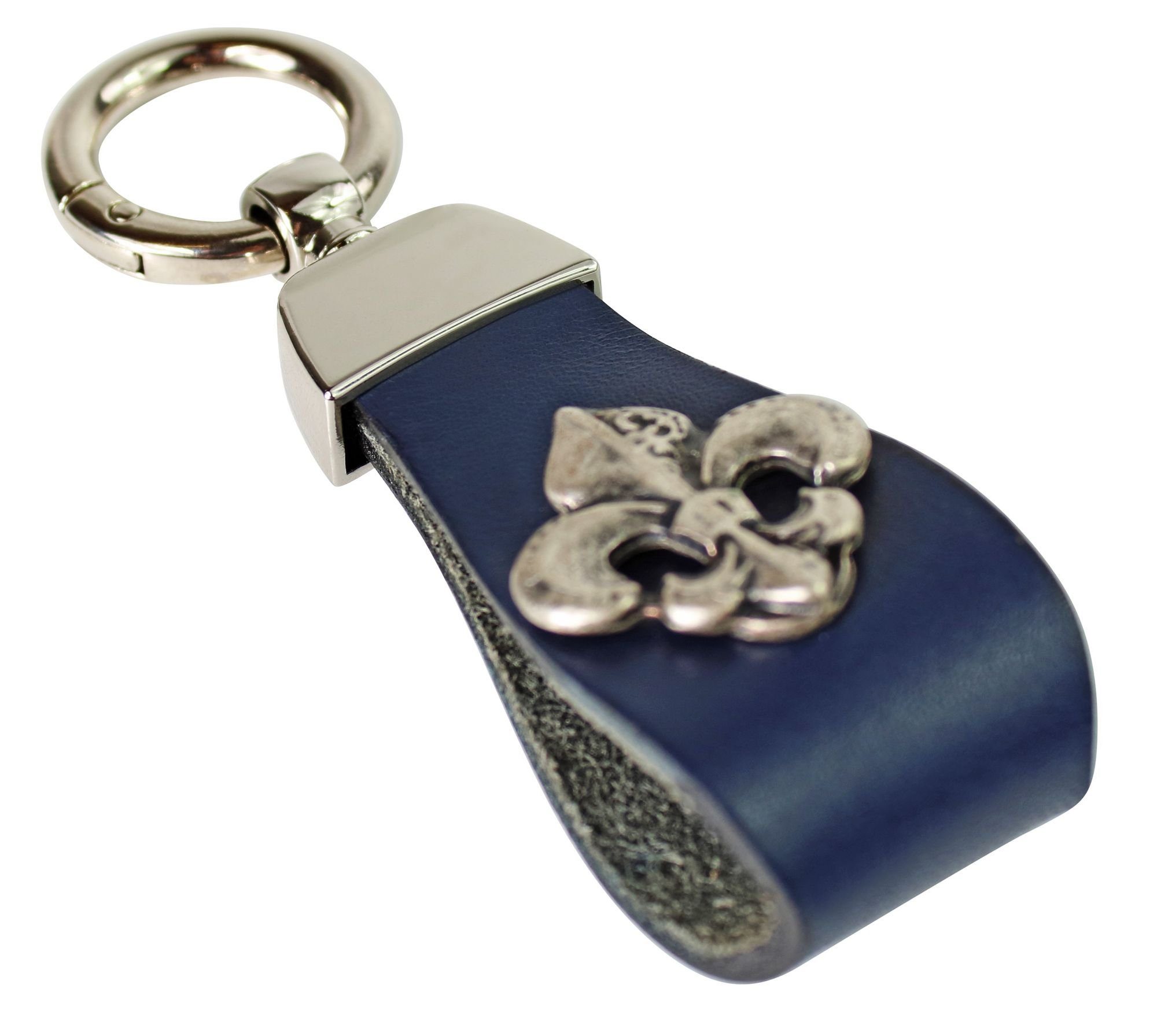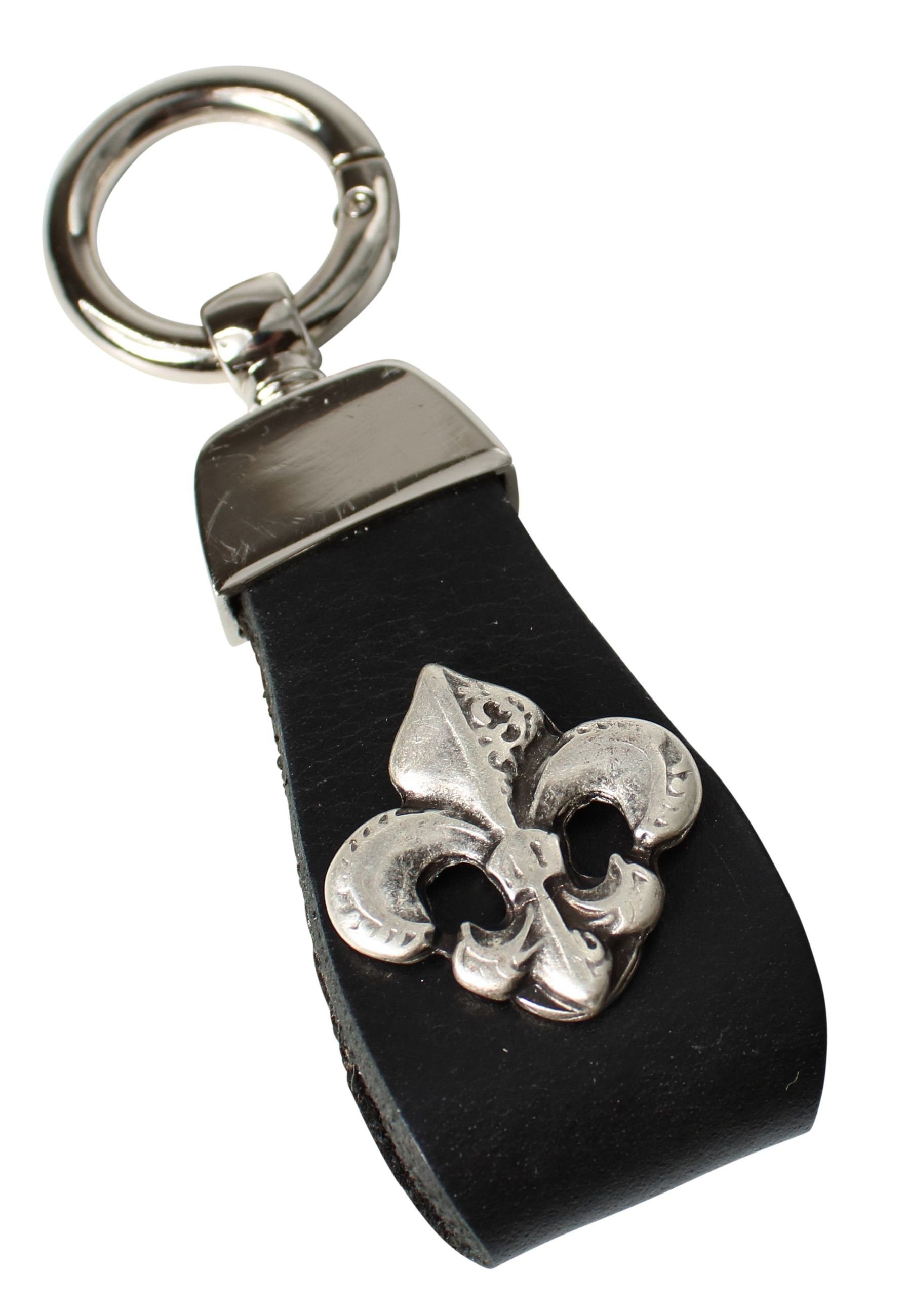 Besondere Merkmale | Schlüsselanhänger aus Vollrindleder mit Lilie antik silber |