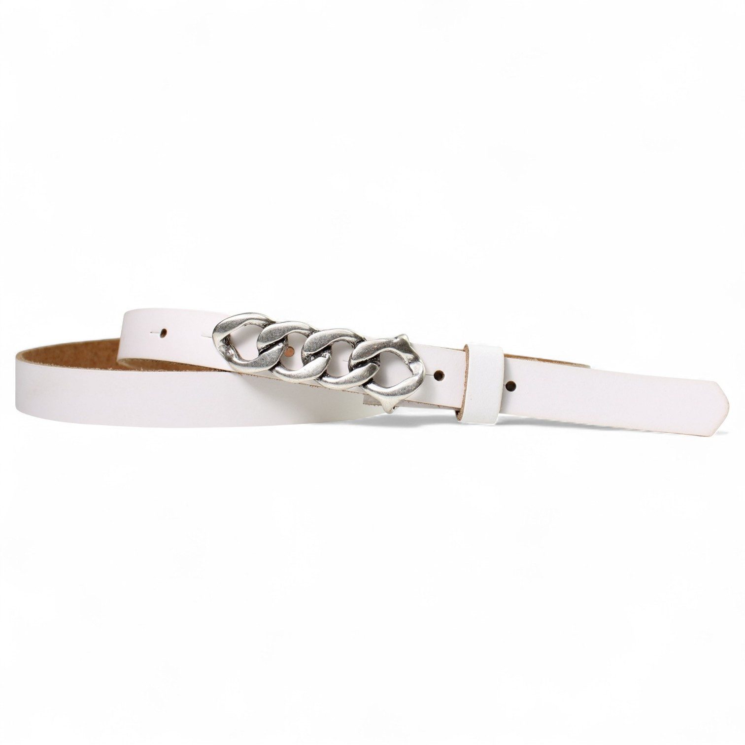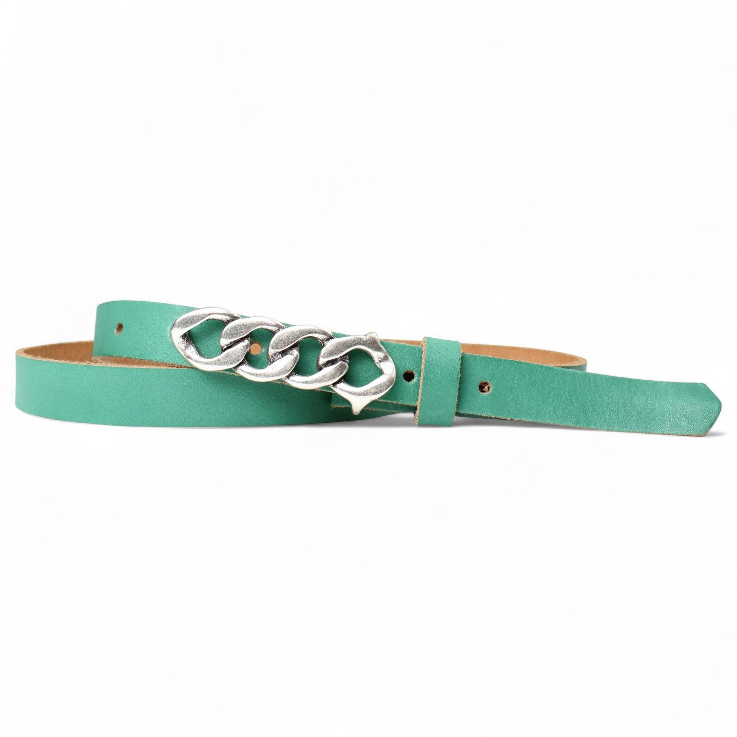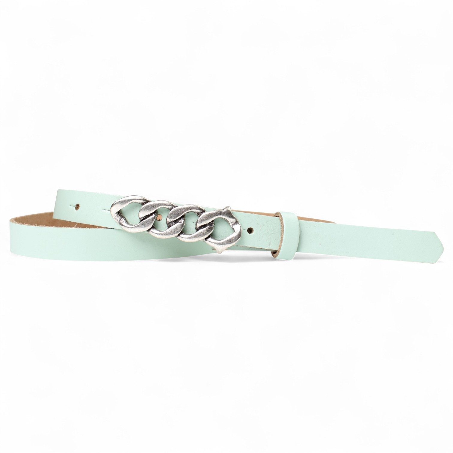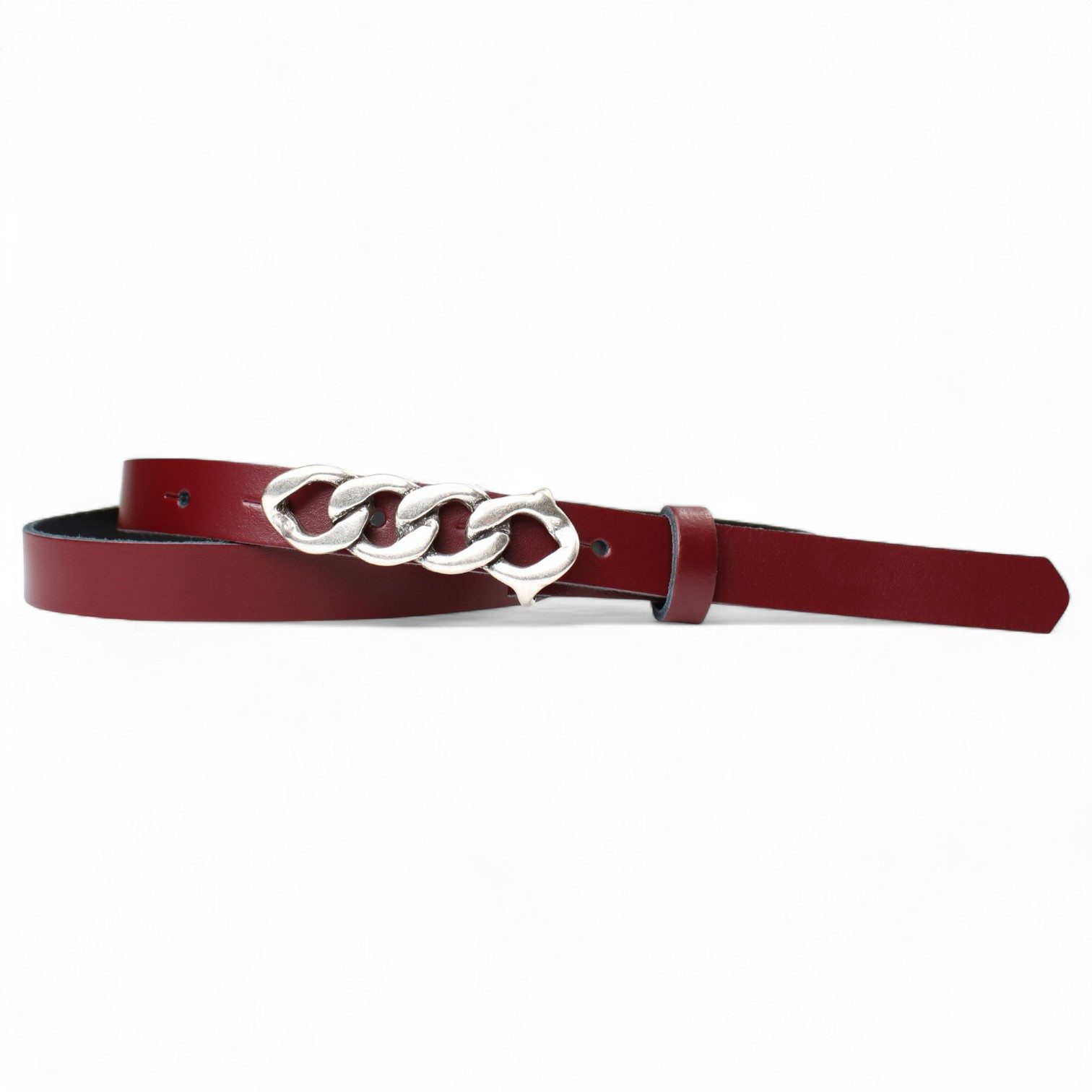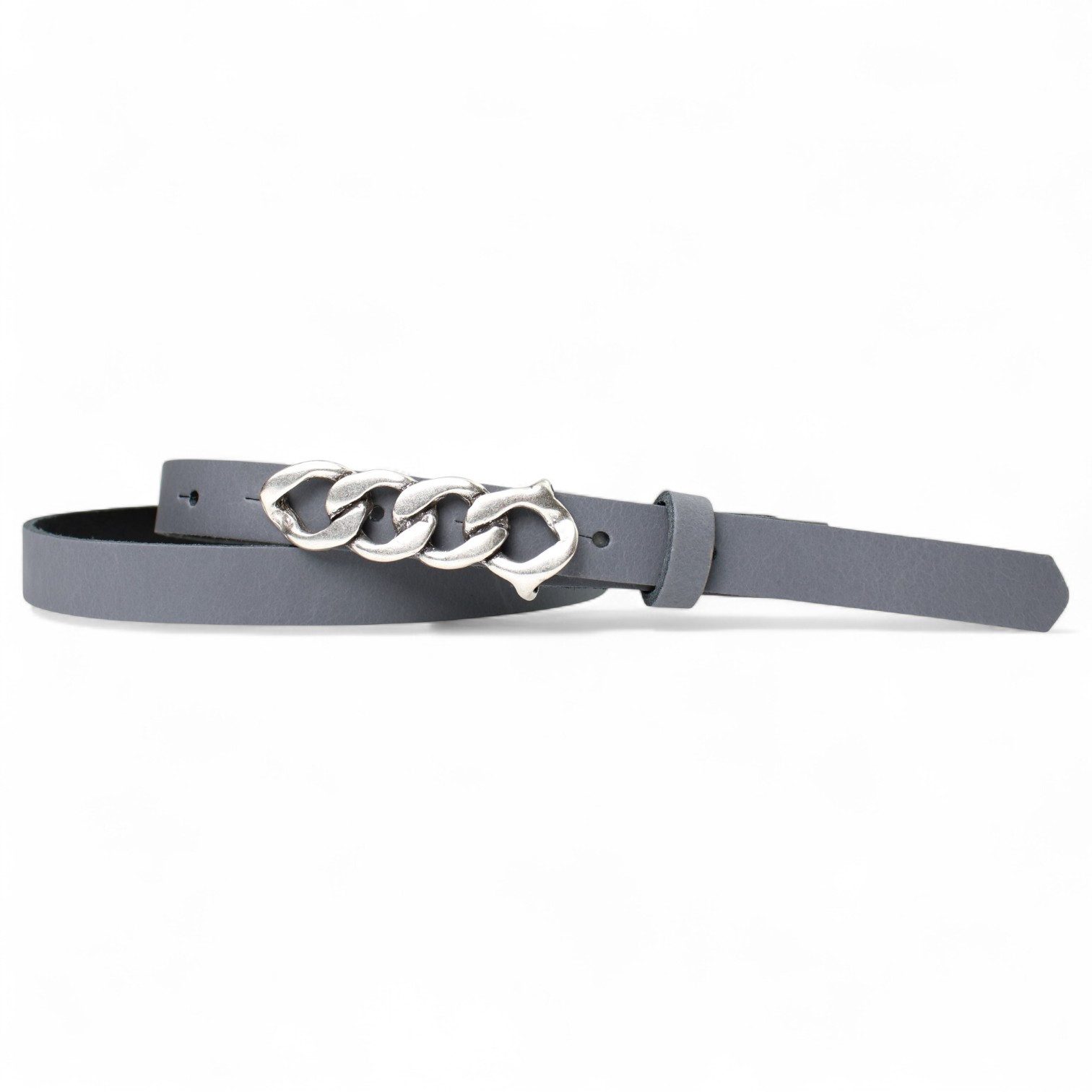 Besondere Merkmale | schmaler Damengürtel 2 cm, Schnalle im Kettendesign silber |