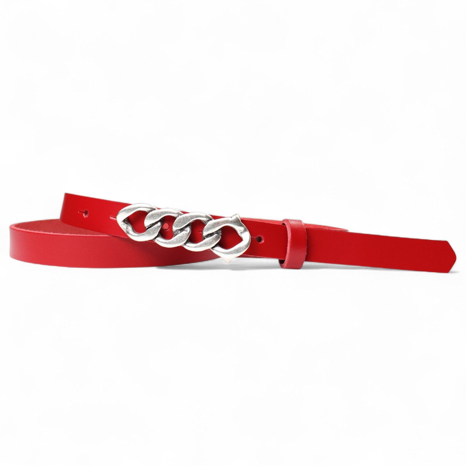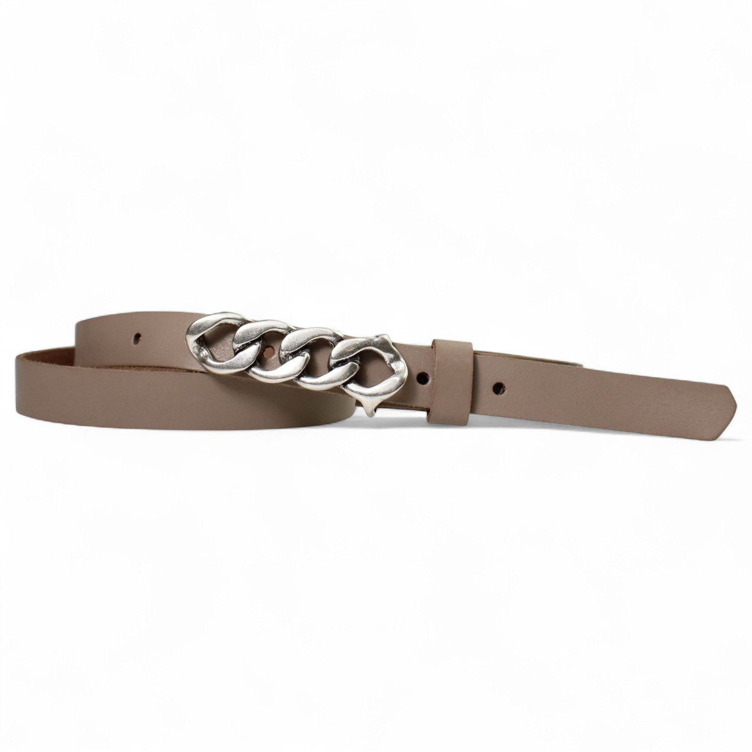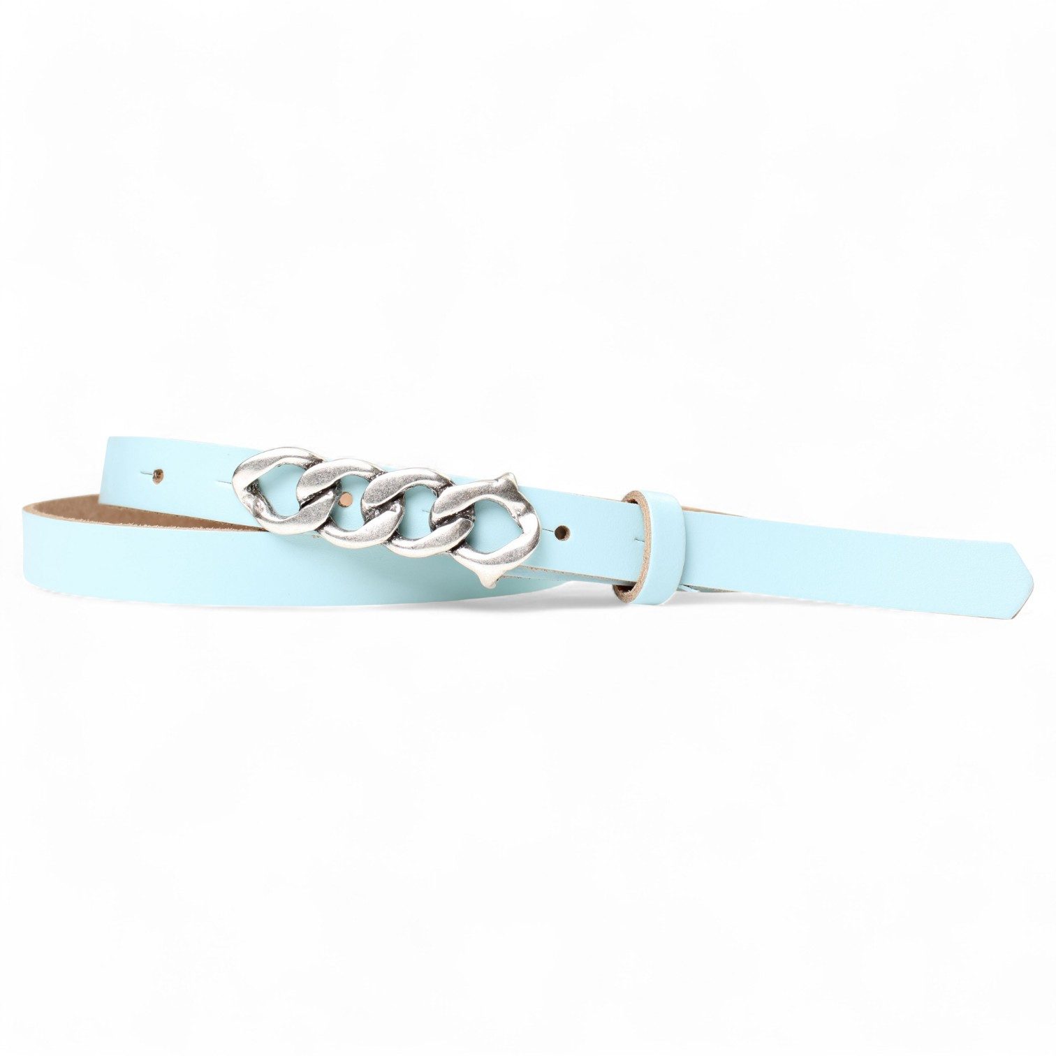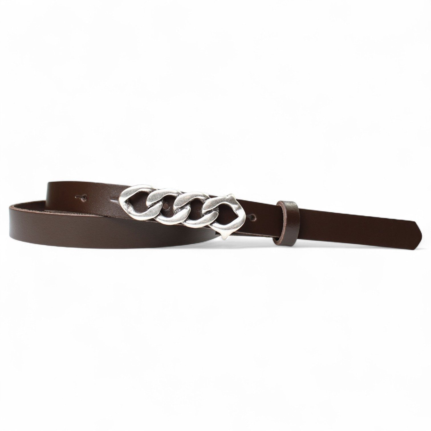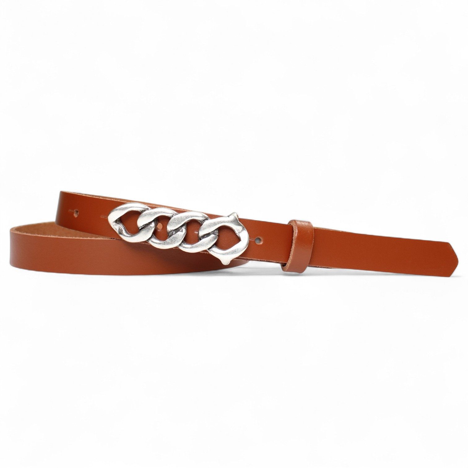 Besondere Merkmale | schmaler Damengürtel 2 cm, Schnalle im Kettendesign silber |