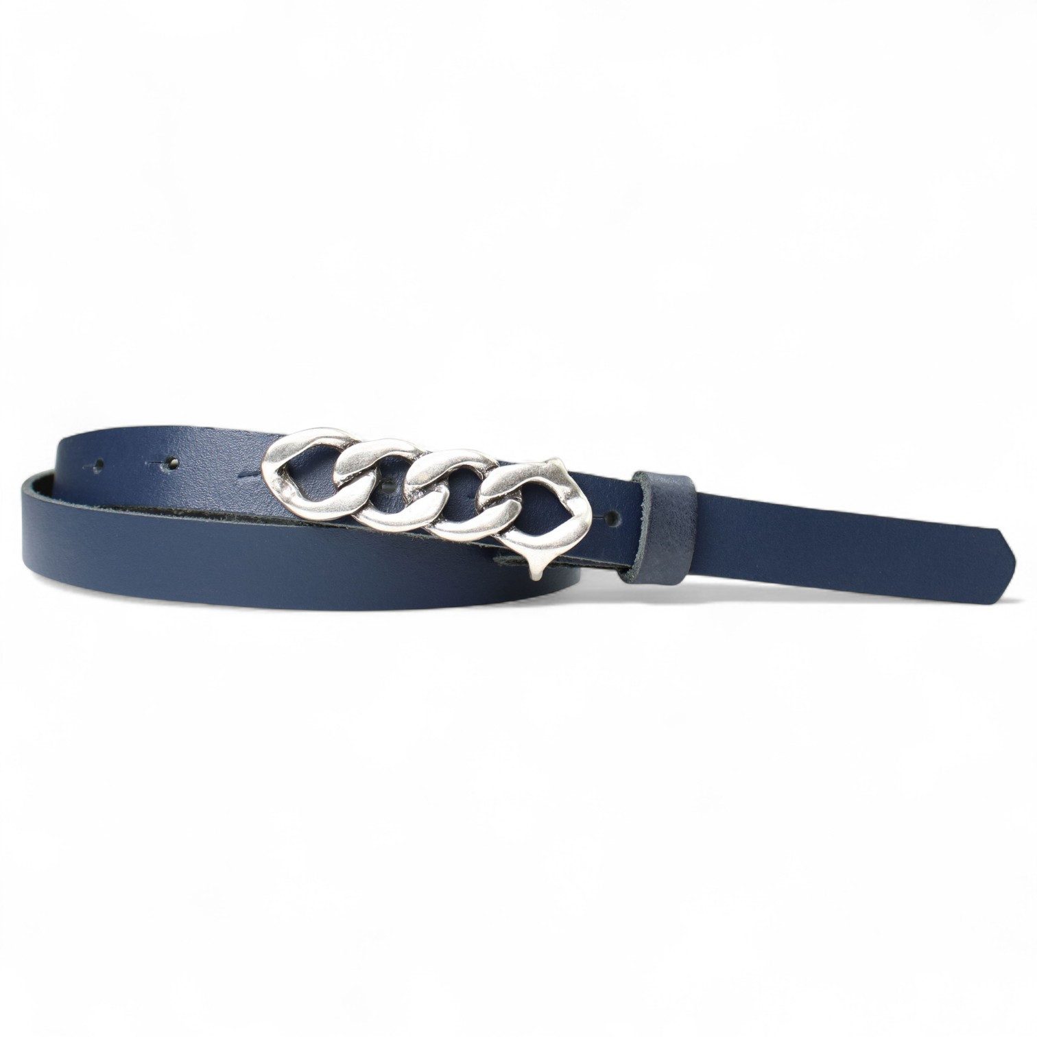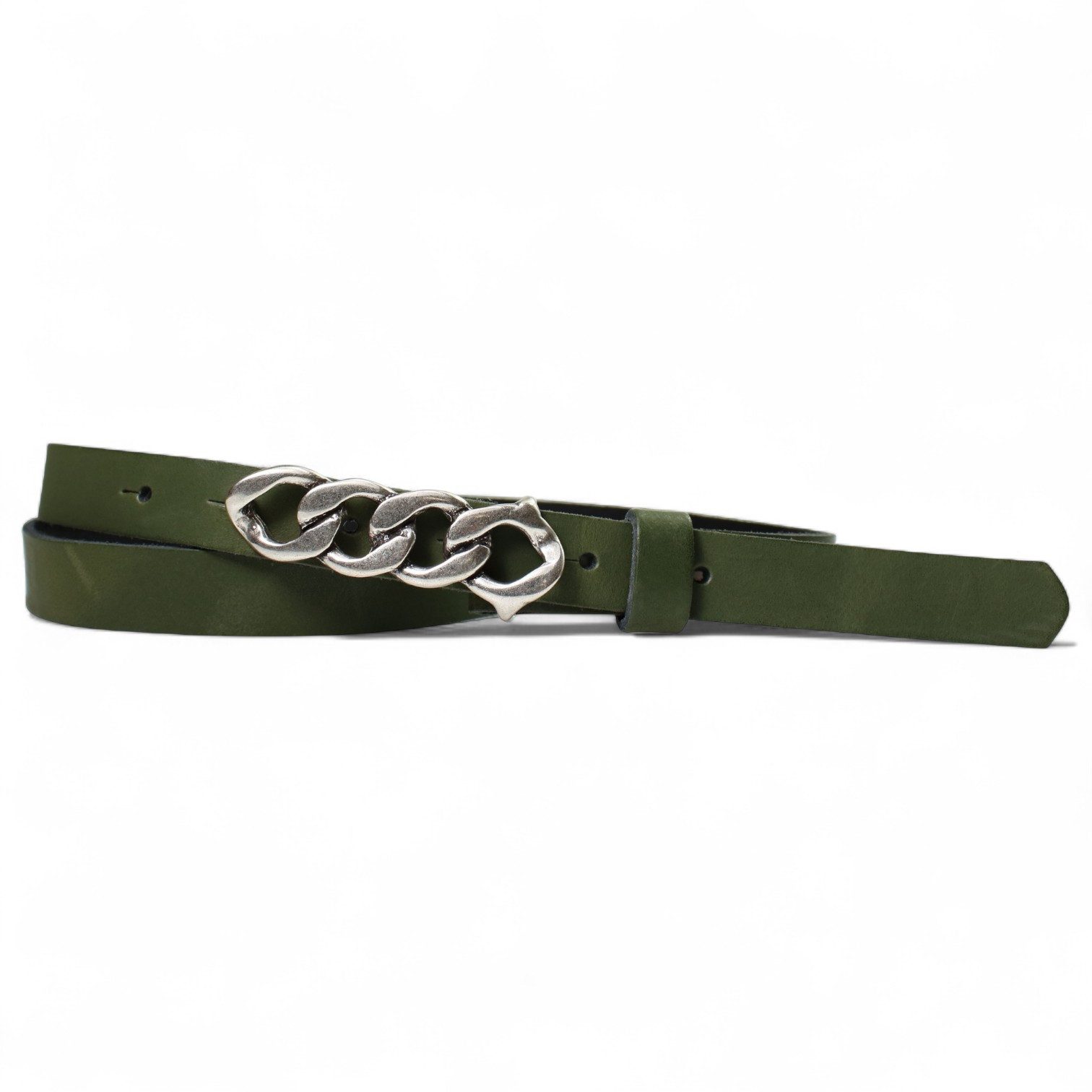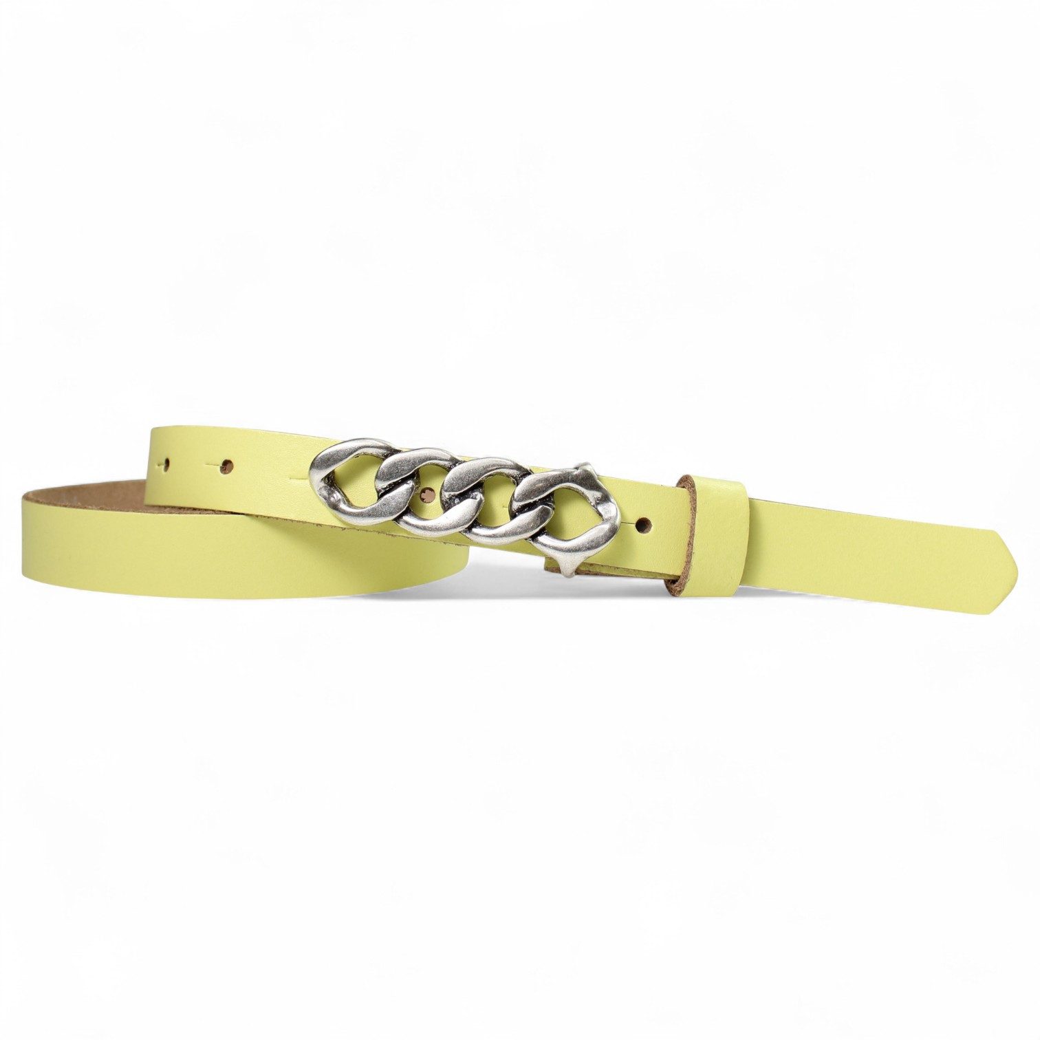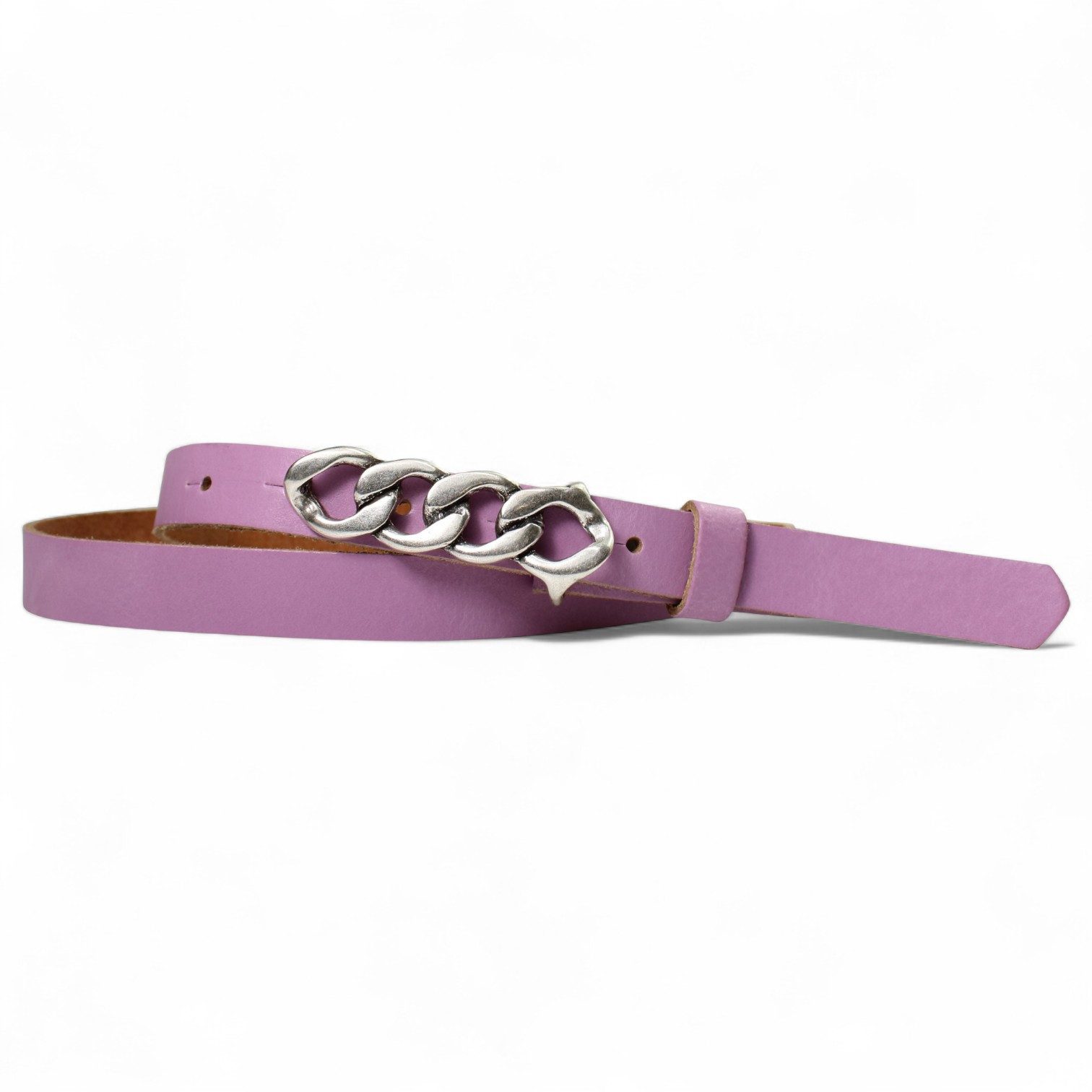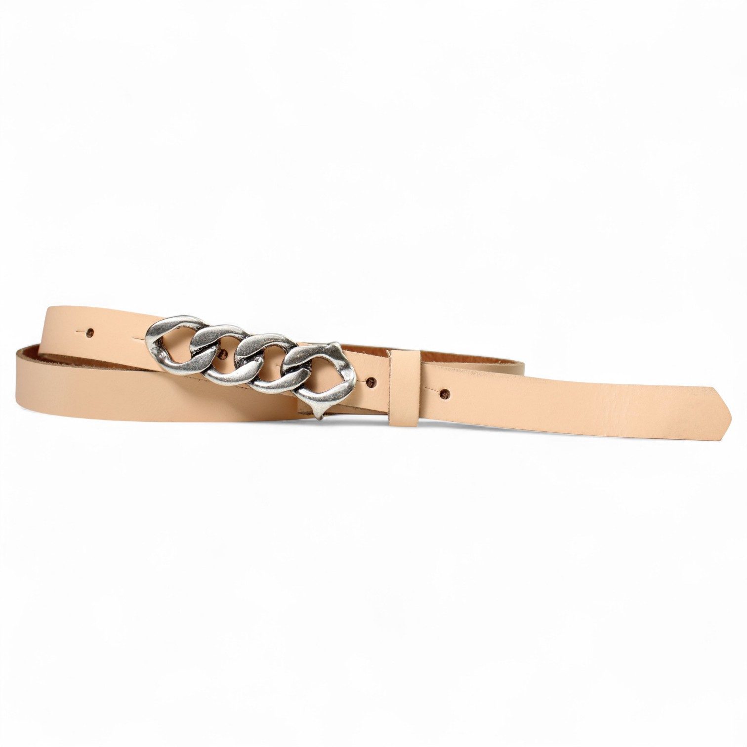 Besondere Merkmale | schmaler Damengürtel 2 cm, Schnalle im Kettendesign silber |