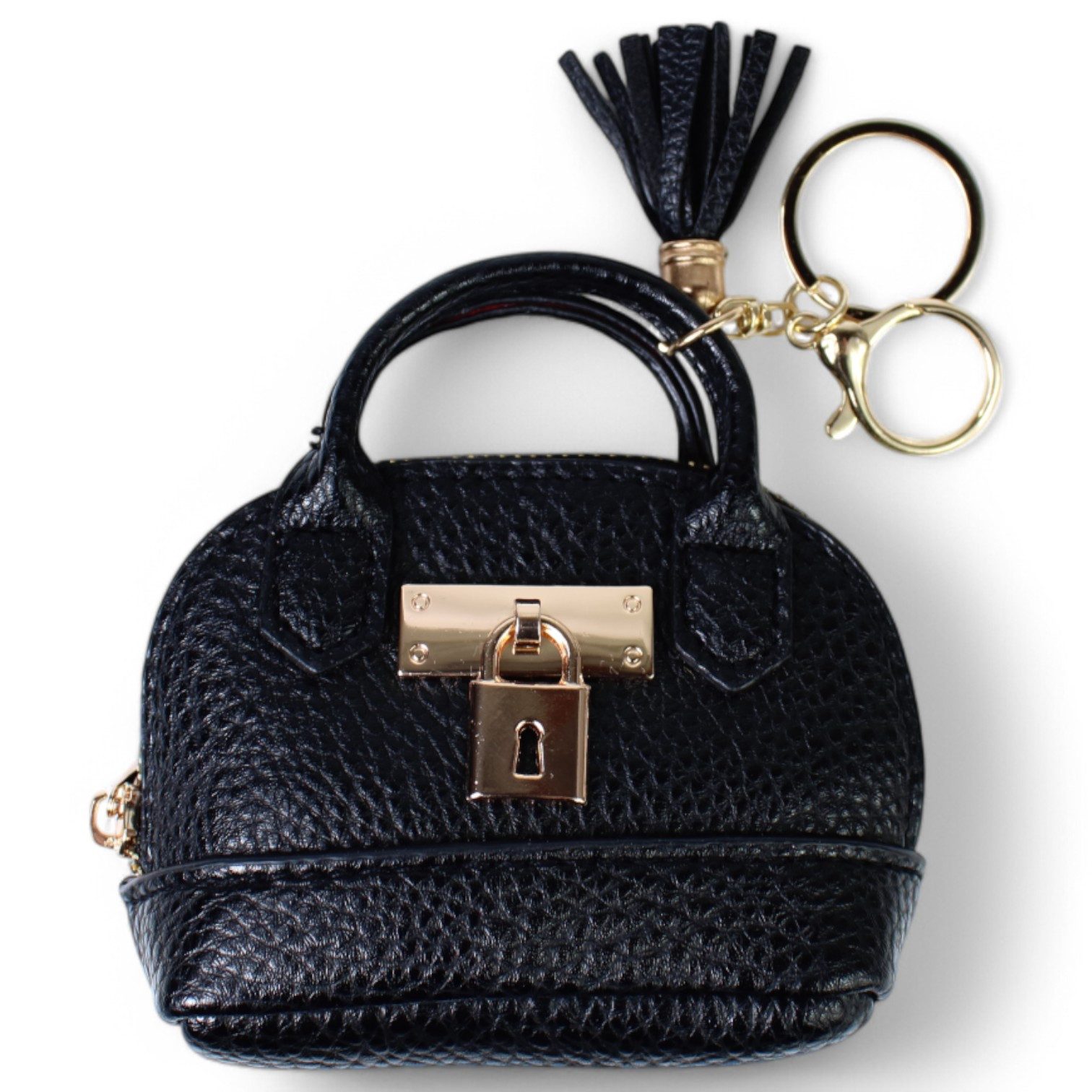 Hochmoderner Taschenanhänger in Form einer kleinen Handtasche. Diese können Sie öffnen und ebenfalls mit Dingen füllen. Es passen Schlüssel oder Kleingeld problemlos hinein. In schönen Farben erhältlich. Ein Schlüsselring und ein Karabiner können zum Anbringen an die Tasche verwendet werden.