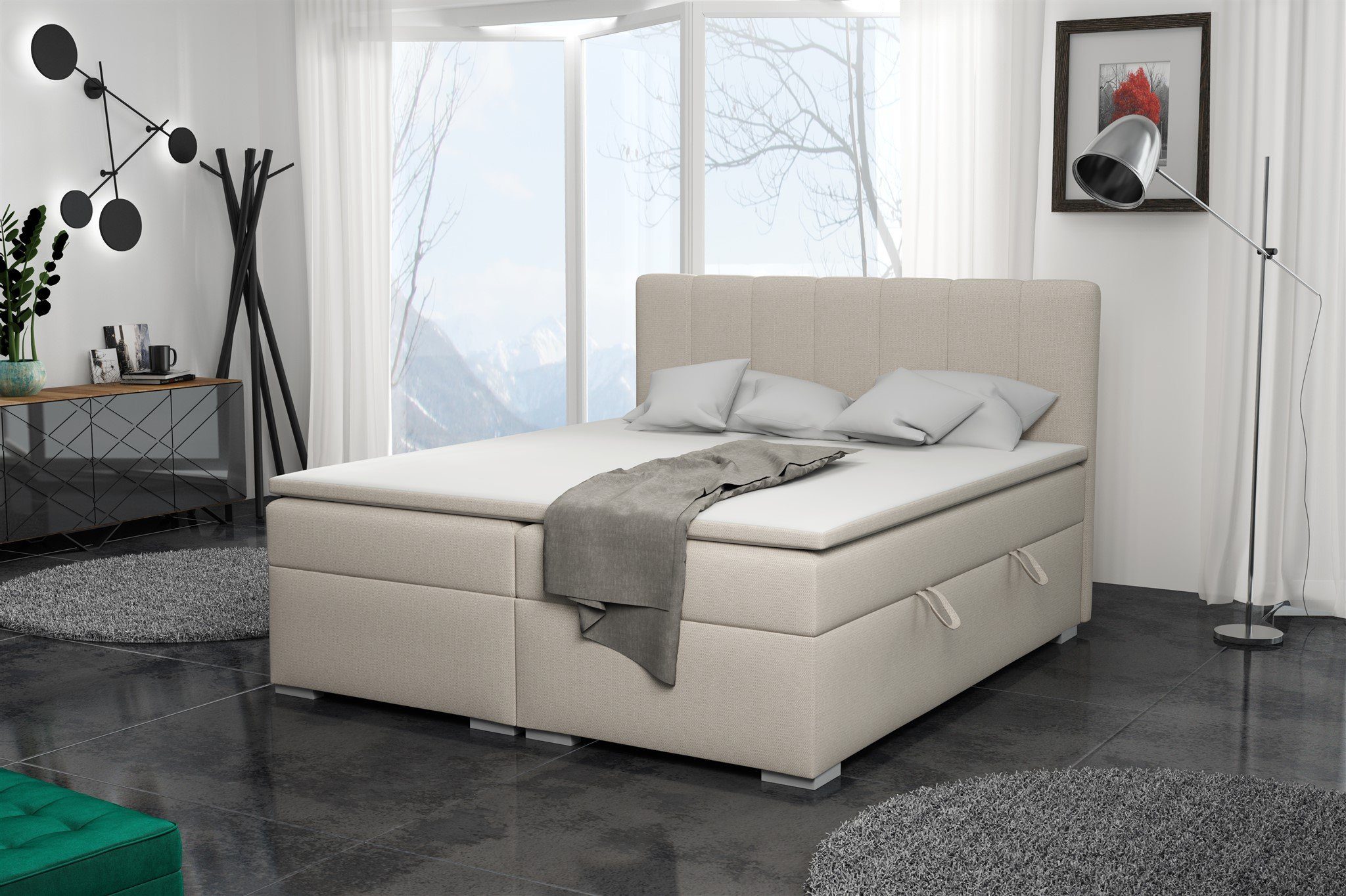 Lieferumfang | Boxspringbett Schlafzimmerbett LAURIN in Stoff oder Kunstleder inkl Bettkästen und Topper |