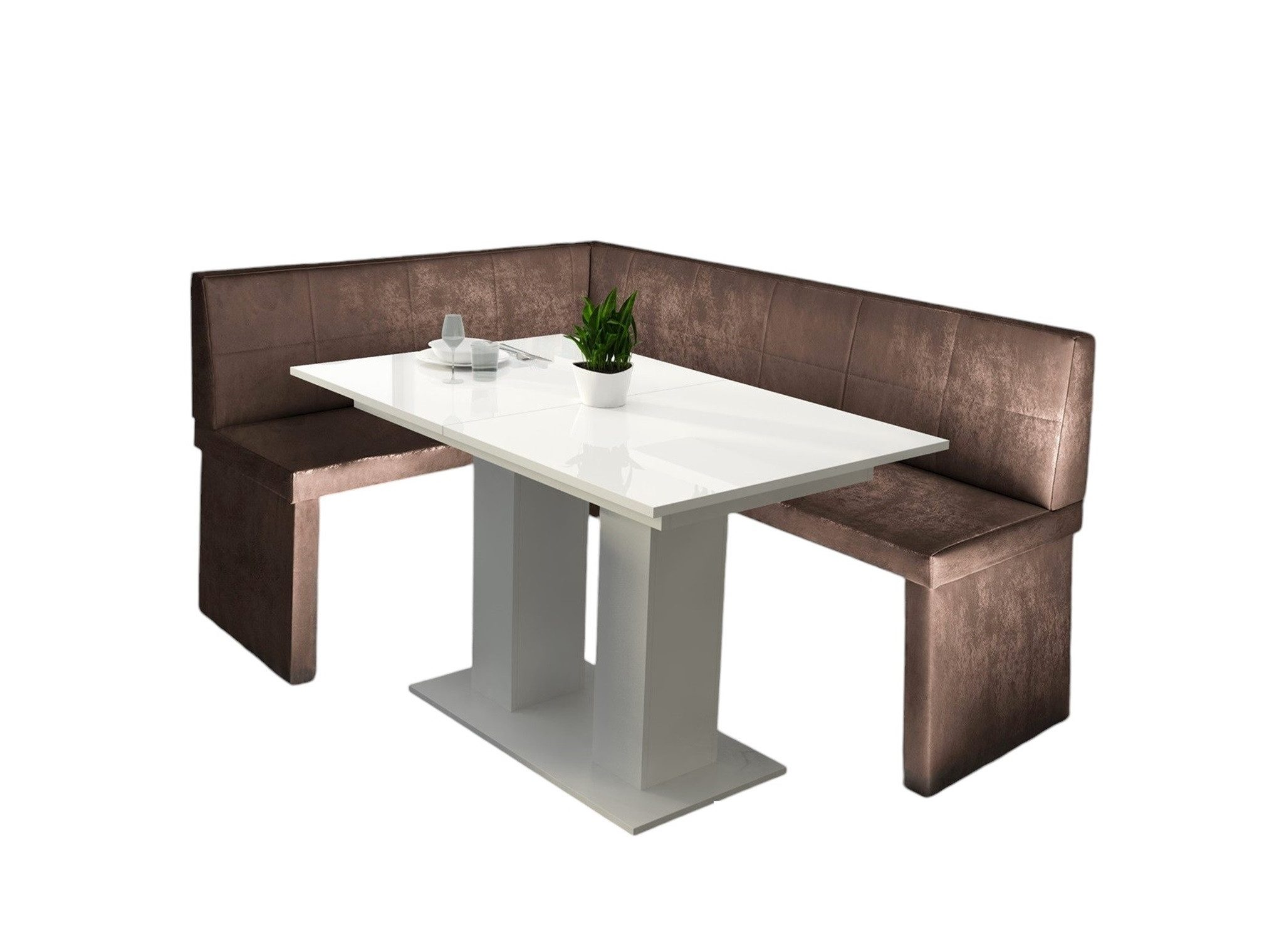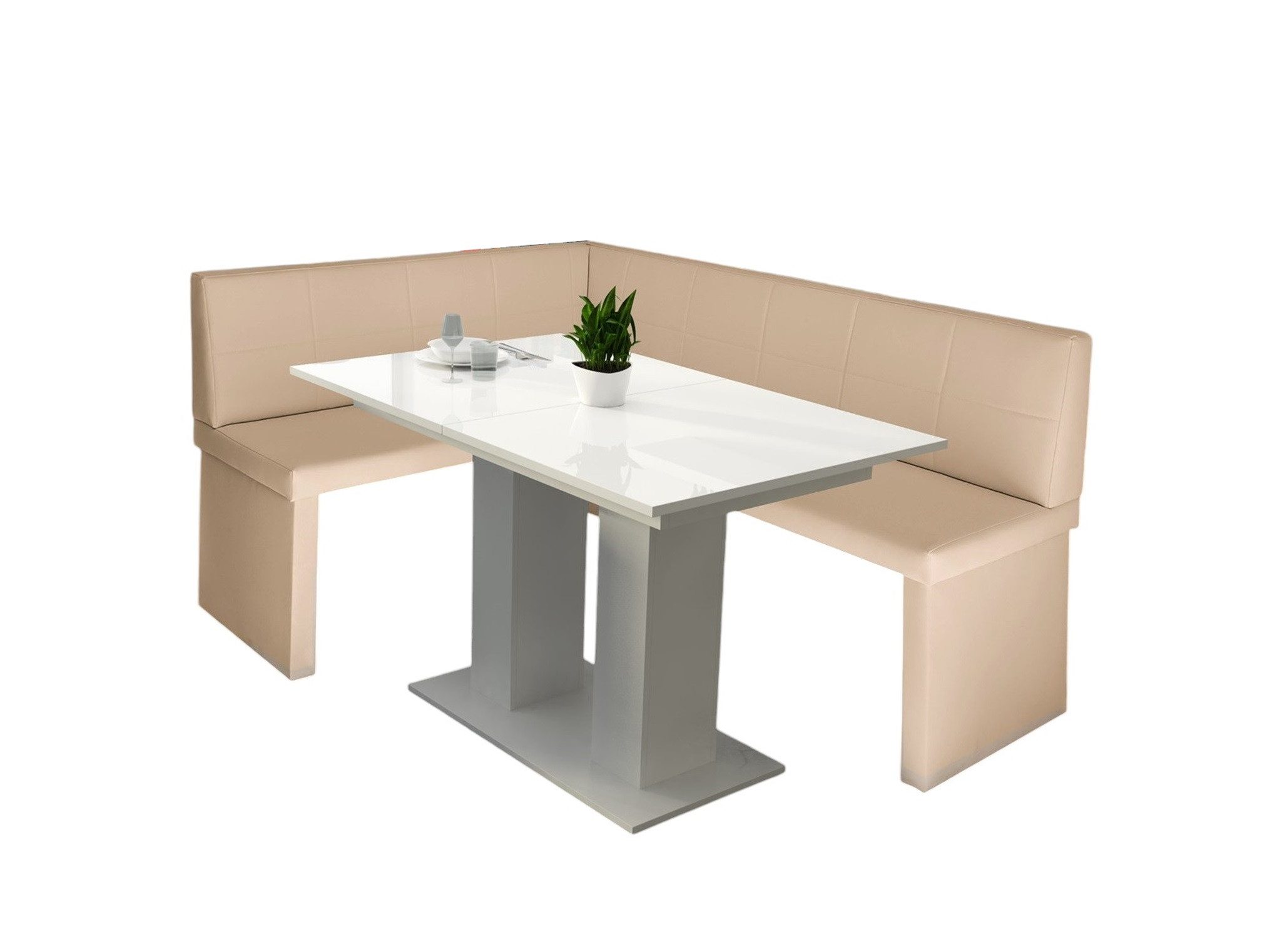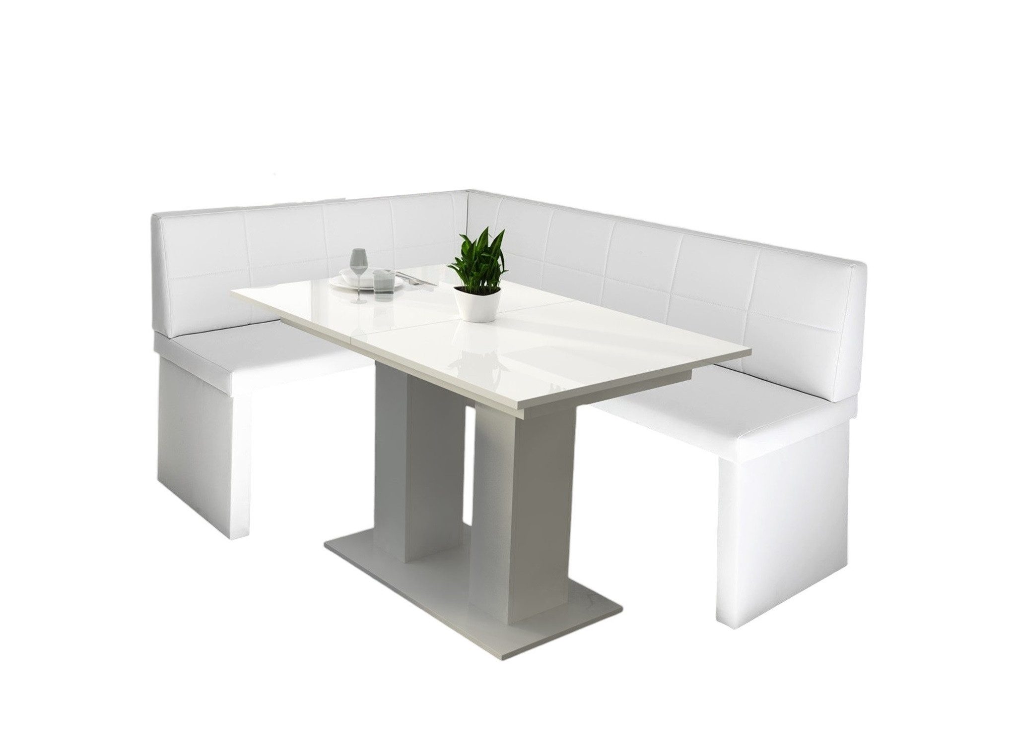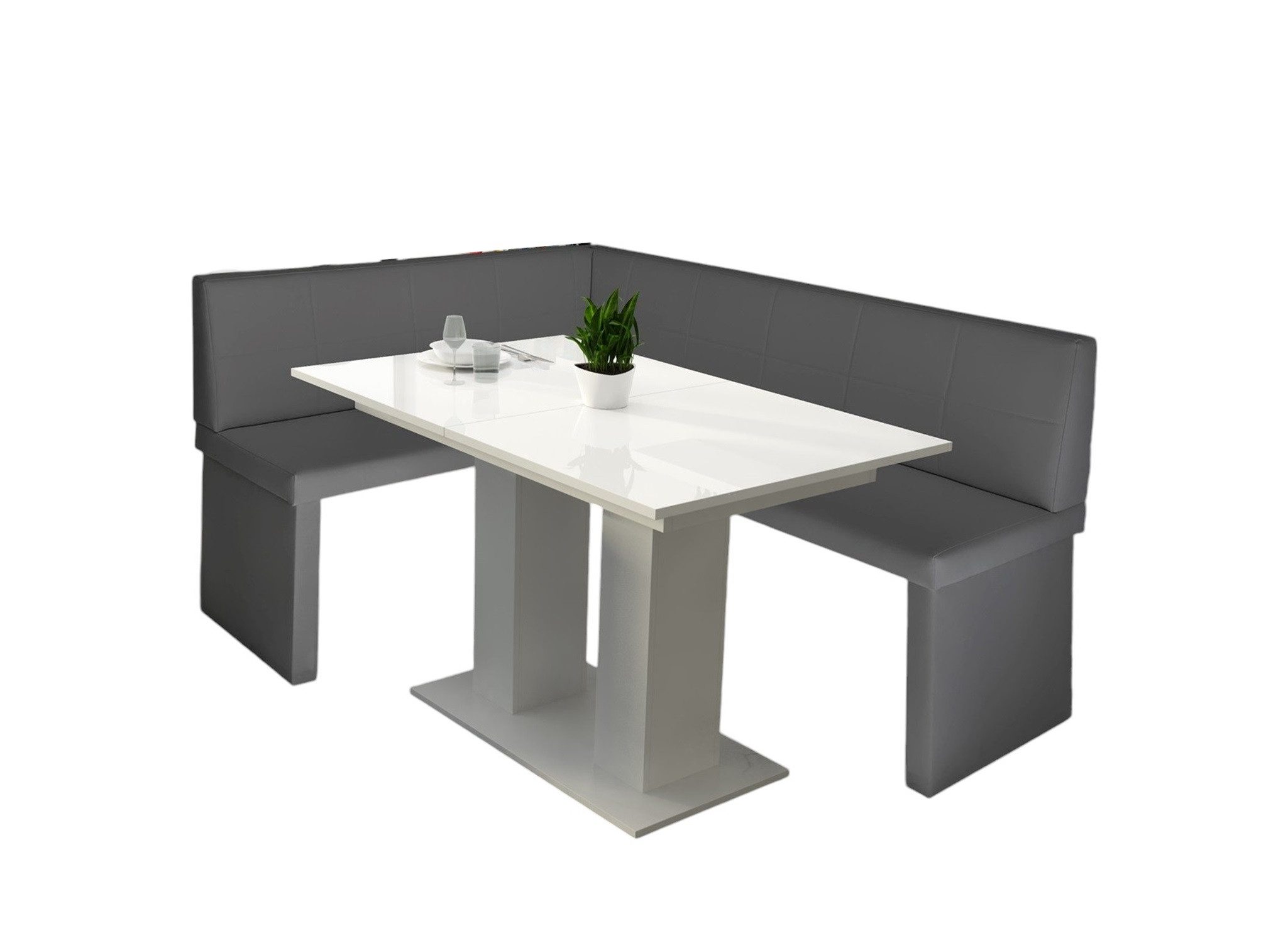 Lieferumfang | Eckbankgruppe „Robin XL“ in Kunstleder Размер 196x142cm mit Tisch „Weiß Hochglanz“ |