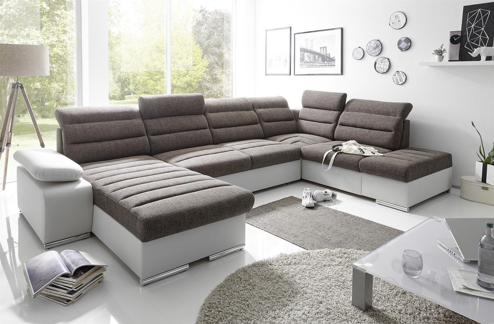 Modellbezeichnung | Couchgarnitur PESCARA U-Form Stoff mit Schlaffunktion Ottomane Rechts oder Links |