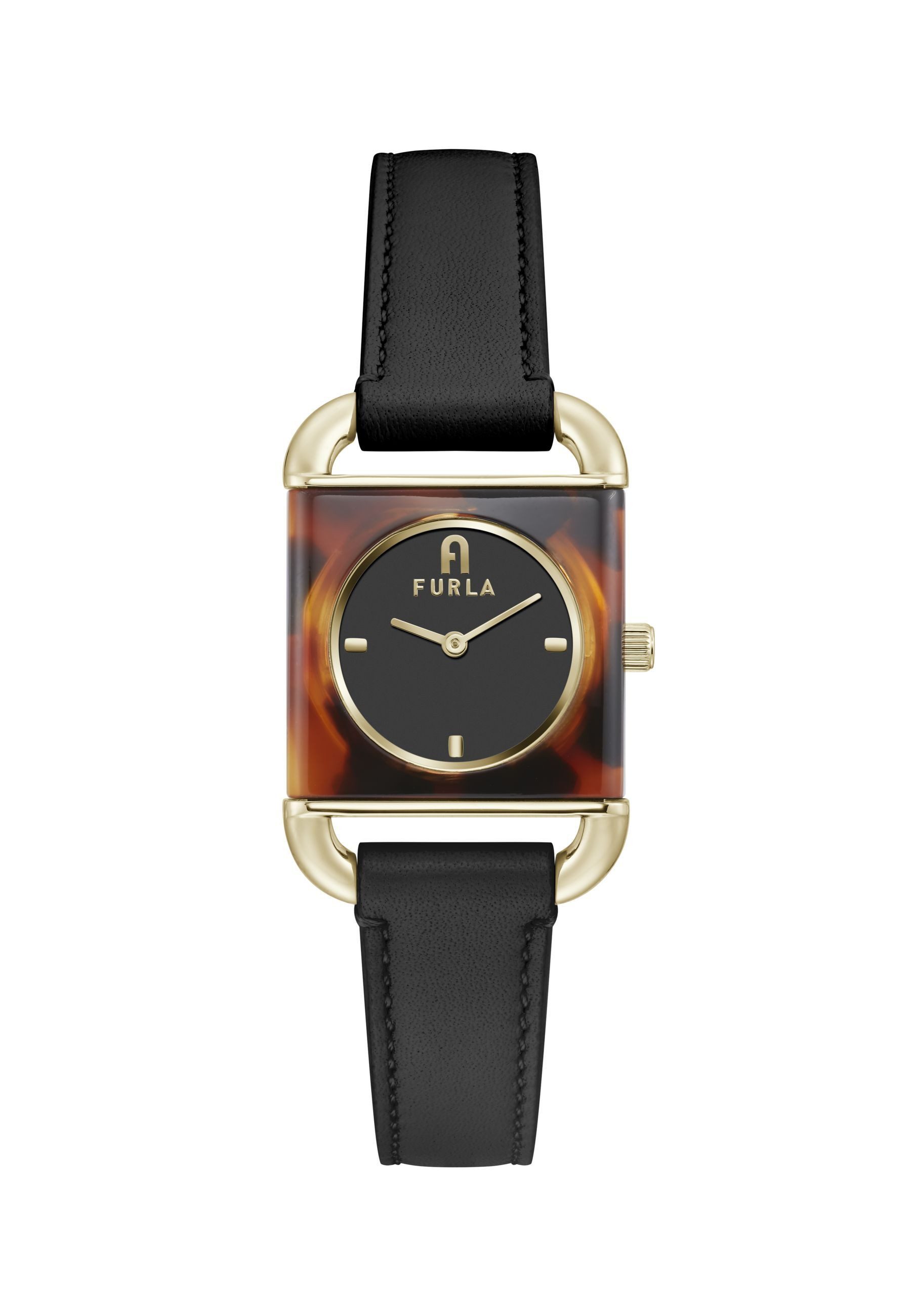 Die Furla Arco Square ist eine rechteckige Uhr mit einem PVD-Gehäuse aus Gelbgold und Schildpatt-Acetat. Ein minimalistisches cremefarbenes Zifferblatt mit Sonnenschliff passt zum beigen Lederarmband. Dieser einzigartige Zeitmesser vereint alle schönen und kühnen Elemente von Furla.