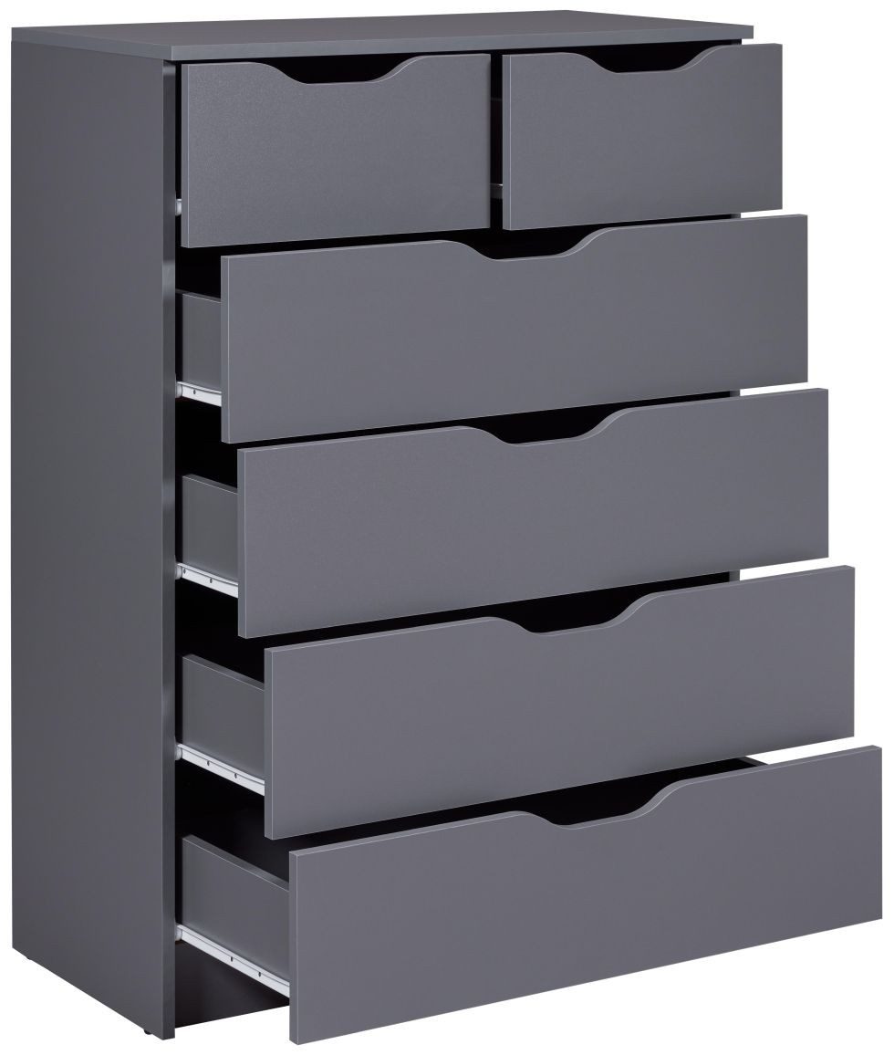 Lieferumfang | 1 x Kommode mit 4 großen und 2 kleine Schubladen auf leichtläufigen Metallauszügen, 1 x bebilderte Montageanleitung |