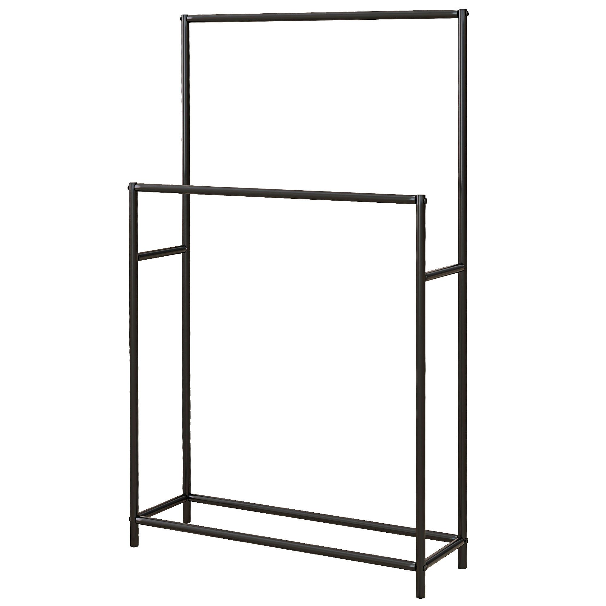 Dieser stilvolle Handtuchständer mit zwei unterschiedlich hohen Halterungen und einem Abstand von 17 cm ermöglicht es Ihnen, Ihre Handtücher ordentlich aufzuhängen. Der Handtuchhalter eignet sich nicht nur für Badezimmer, sondern auch für das Aufhängen von Bettlaken oder Decken auf dem Balkon. Gefertigt aus lackiertem Metall, ist er rostbeständig. Bringen Sie wieder harmonische Ordnung in Ihren Handtuchhaushalt!