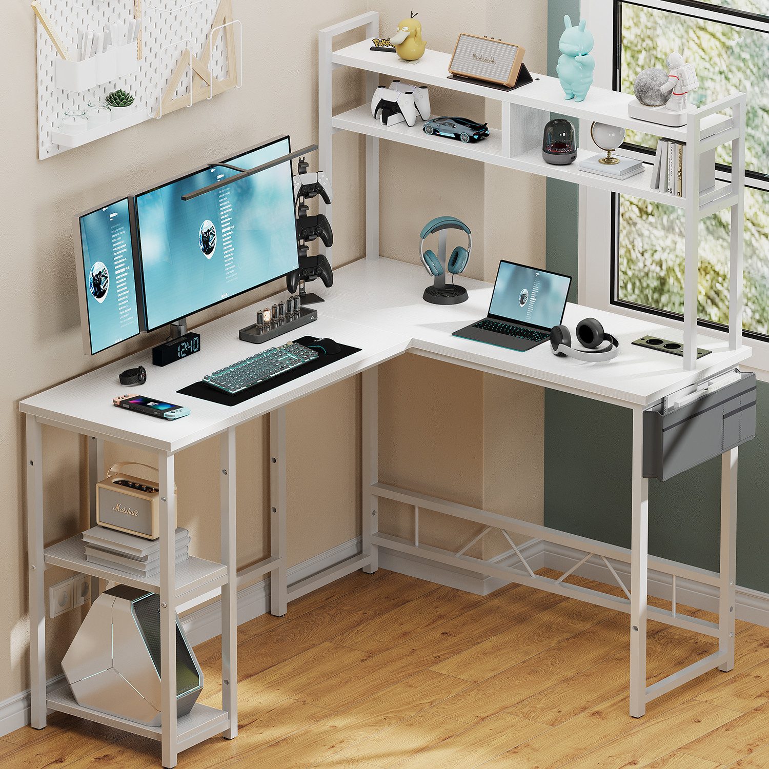 STORAGE SPACE: Computertisch mit Bücherregal und Host-Regal. Das Bücherregal verfügt über zwei Regale zur Aufbewahrung von Büchern, Topfpflanzen und anderen Gegenständen. Das Regal für den Hauptrechner ist so konzipiert, dass es den Hauptrechner an seinem Platz hält. Dieser Computertisch maximiert den Platz und sorgt für einen sauberen und organisierten Schreibtisch.