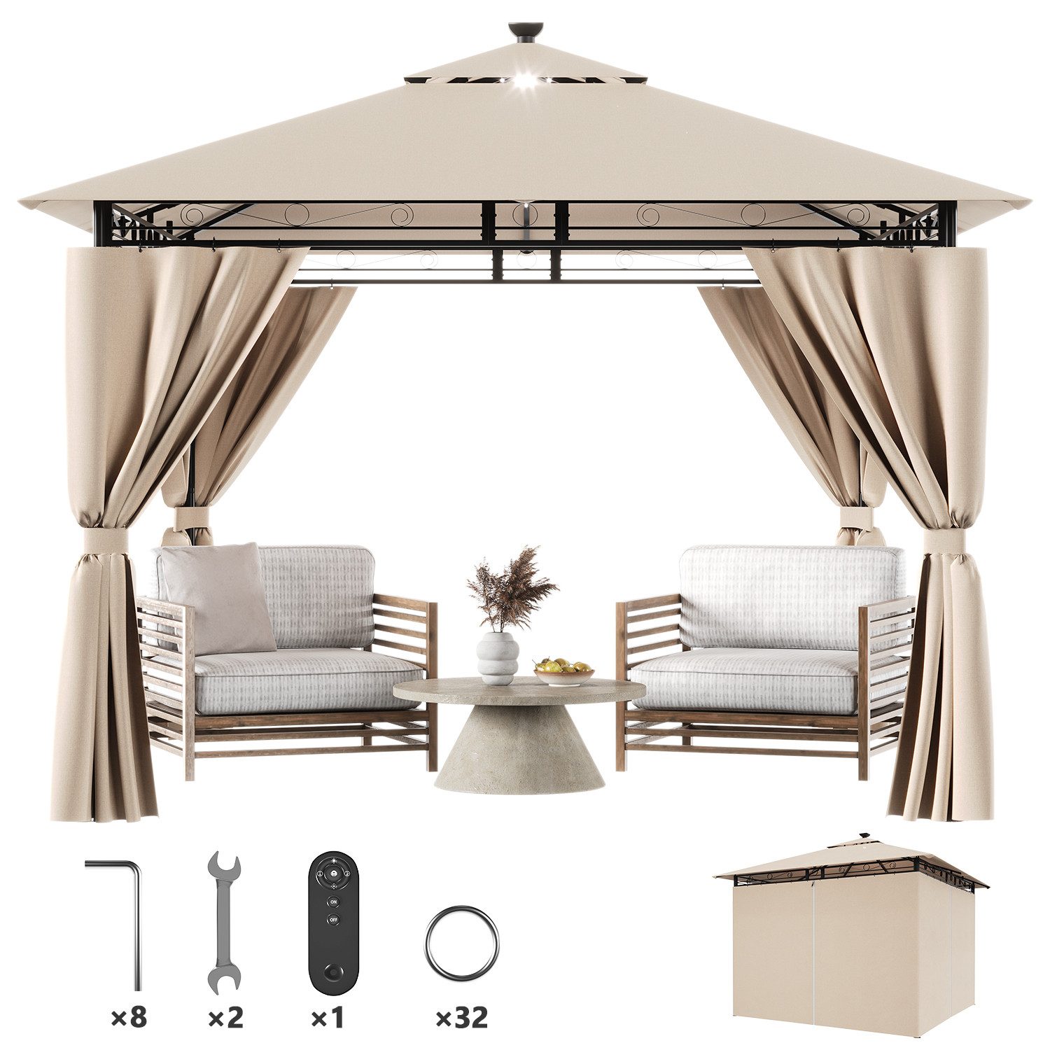 Dachdesign: Der Pavillon verwendet innovativ das Prinzip des doppellagigen Dachdesigns, und der einzigartige Luftzirkulationsmodus stellt sicher, dass die Gegenstände im Inneren des Pavillons auch bei böigem Wind nicht leicht hochgepustet und verschoben werden, wodurch ein stabiler und komfortabler Ruheplatz für Sie entsteht.