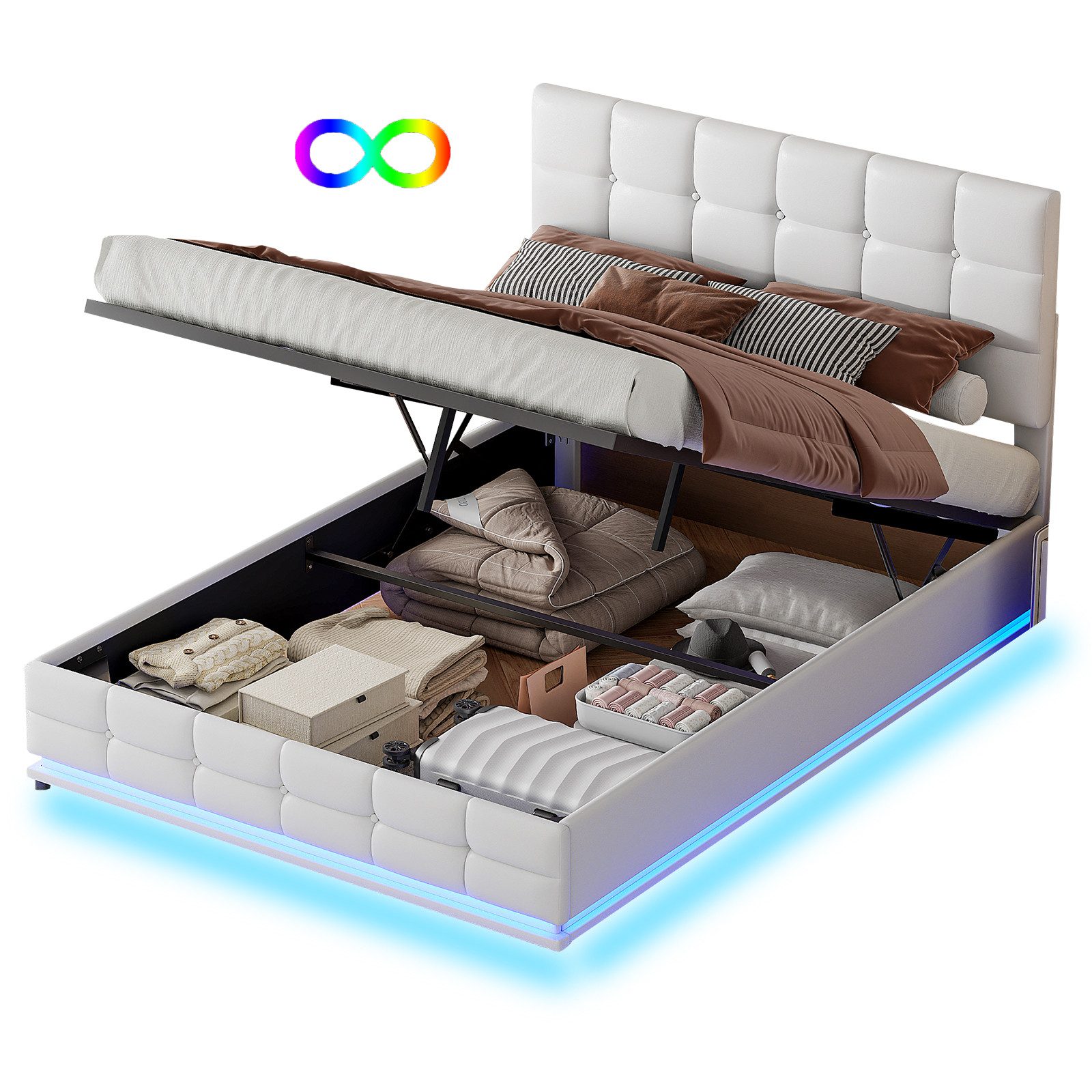 Inhalt des Pakets: Bettgestell+LED-Beleuchtung