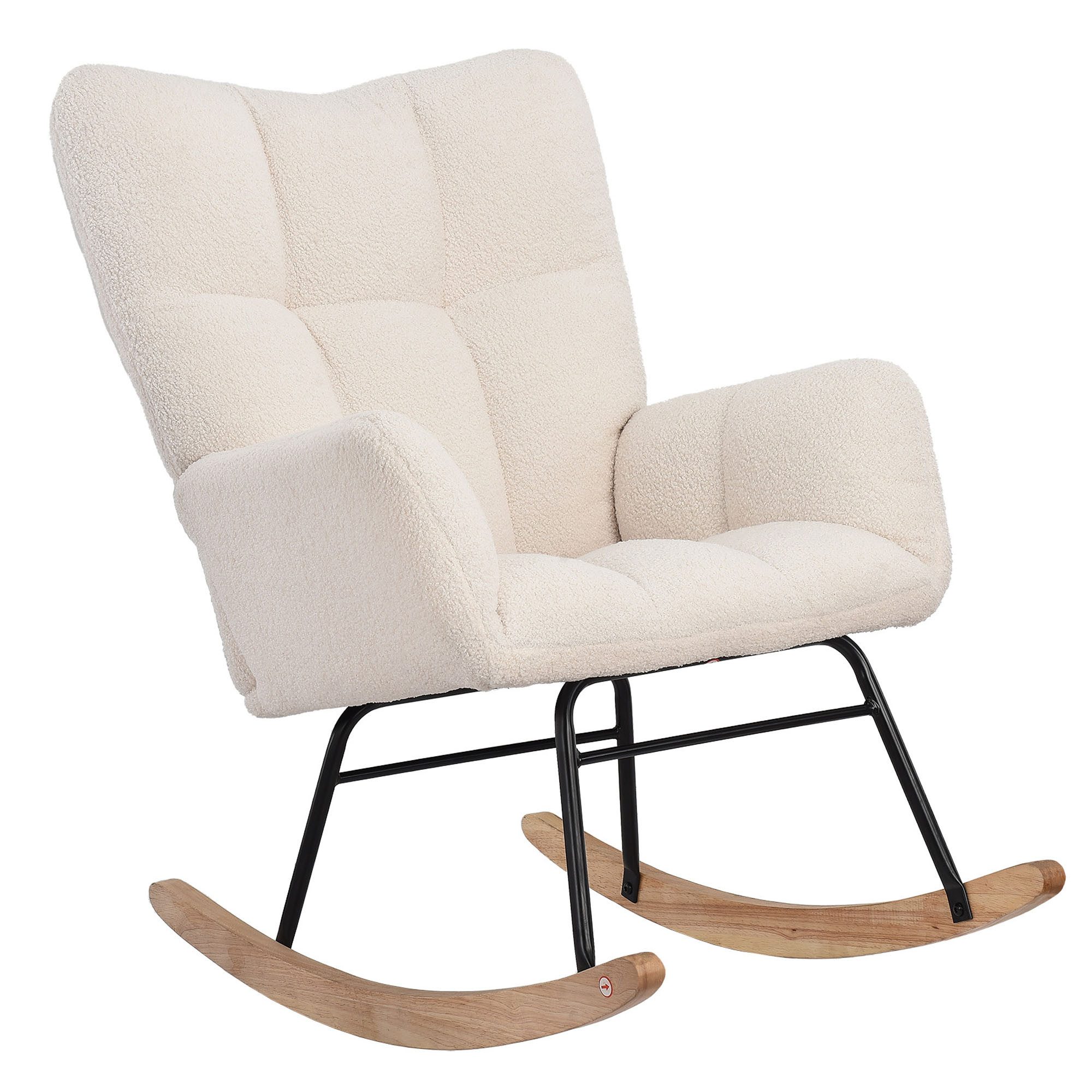 Der Rahmen aus Metall bietet Stabilität, während die Holzkufen eine robuste Basis und eine praktische Schaukelfunktion bieten, die das Sitzen angenehm und entspannend macht.