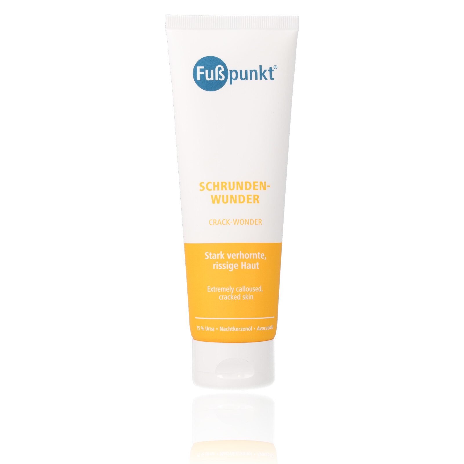 Das Fußpunkt® Schrunden-Wunder macht die Haut wieder weich und geschmeidig. Die 14-Tage-Erfolgscreme gegen Hornhaut und Schrunden schützt sie vor äußeren Einflüssen. Unangenehmen Hautschuppen und Rötungen kann vorgebeugt werden. Die Durchfeuchtung und angenehme Fettung der Haut kann den Juckreiz verringern.