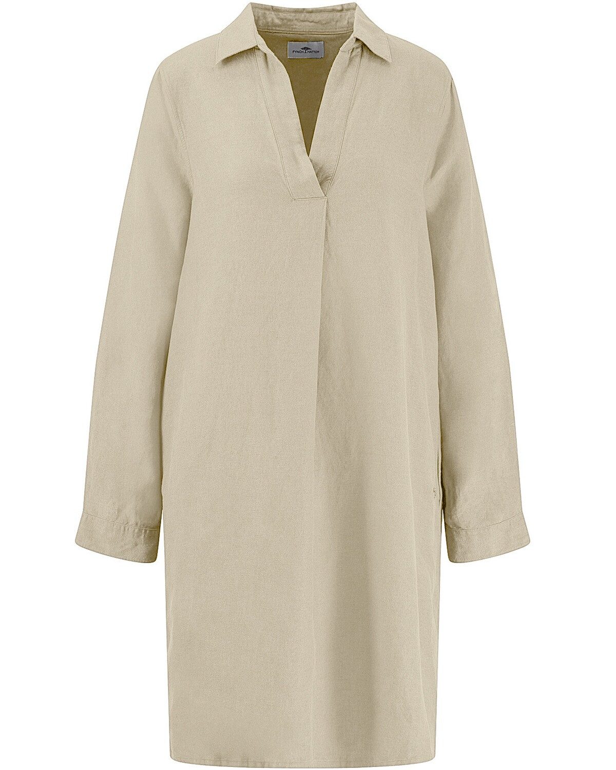 Das leger geschnittene Damen Tunikakleid von FYNCH-HATTON vereint Komfort und Stil in einem zeitlosen Design. Hergestellt aus einem hochwertigen Leinen-Viskose-Mix, sorgt das Kleid für ein angenehmes Tragegefühl und eine optimale Luftzirkulation, ideal für warme Tage oder entspannte Abende. Der Umlegekragen und der V-Ausschnitt verleihen dem Kleid eine elegante Note, während die 3/4-Ärmel mit 1-Knopf-Manschetten für eine raffinierte Detailverliebtheit sorgen. Der Casual Fit dieses Tunikakleides ermöglicht vielseitige Styling-Optionen und sorgt für eine lockere, lässige Silhouette, die sich perfekt für verschiedene Anlässe eignet. Ob im Büro, beim Stadtbummel oder bei einem gemütlichen Treffen mit Freunden – dieses Kleid ist der ideale Begleiter. Die schlichte Eleganz wird durch die sorgfältige Verarbeitung und die hochwertigen Materialien unterstrichen, die sowohl Langlebigkeit als auch einen hohen Tragekomfort garantieren. Ein weiteres Highlight ist die vielseitige Kombinierbarkeit des Tunikakleides. Es lässt sich sowohl mit Sandalen für einen entspannten Look als auch mit eleganten Schuhen für besondere Anlässe stylen. Farblich abgestimmte Accessoires runden das Outfit ab und setzen individuelle Akzente. Mit diesem Kleid wird jeder Auftritt zu einem stilvollen Statement, das die feminine Silhouette gekonnt in Szene setzt. Oberstoff: 55% Leinen, 45% Viskose